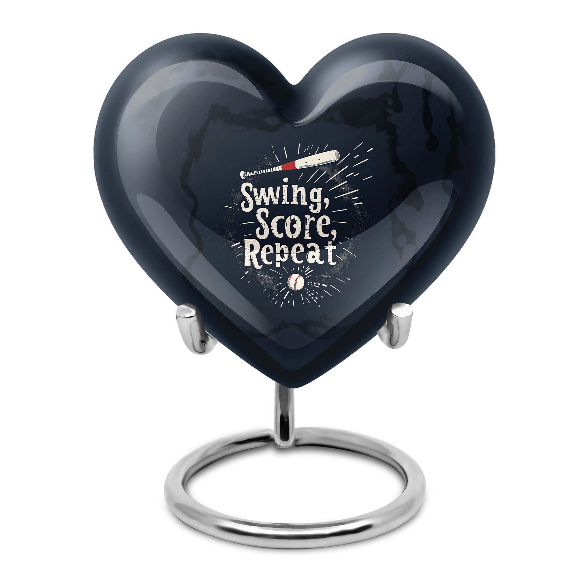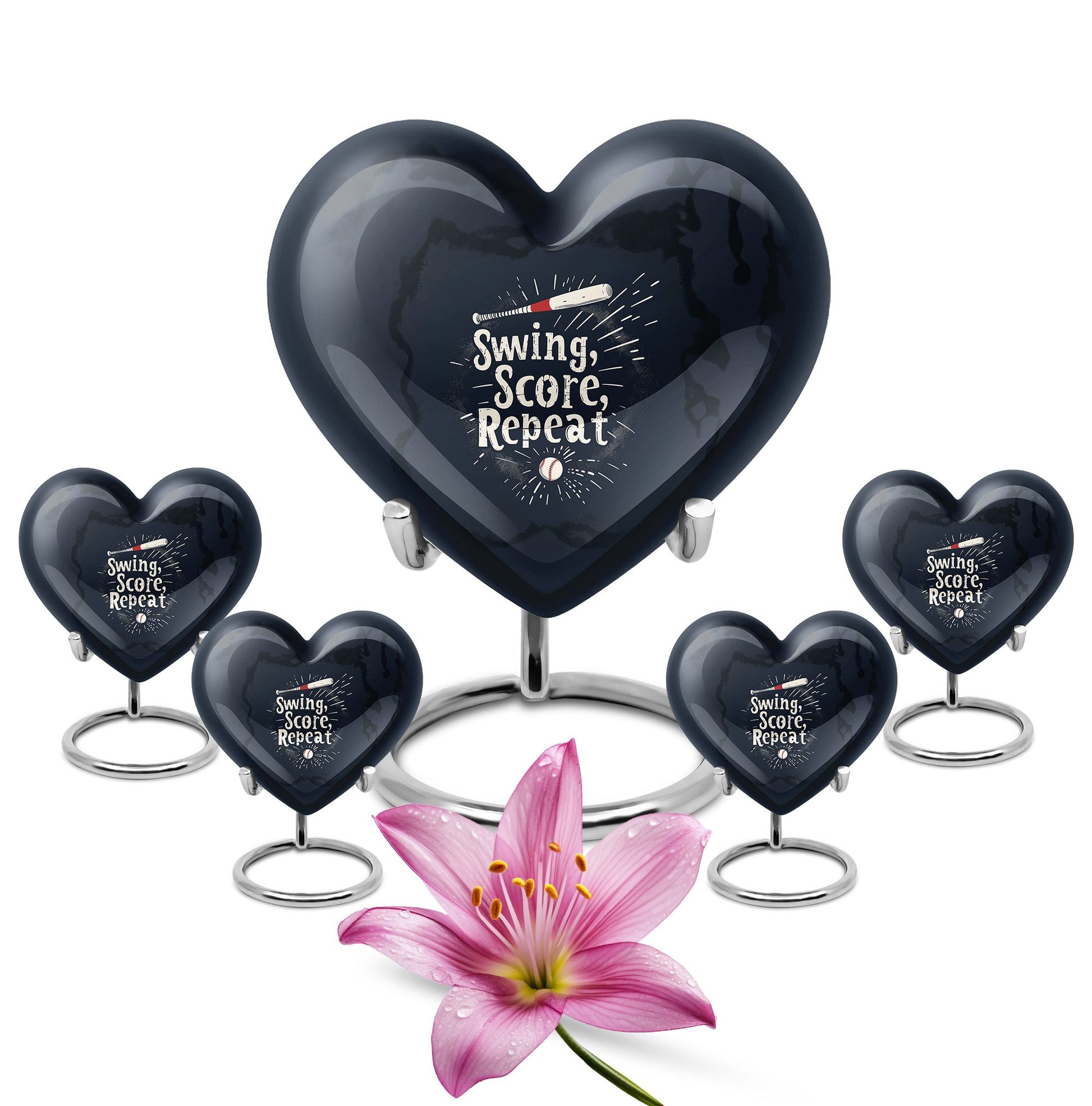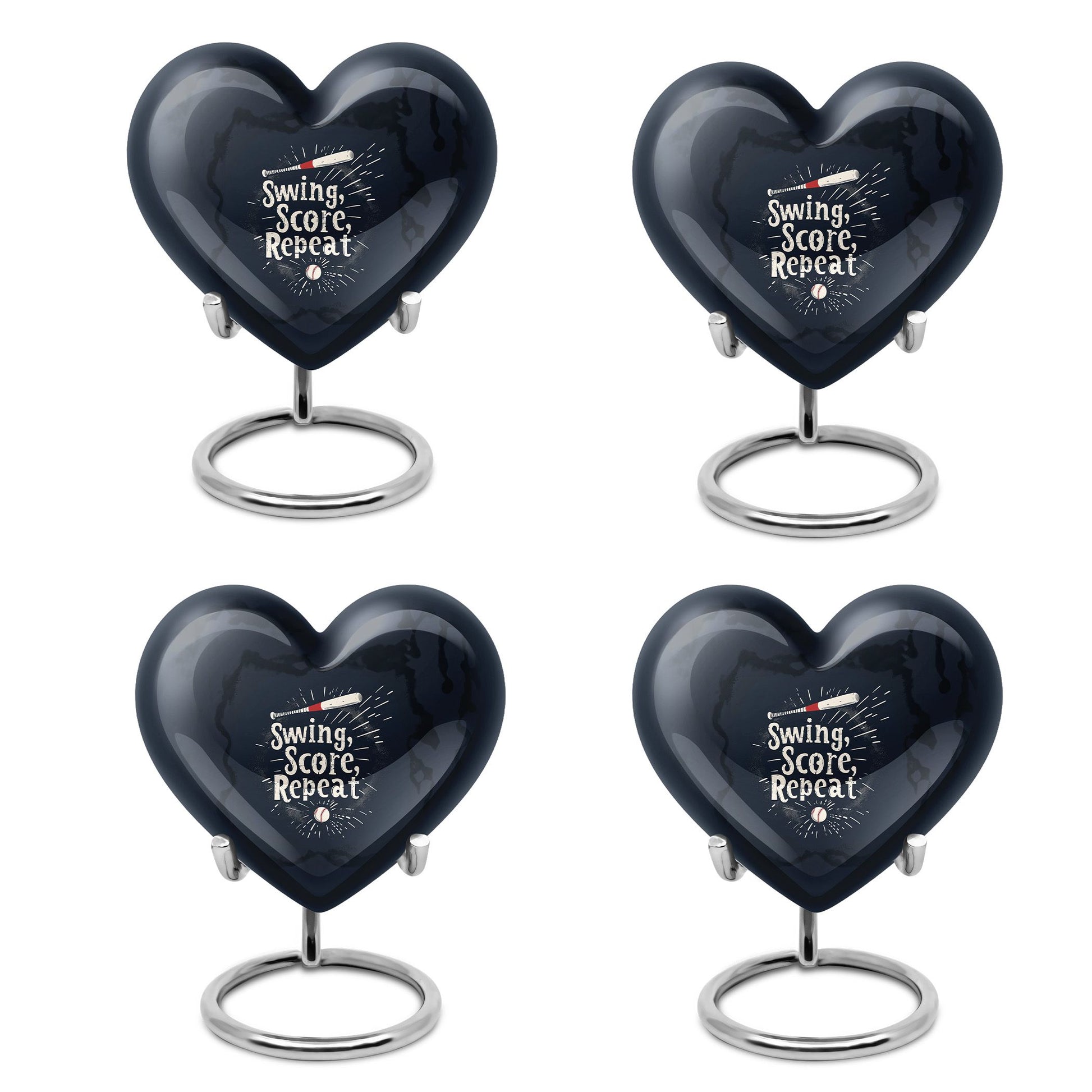 Secure a dignified final resting place with this magnificent Baseball Urn. As an adult burial urn, sporting an abstract-themed, symbolic Heart Urn design, it enshrines the love wrapped around cherished memories. Artfully crafted with sturdy aluminium, this large urn weighs merely 3.3 pounds and stands at a graceful 10 inches. The capacity of this urn is spacious, with a room for 200 cubic inches of ashes. It goes beyond just being a memorial urn, it's a testament to an unending bond. Tailor it to your loved one's memory through personalized engravings etching the bond forever. The dual urn even caters for a female adult or a male adult, affirming your love till the end of time. It discretely tucks away the ashes in the included velvet pouch, maintaining the solemnity of the moment. As a significant part of memorial ceremony supplies, this metal urn, capable of burial in the ground, encapsulates the essence of reverence and remembrance.