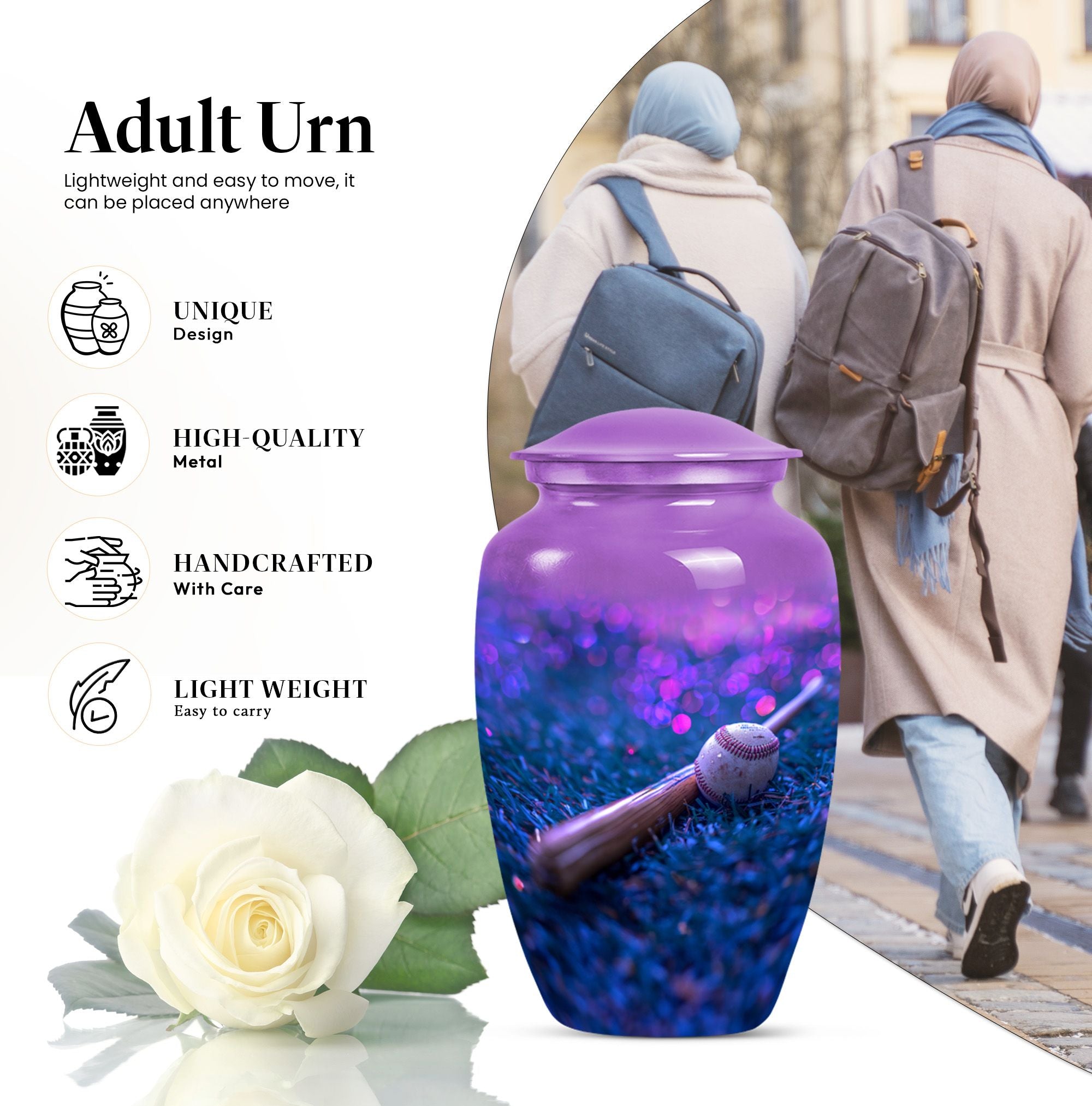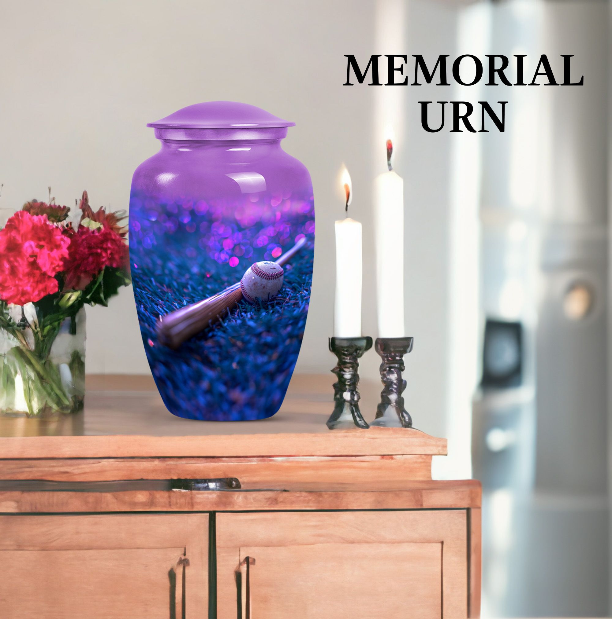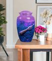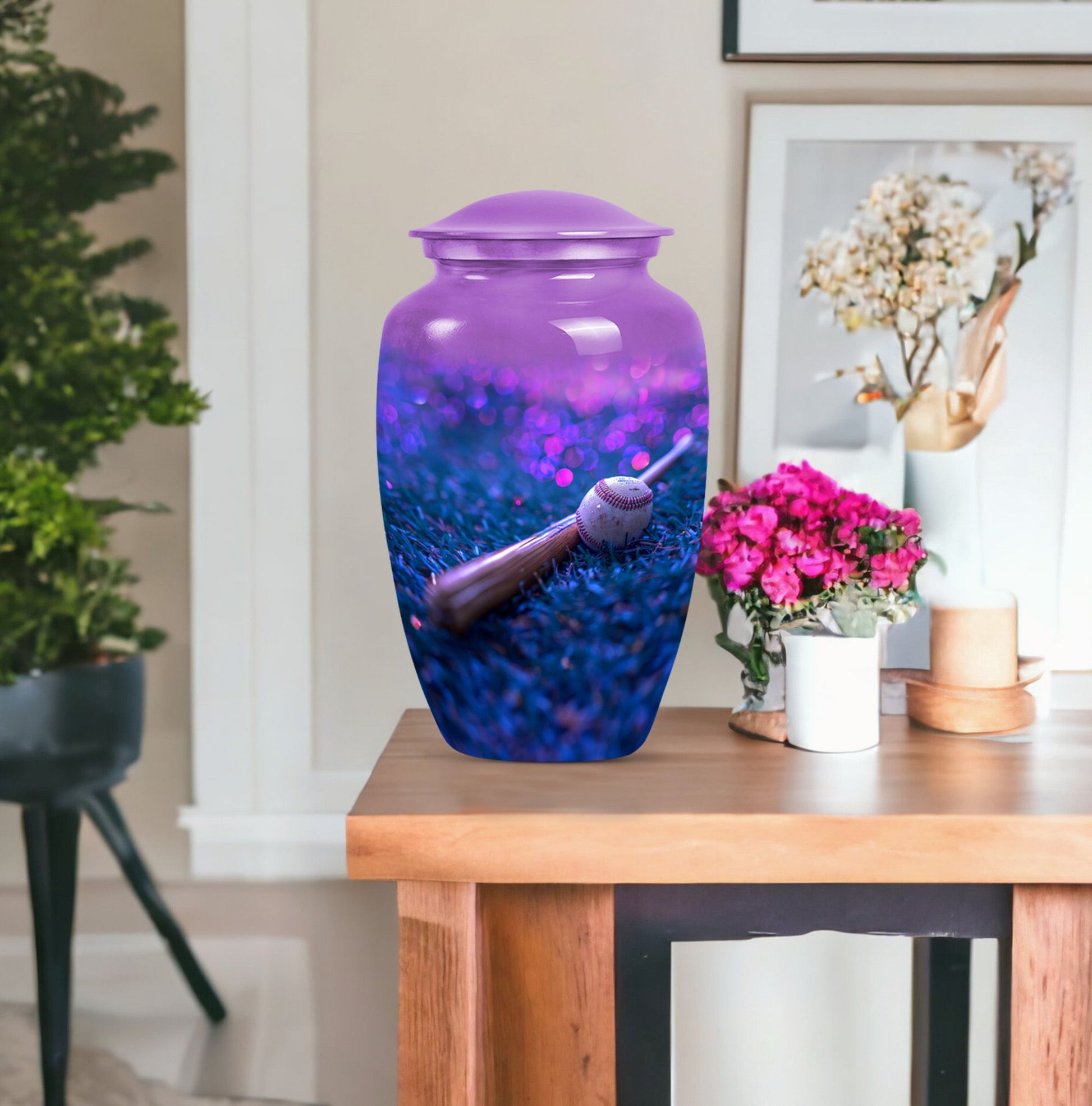 Ensure a dignified memorial service with our beautifully crafted, 10-inch Baseball urn. Made to honor your beloved with sophistication and elegance, our Large urn styled in a classic design displays a notable finesse. This memorial urn for burial in ground is delicately crafted from durable Aluminium and features a striking butterfly theme that symbolizes endurance, change, and resurrection. With a capacity of 200 cubic inches, this cremation urn is designed to securely hold the ashes and comes with a luxurious velvet pouch for containment. Weighing a sturdy 3.3 pounds and standing proudly at 10 inches in height, the urn can be personalized with engraved names, adding a genuinely unique touch to this already exceptional piece. Uncommonly grand, this Baseball urn also caters to seniors and adults as a poignant reminder of a well-lived life. Whether it be a memorial funeral urn or large urn for adults, our Baseball urn satisfies all with an unmatched intricacy.