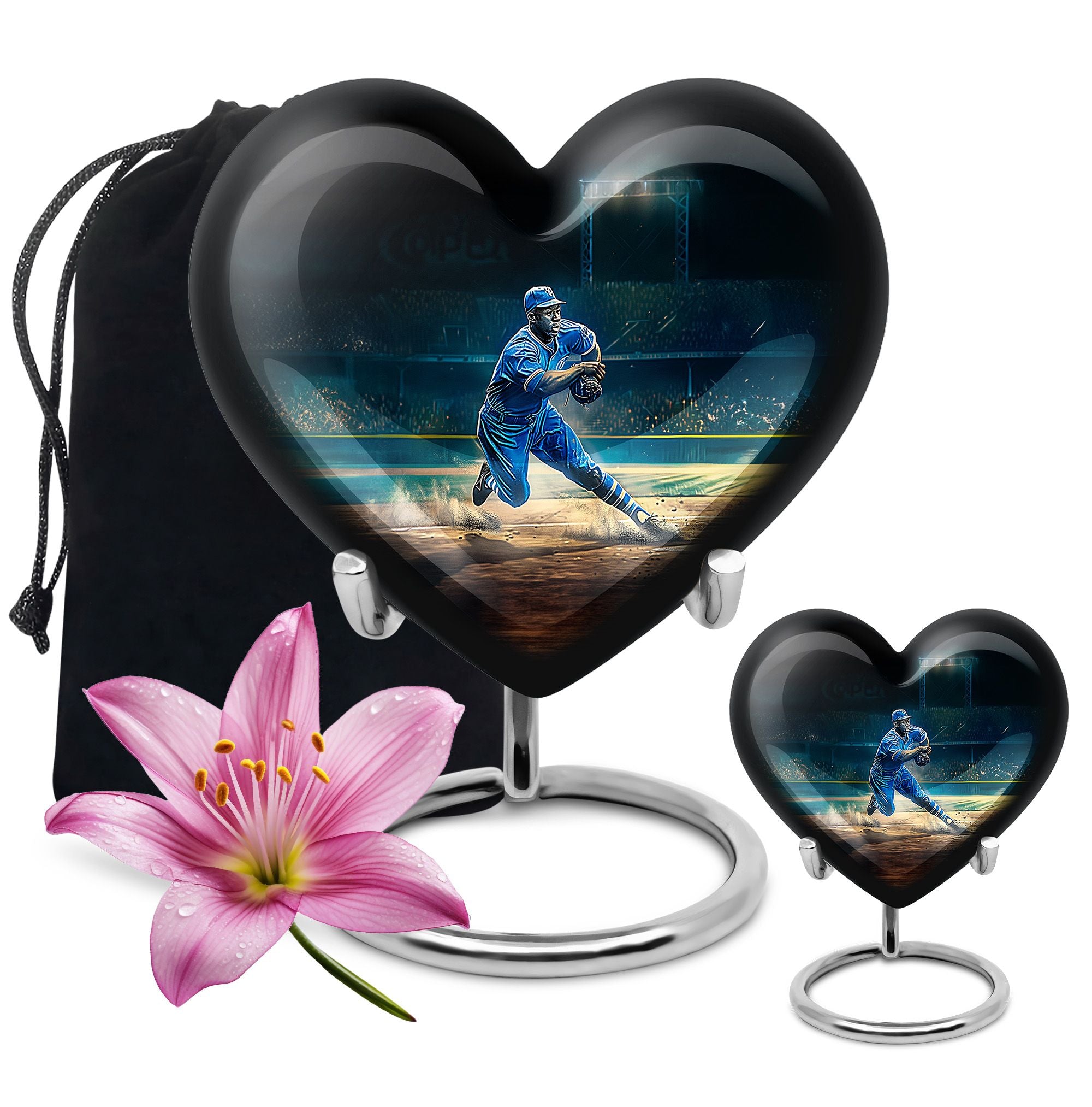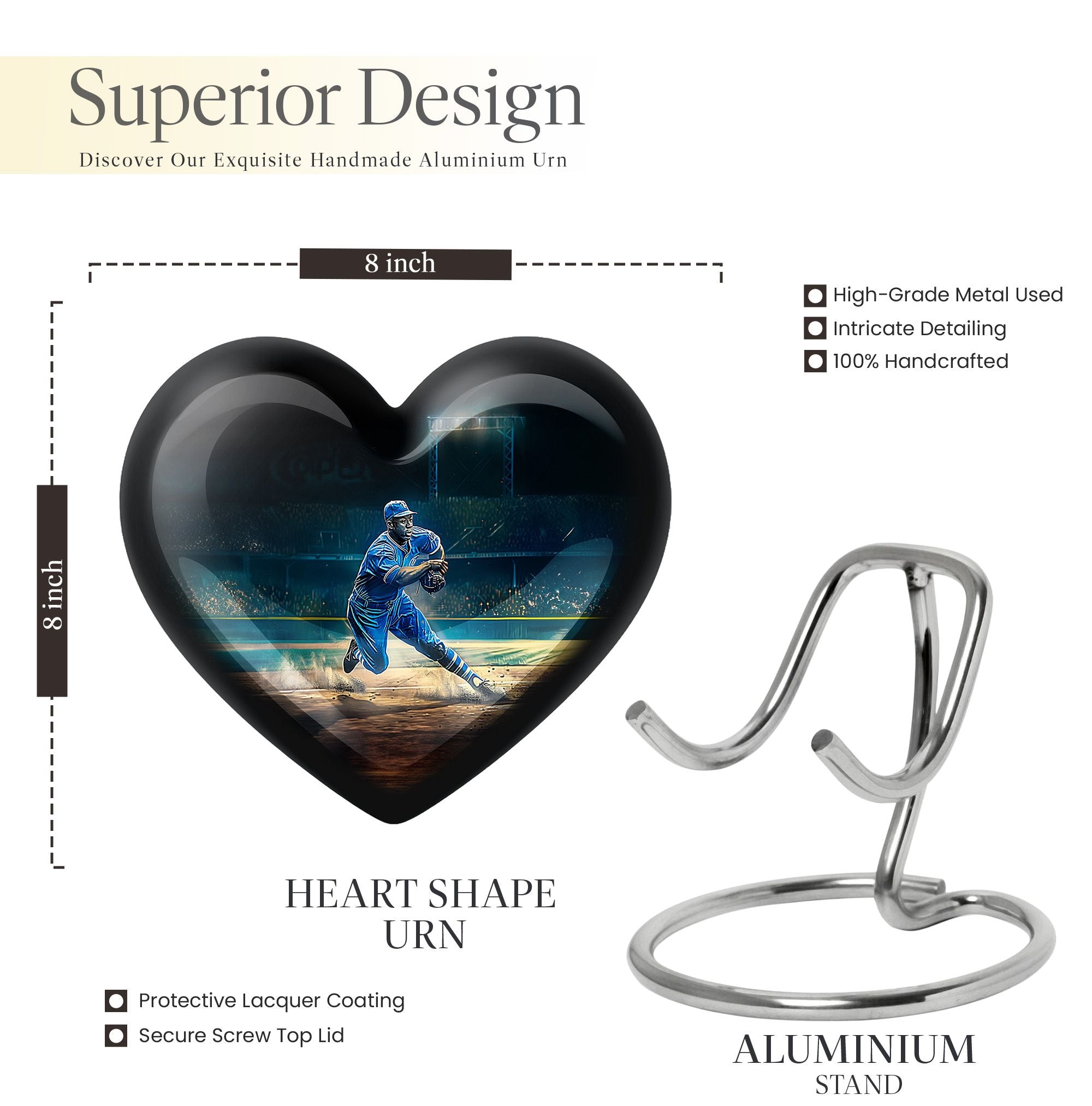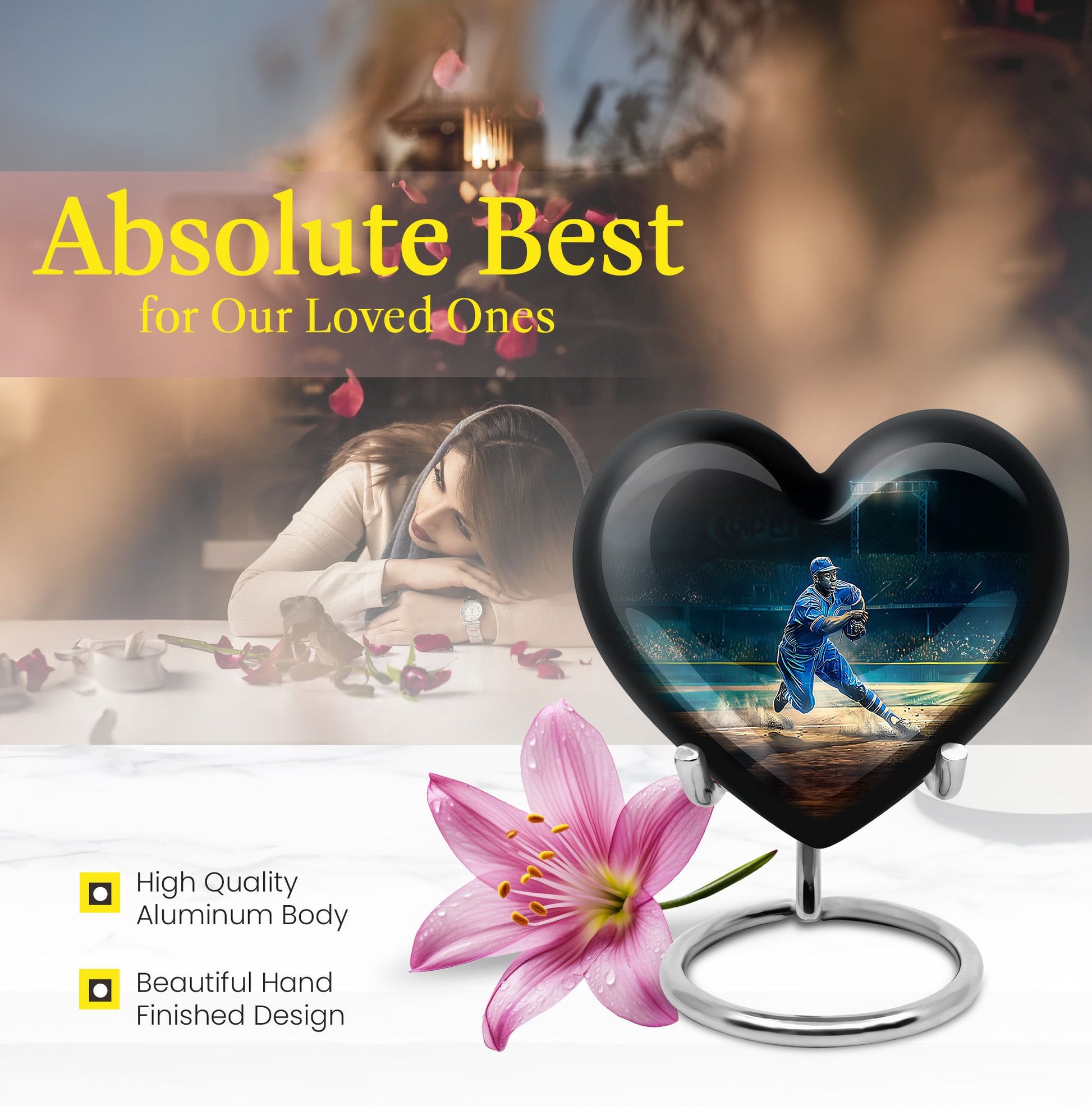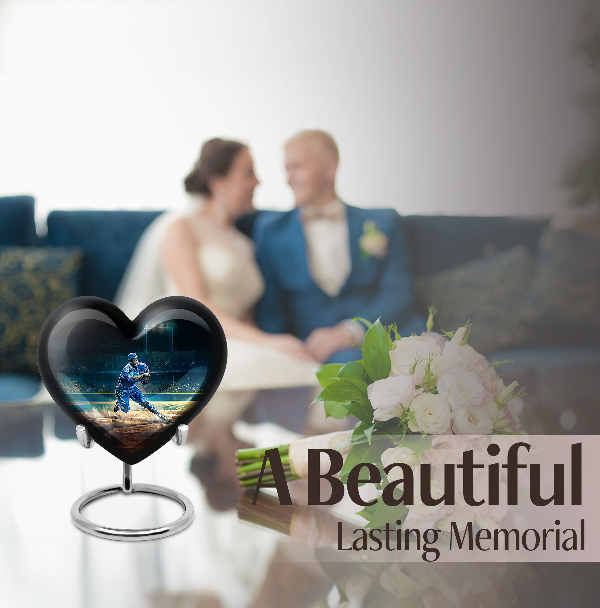 Our 10-inch Baseball Urn underlines the beauty of a well-lived life, providing a fitting memorial for a cherished one. Each element of this cremation urn is meticulously crafted using high-quality Aluminium material, offering lasting endurance. Its impressive capacity can securely hold up to 200 cubic inches of ashes. Weighing a substantial 3.3 pounds and standing 10 inches tall, this large urn makes a striking presence in any setting. The abstract theme adds a touch of modern artistry that subtly complements its sacred function. This urn is not just a container, but a symbolic piece of art that exudes warmth, love, and memories. To make it even more special, you can personalize it with engraved names. Upon purchase, it comes conveniently packaged in a velvet pouch for the safe containment of the ashes. This urn combines practicality with sentiment, providing a touching tribute to an unforgettable individual, whether it is for a man or a woman. Whether you're seeking memorial urns for human ashes adult female or funeral urns for adult ashes men, this versatile pick serves as a loving sanctuary of memories.