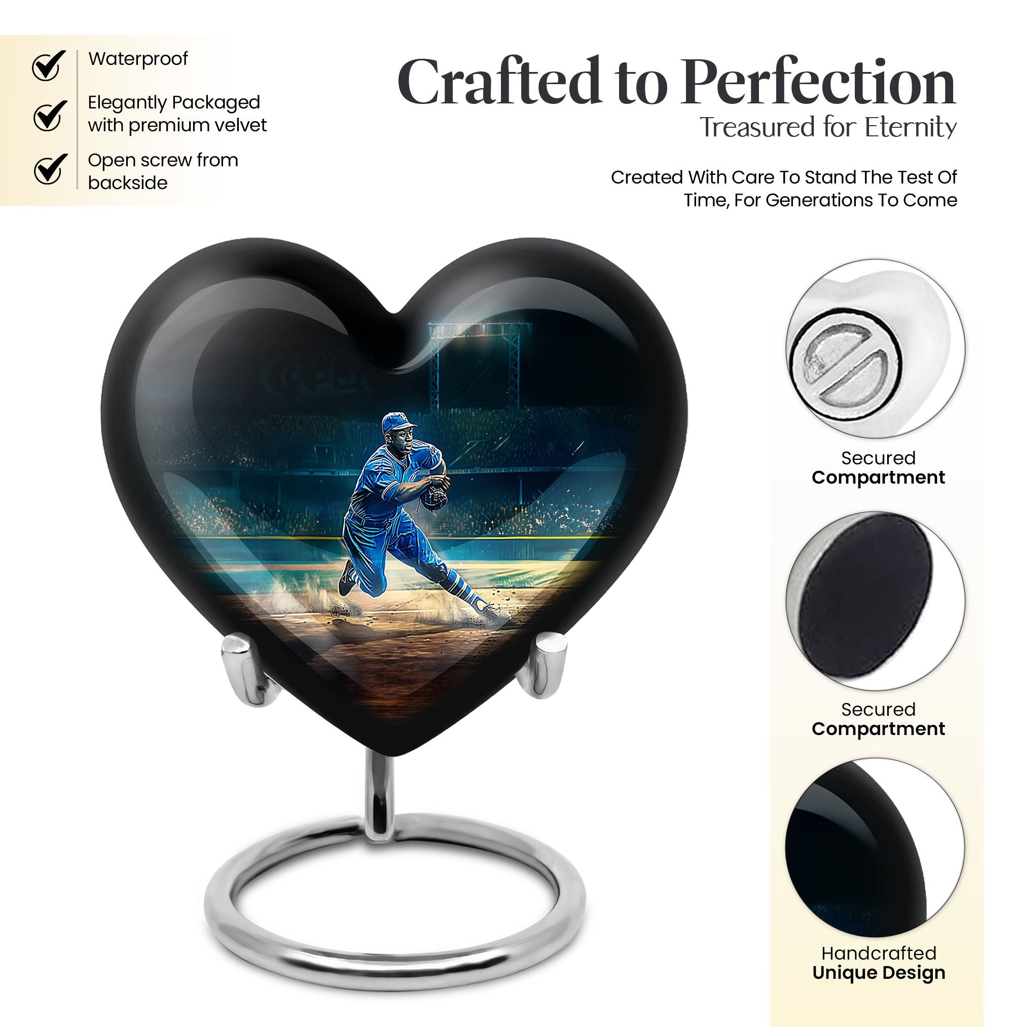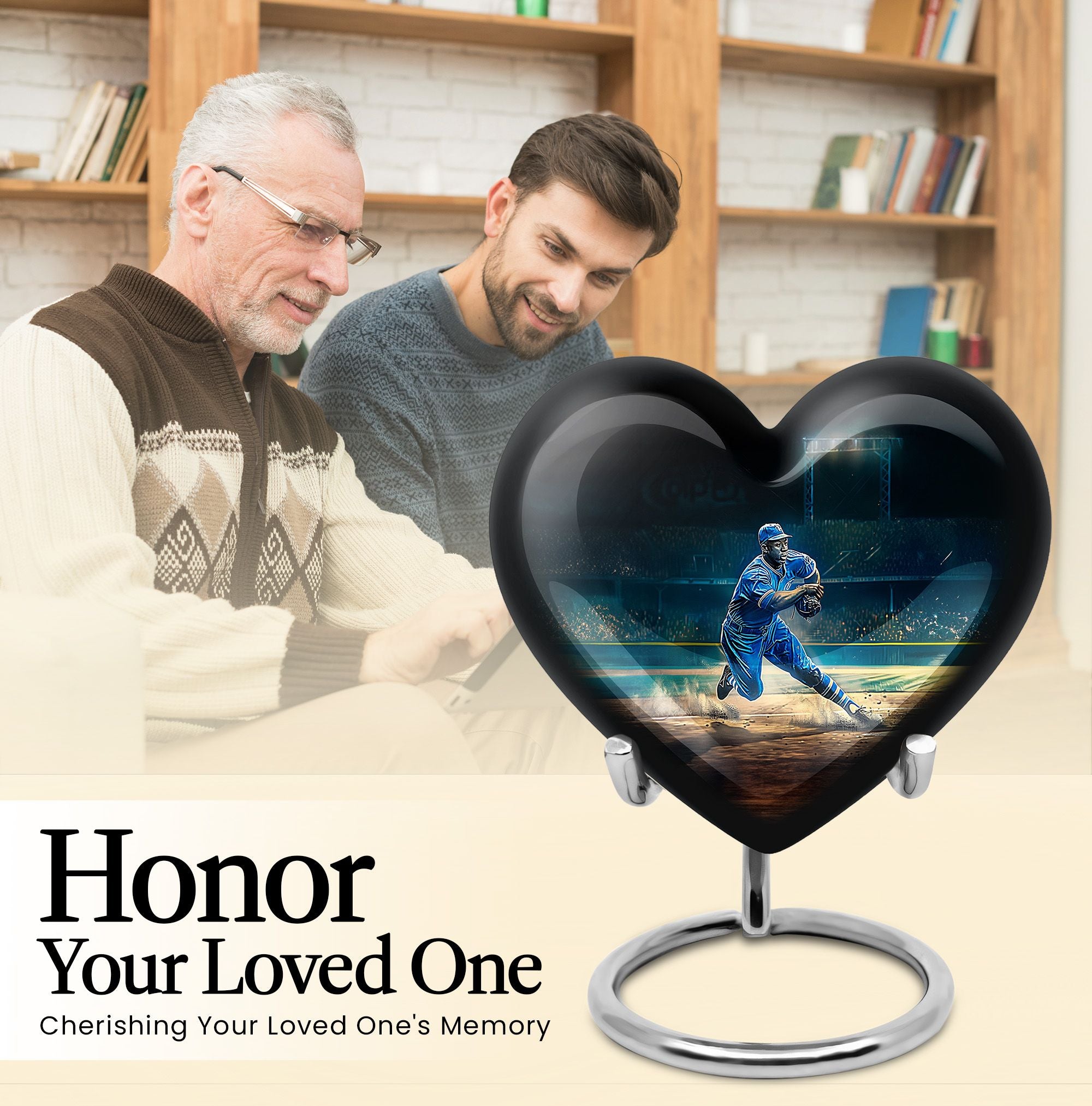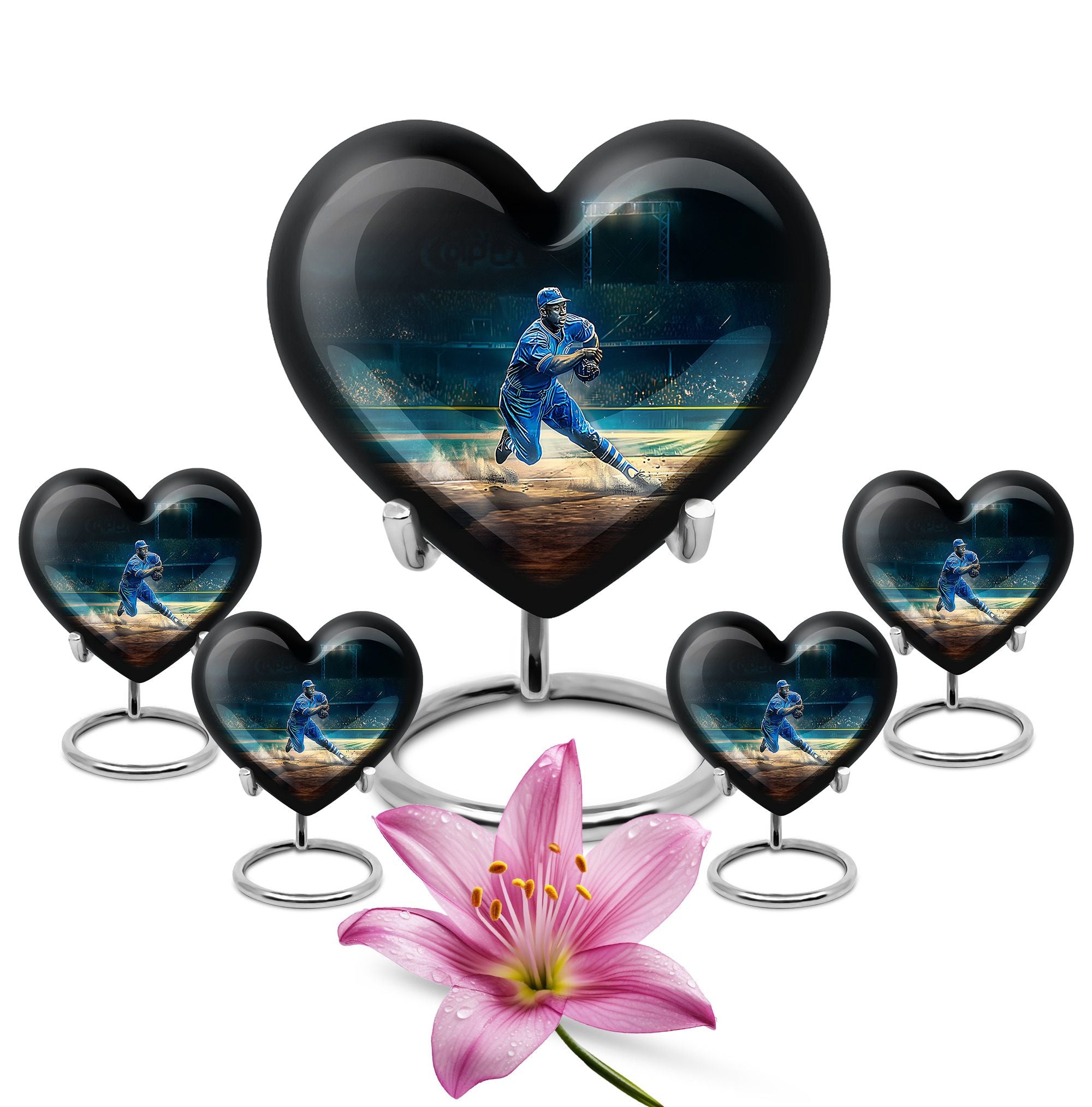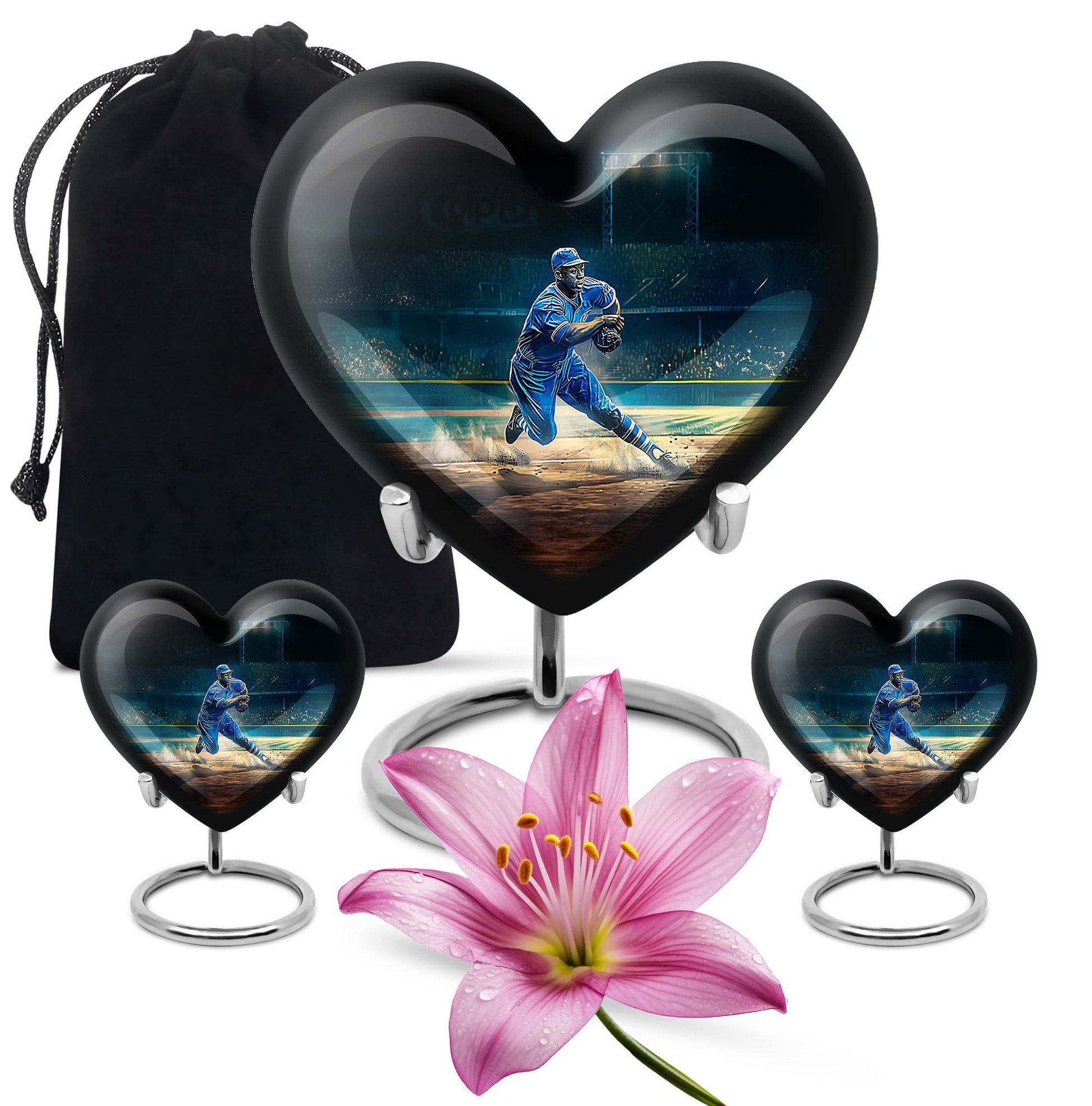 Our 10-inch Baseball Urn underlines the beauty of a well-lived life, providing a fitting memorial for a cherished one. Each element of this cremation urn is meticulously crafted using high-quality Aluminium material, offering lasting endurance. Its impressive capacity can securely hold up to 200 cubic inches of ashes. Weighing a substantial 3.3 pounds and standing 10 inches tall, this large urn makes a striking presence in any setting. The abstract theme adds a touch of modern artistry that subtly complements its sacred function. This urn is not just a container, but a symbolic piece of art that exudes warmth, love, and memories. To make it even more special, you can personalize it with engraved names. Upon purchase, it comes conveniently packaged in a velvet pouch for the safe containment of the ashes. This urn combines practicality with sentiment, providing a touching tribute to an unforgettable individual, whether it is for a man or a woman. Whether you're seeking memorial urns for human ashes adult female or funeral urns for adult ashes men, this versatile pick serves as a loving sanctuary of memories.