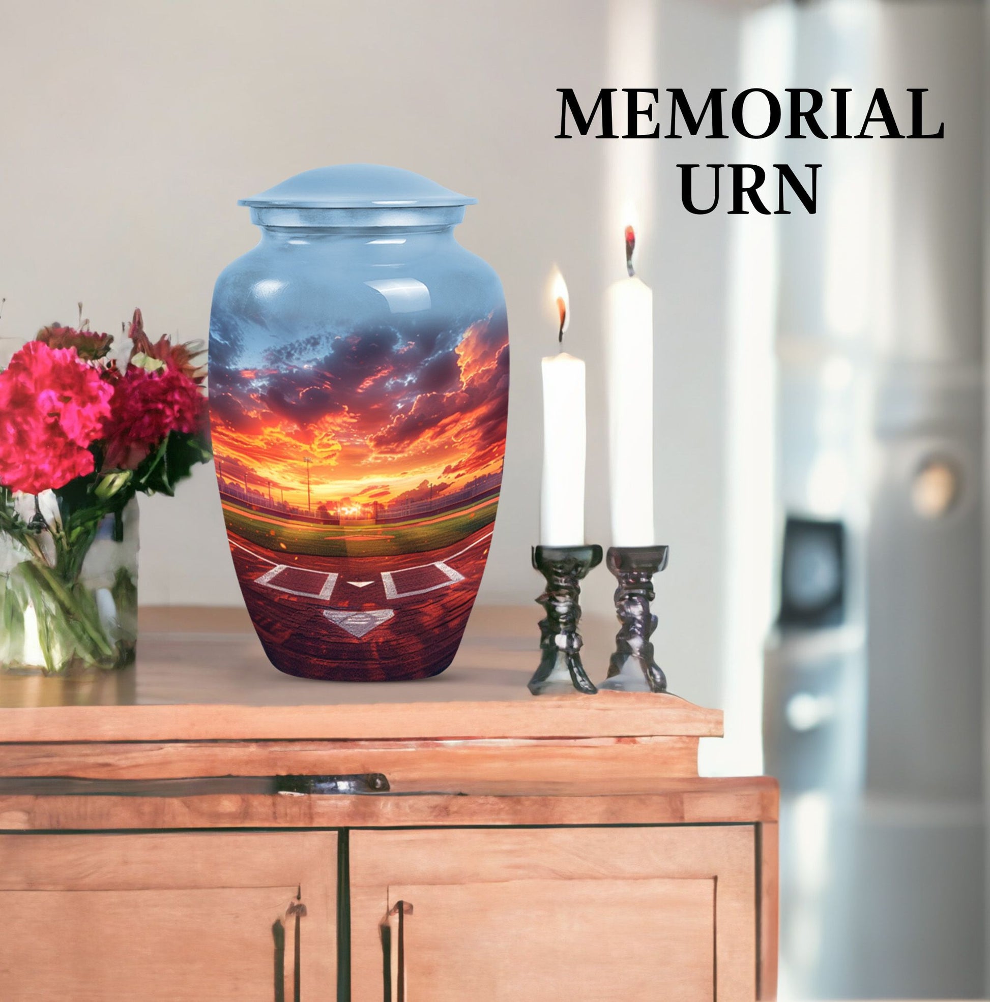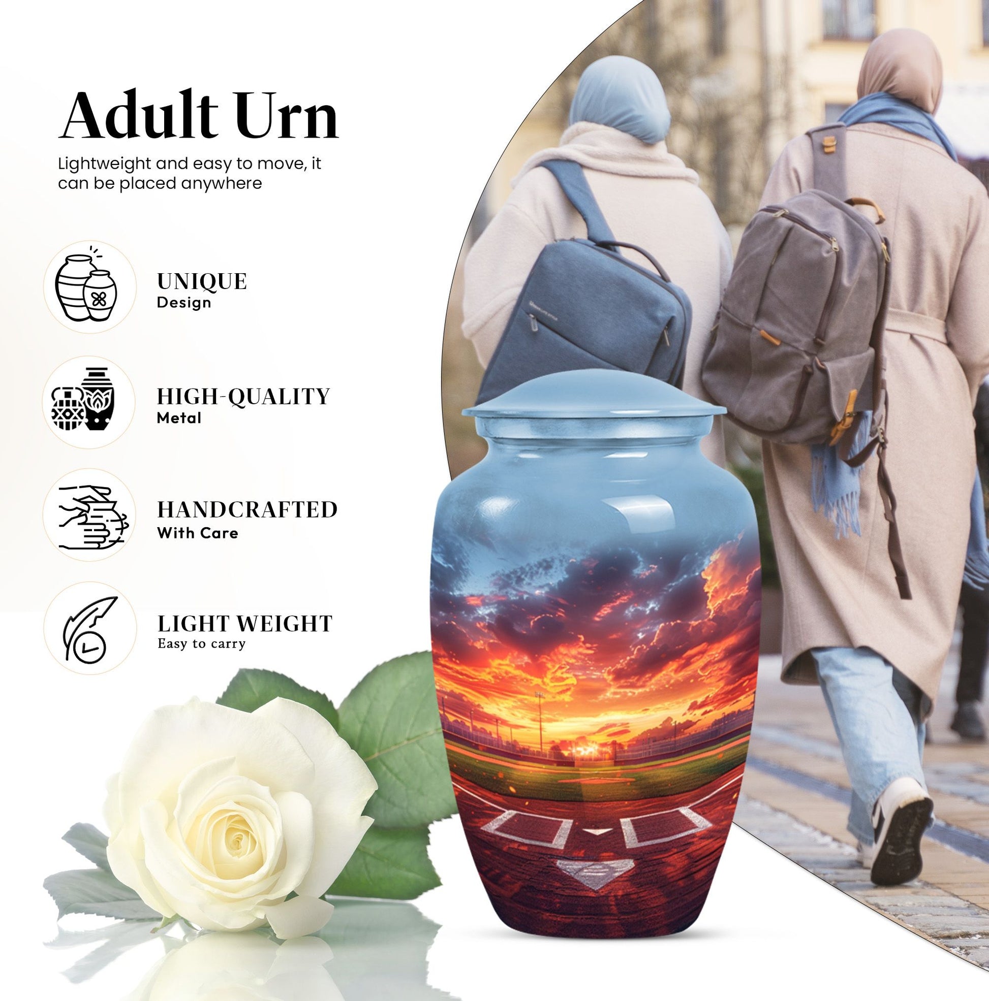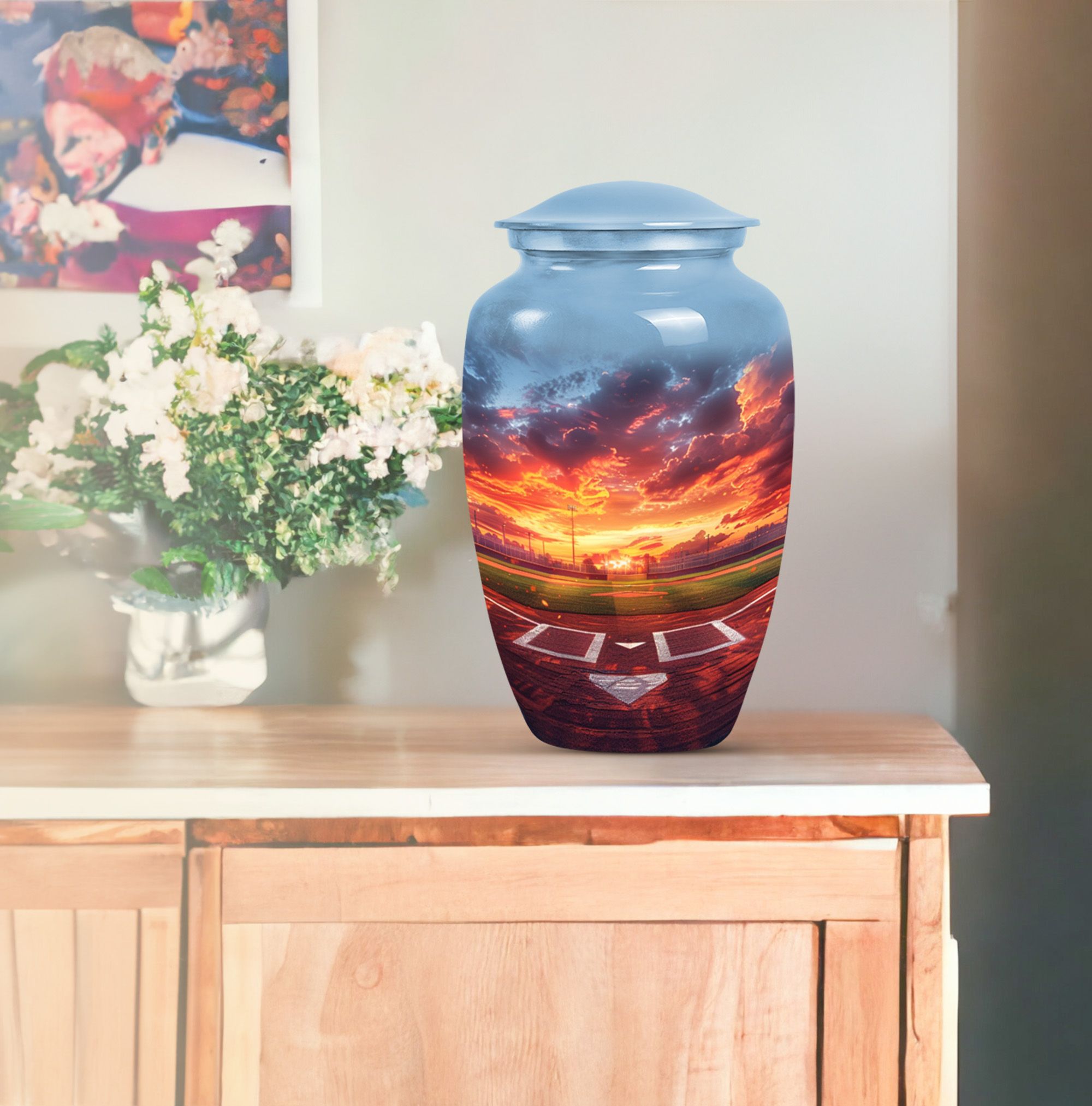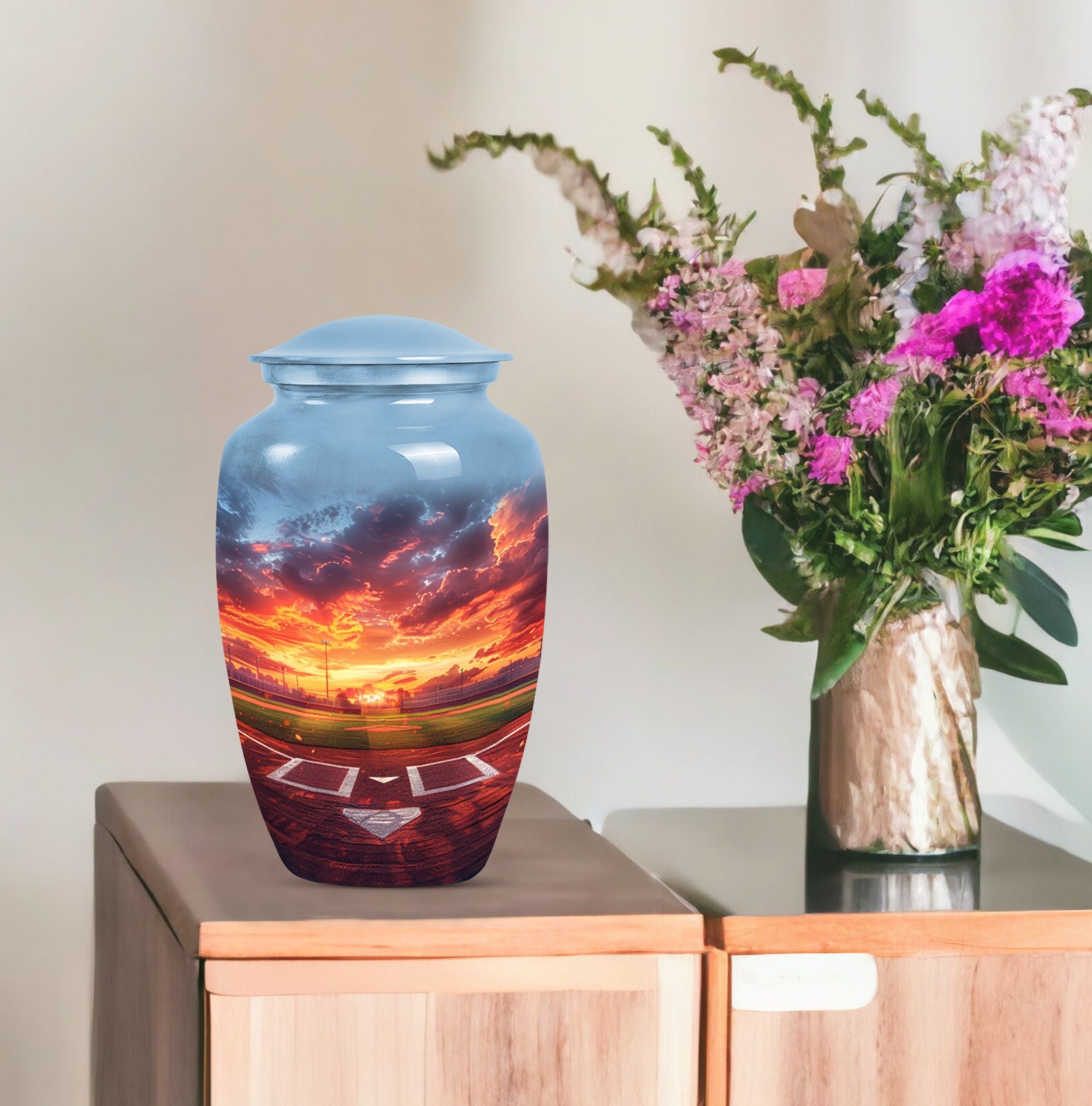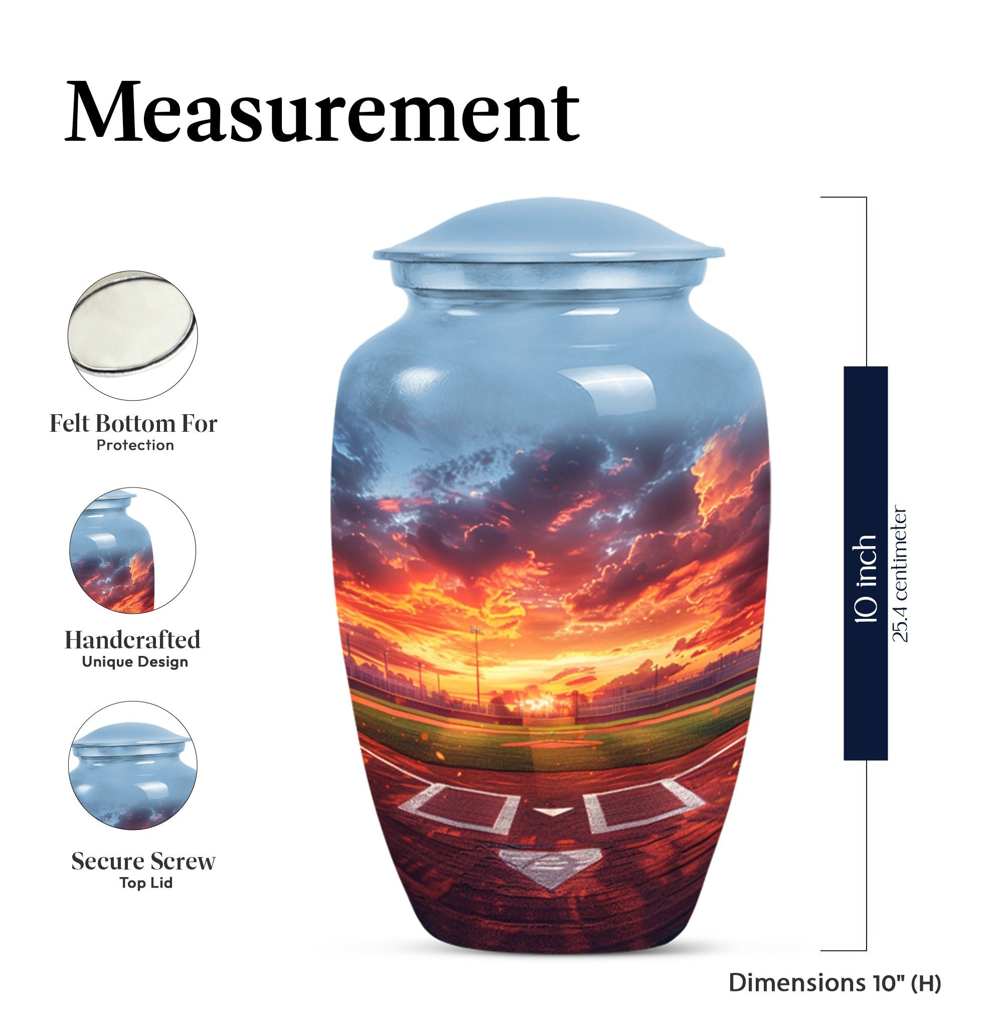 Cherish the memories of your loved ones with our high-quality 10 Inch Butterfly Theme Baseball Urn. Beautifully crafted from durable aluminium, this large urn weighs 3.3 pounds and stands 10 inches tall, making it a sturdy and lasting memorial piece. Its 200 cubic inch capacity can gracefully hold the ashes of an adult. This burial funeral urn is not just another cremation box, it tells a story of remembrance and reverence. It comes with a velvet pouch, adding an extra layer of protection and making the containment of ashes a hassle-free process. This urn can be personalized with engraved names, making each piece unique and intimate to the departed soul. While commonly used as memorial urns for women, our urns are suitable for everyone. Adding our product to your memorial ceremony supplies provides a dignified and respectable rest for the ashes of your loved one. Note: The design aspect of this product cannot be overstated as it is inherent in the 'Classic Urn' style.