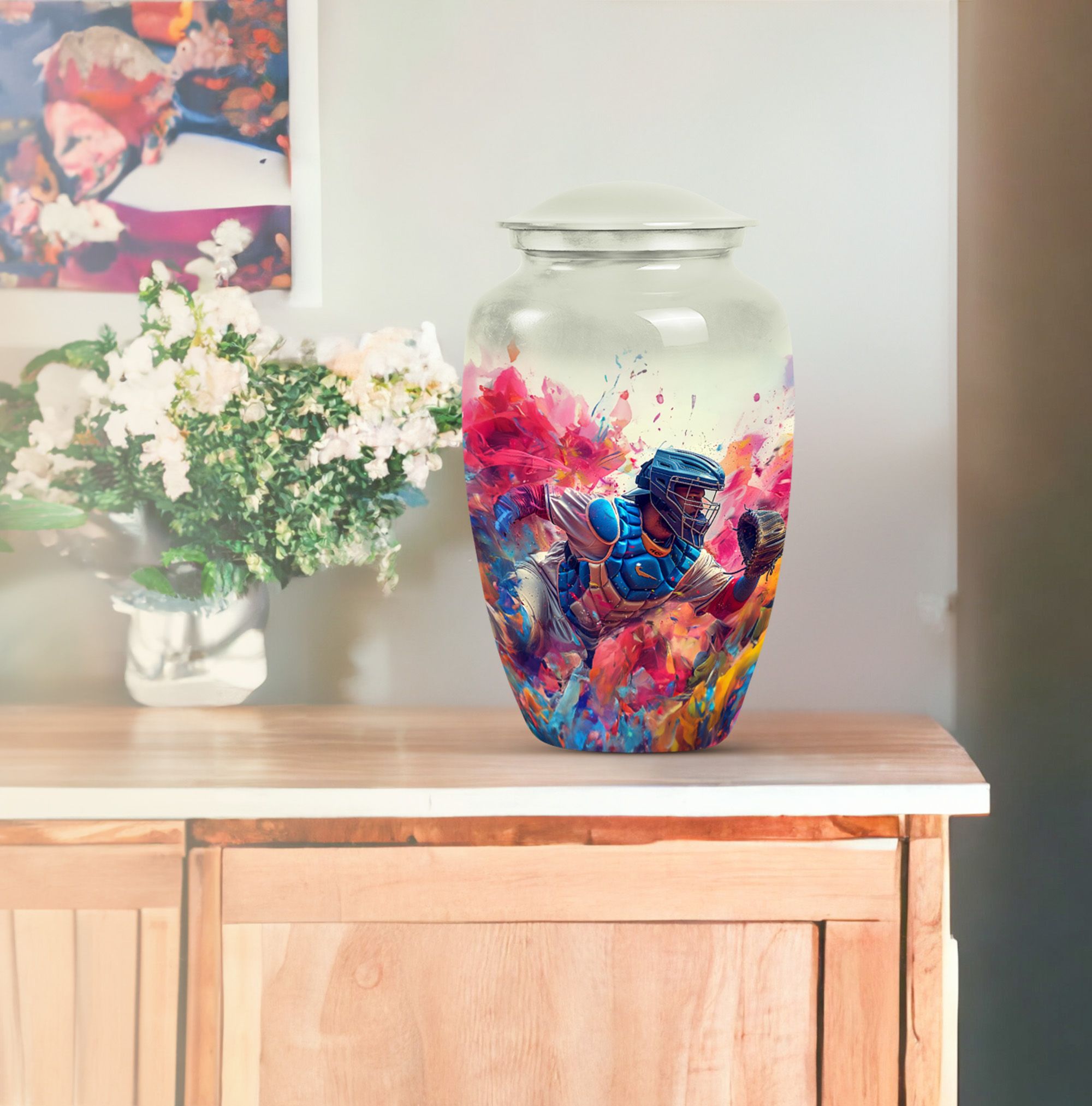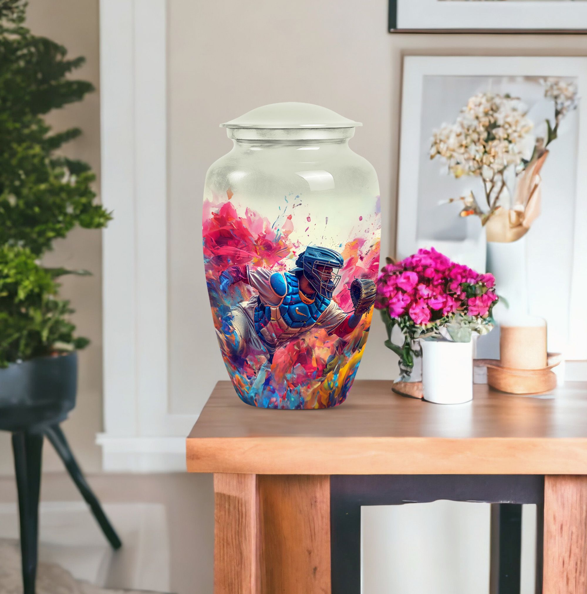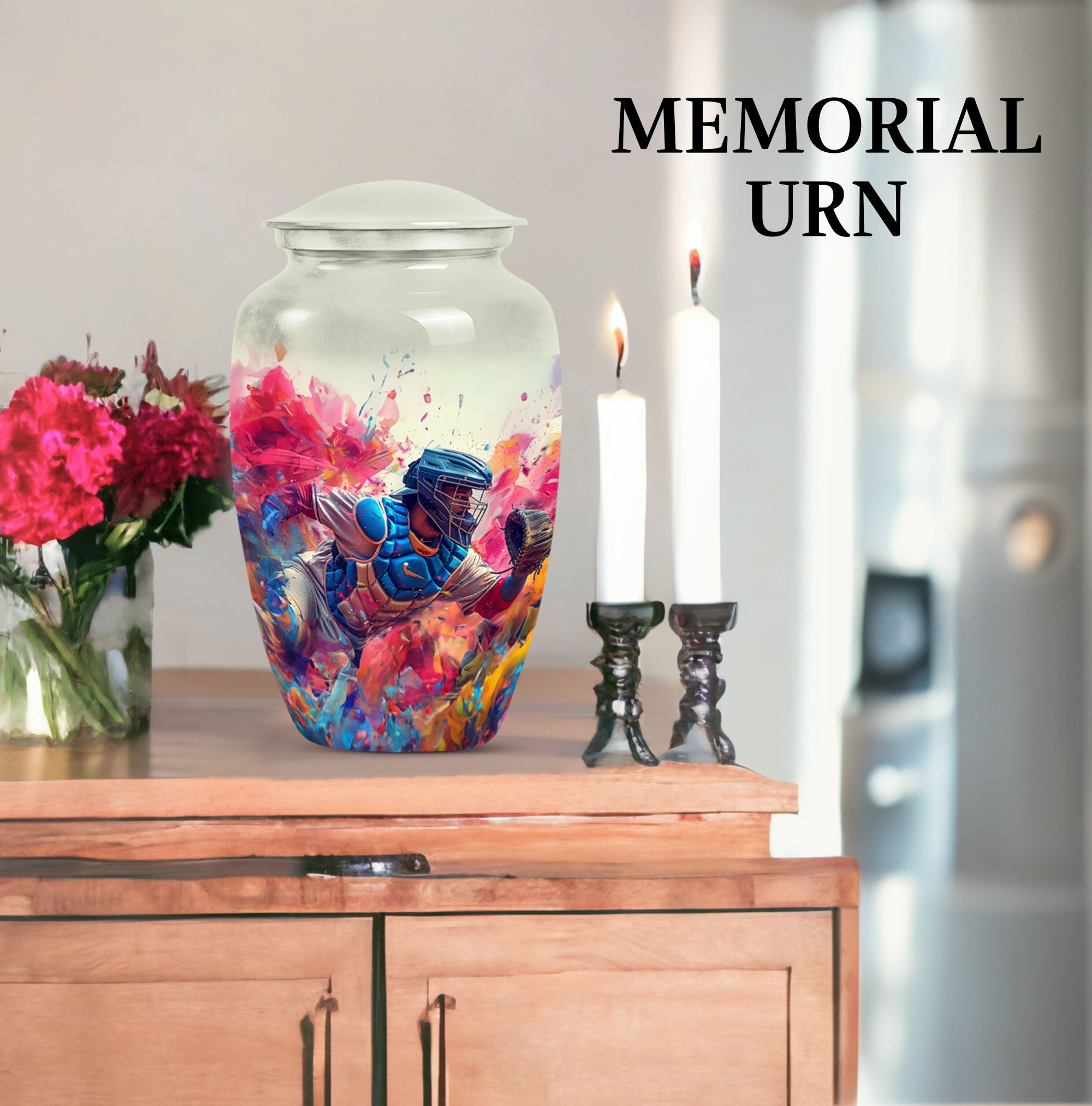 This 10-inch Large Classic Urn is an exquisite piece for preserving the cherished memories of your loved ones. Crafted from high-quality Aluminum, it weighs 3.3 pounds and offers a spacious capacity of 200 cubic inches. The sublime butterfly theme not only enhances its aesthetic appeal but also makes it an endearing tribute. For your convenience, the package includes a velvet pouch for the containment of ashes. With the ability to personalize it with engraved names, this memorial funeral urn serves as a heartfelt remembrance. As a refined choice from our collection of large urns, this baseball urn rightly caters to the sentiment of homage as well as the decor aesthetics. This item can be searched using various keywords such as 'memorial urns', 'funeral unique urns for human ashes', 'urn human ash human ash', or 'decorative urns'. This beautifully crafted urn enshrines the subtle message of eternity and love and makes an excellent item under the Memorial Ceremony Supplies.