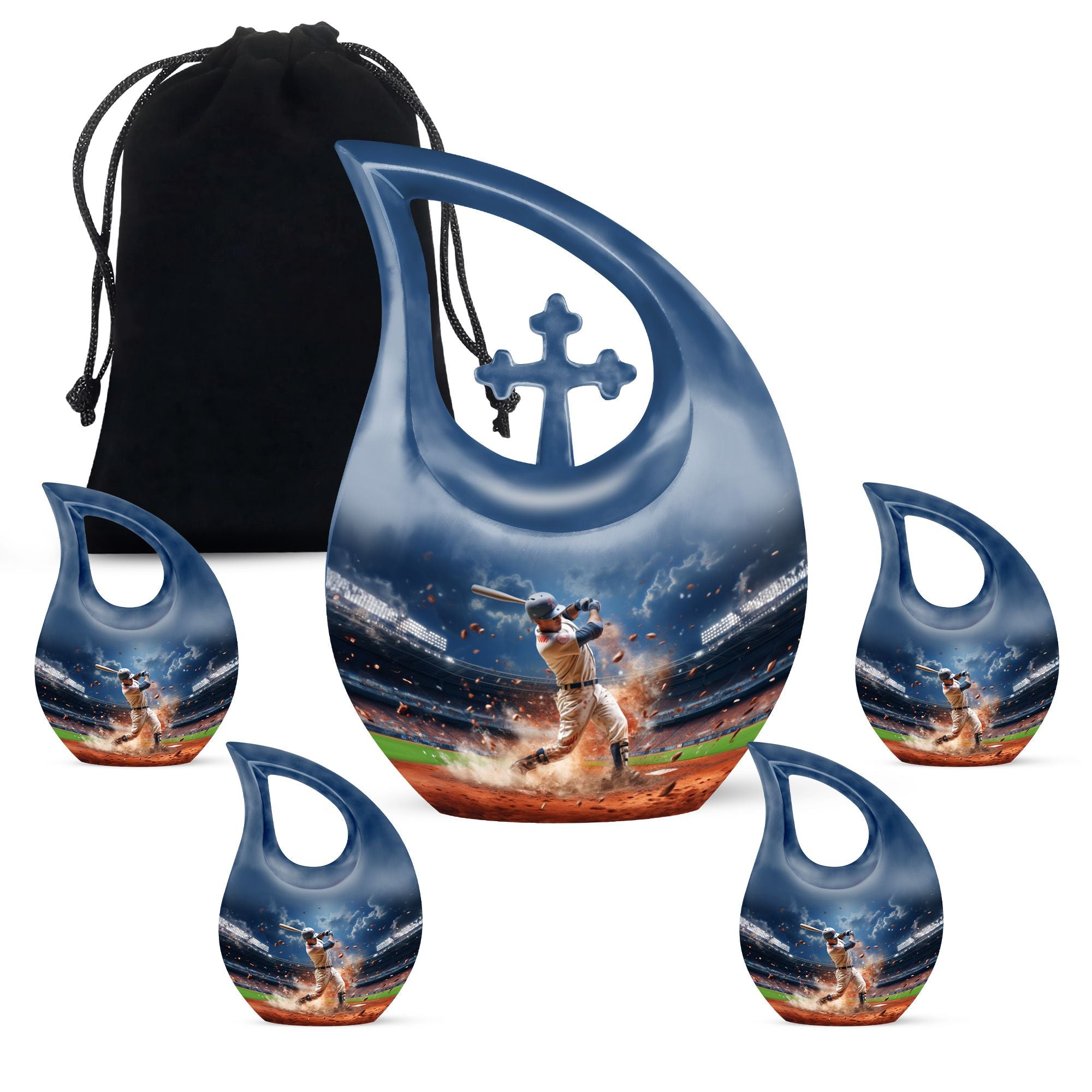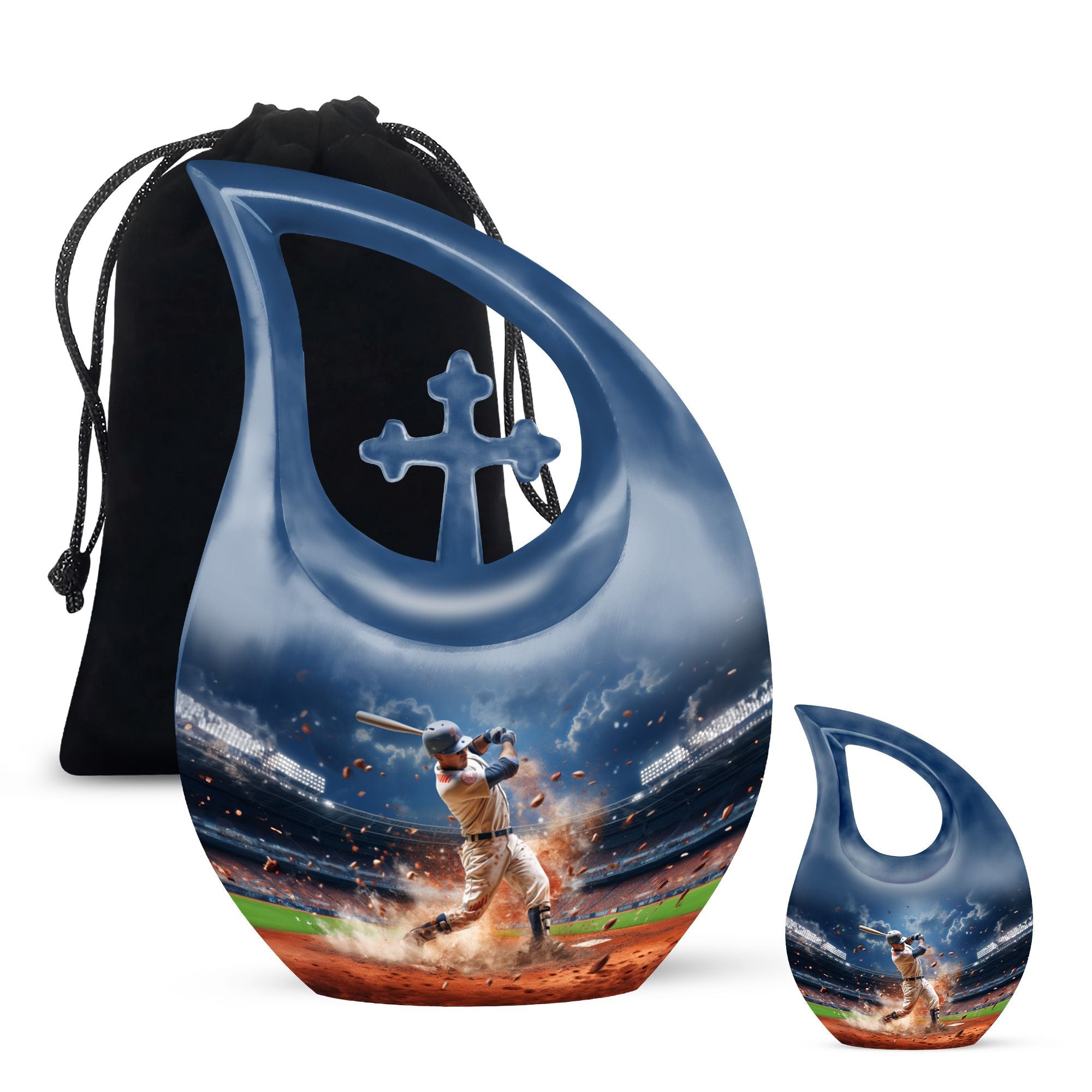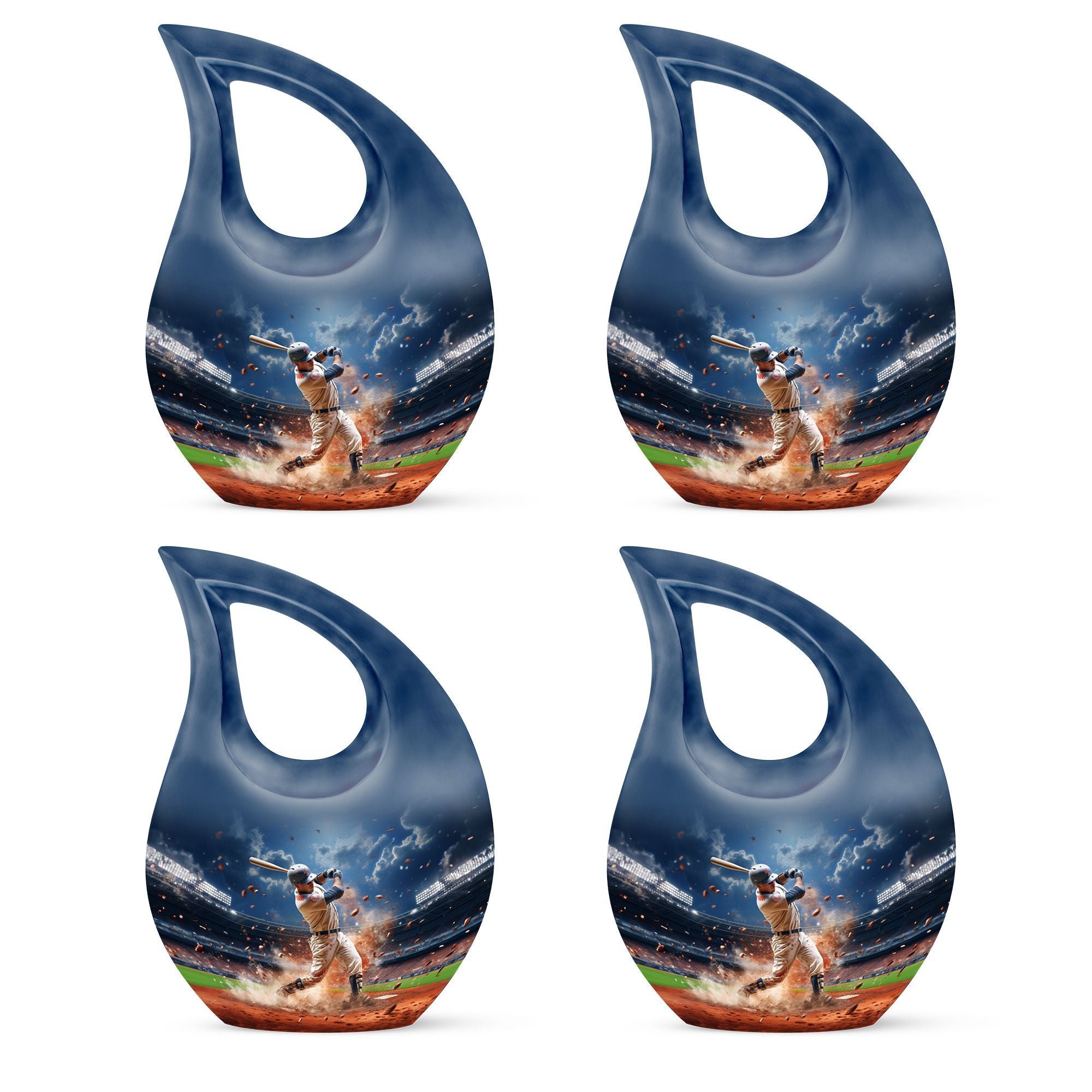 Crafted from durable aluminum, this sports ashes urn features a beautifully detailed baseball-inspired design symbolizing teamwork, dedication, and spirit. Its secure screw-top lid ensures long-term protection, while its full-size capacity makes it ideal for a funeral urn, funeral ashes urn, funeral urn adult needs, or adult funeral urn selections. Families wishing to share ashes can pair this full-size urn with funeral urns for human ashes small, keepsake funeral urns, or a mini keepsake funeral urn to create a coordinated memorial set. Its polished surface and timeless artwork make it a meaningful choice among adult funeral urns for display or burial.
