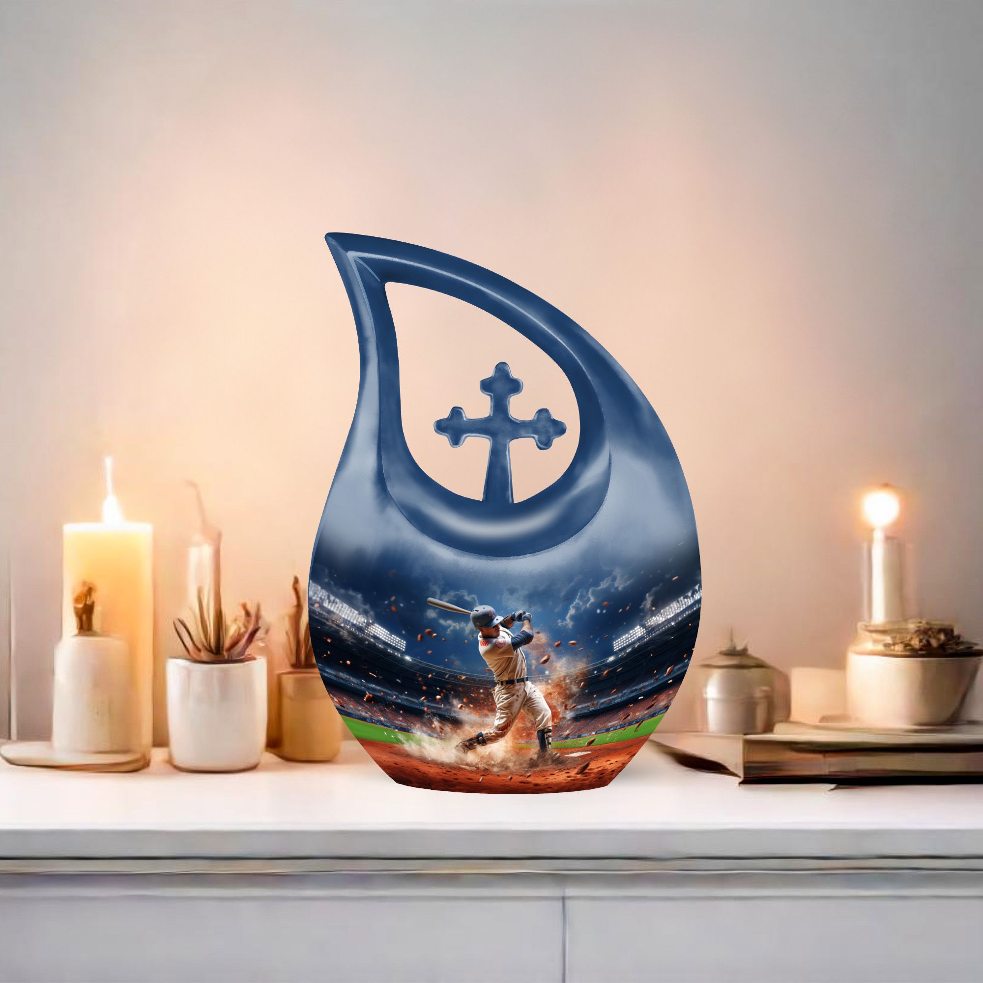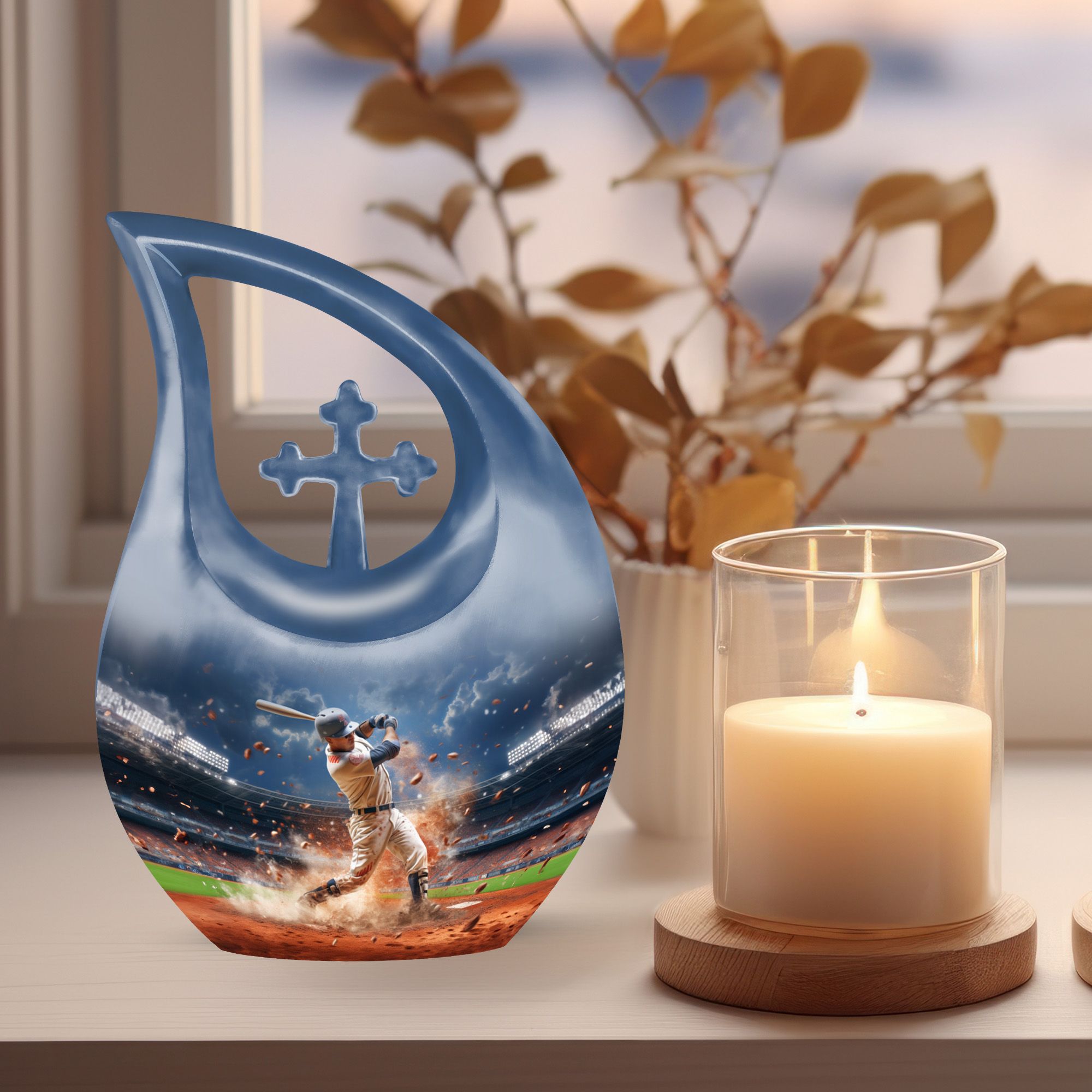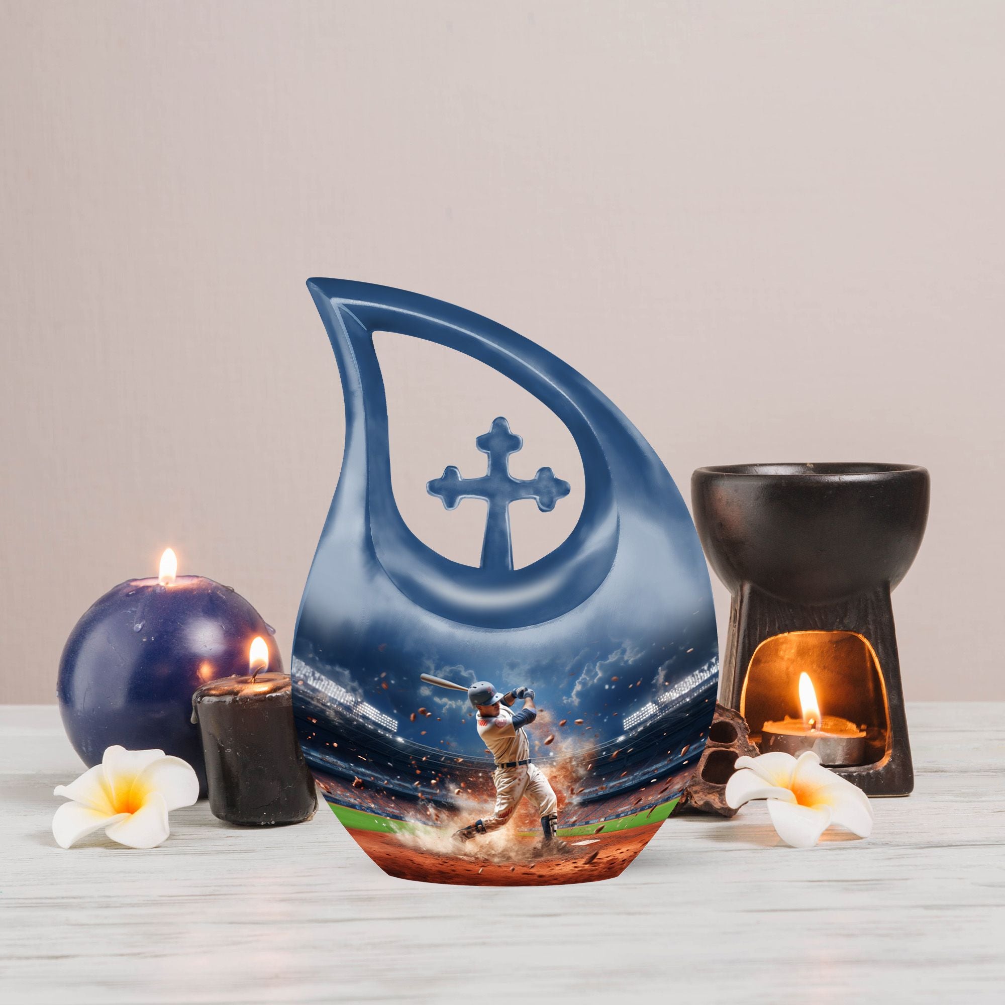 A warm and meaningful tribute, this baseball memorial urn honors cherished memories with dignity, beauty, and heartfelt significance.