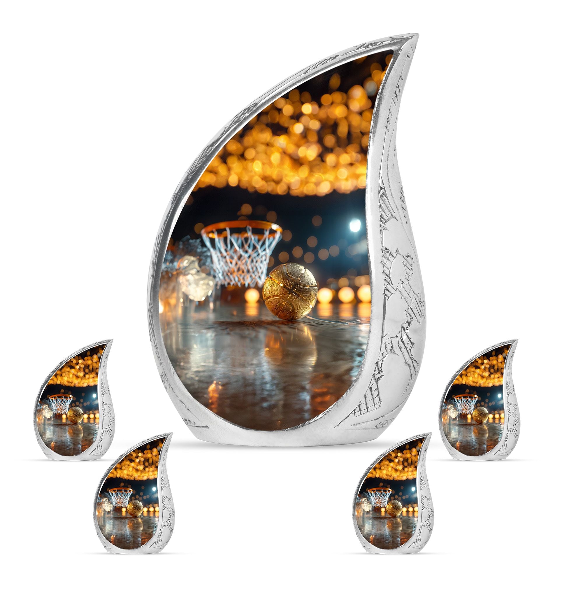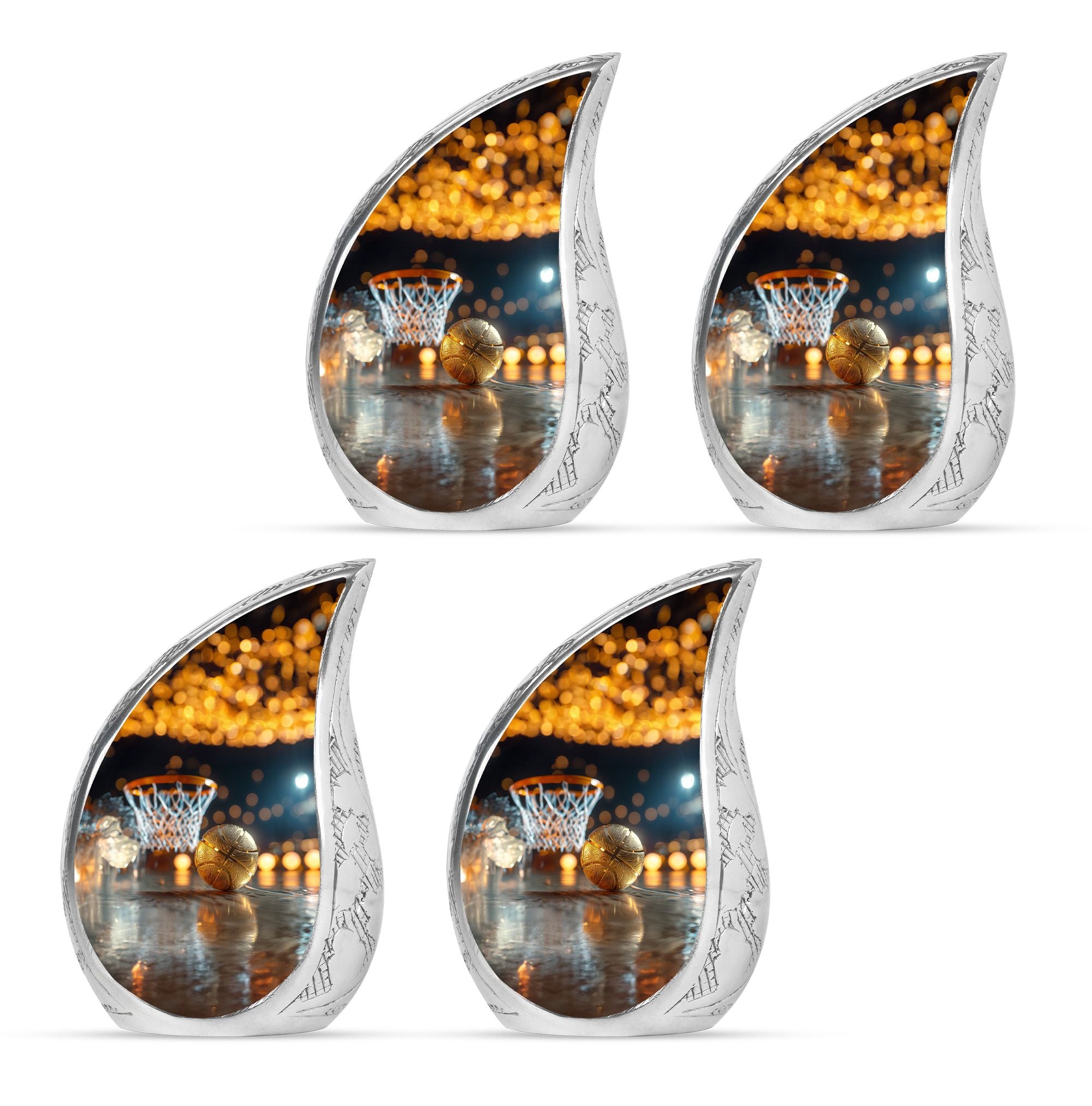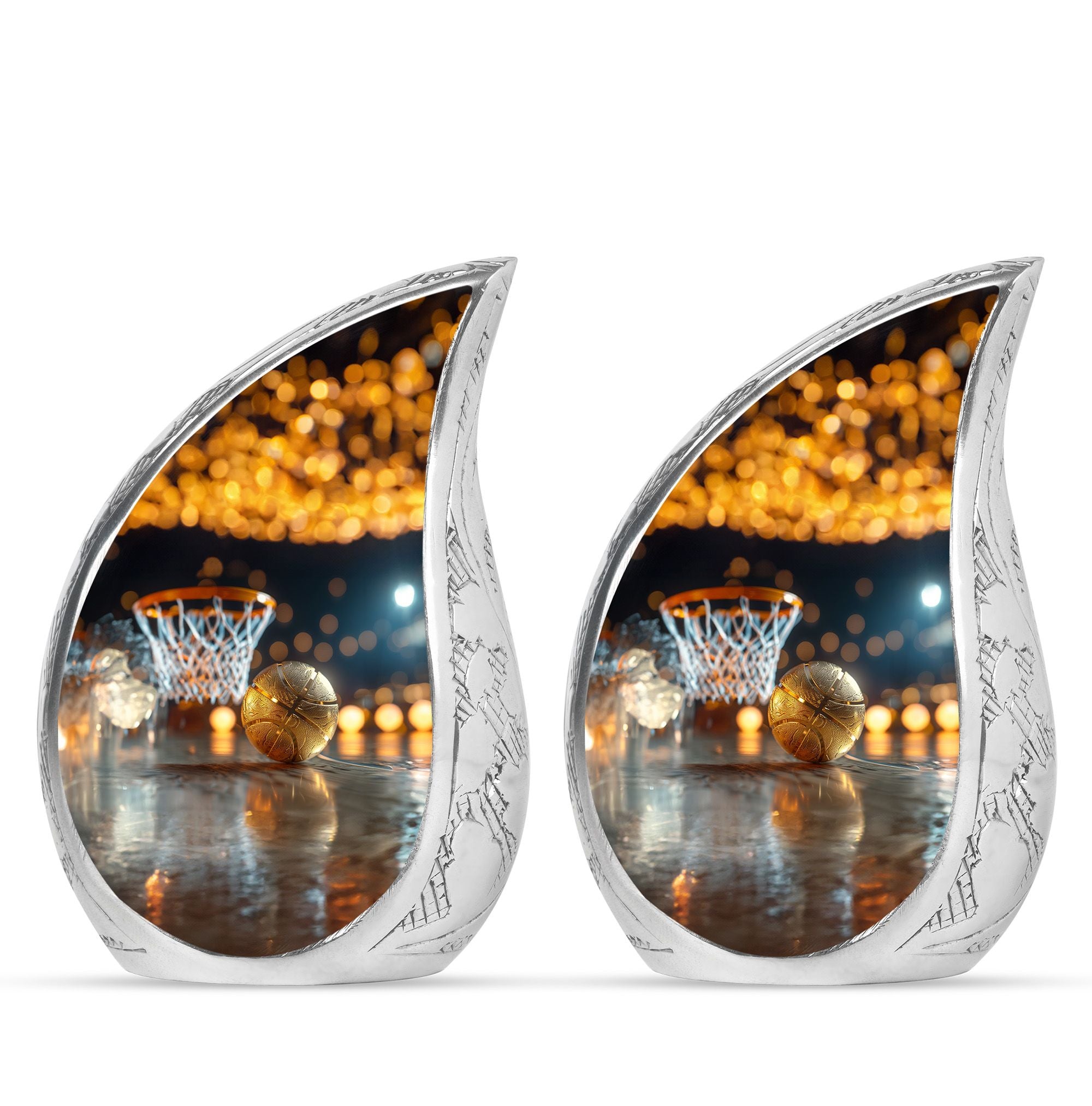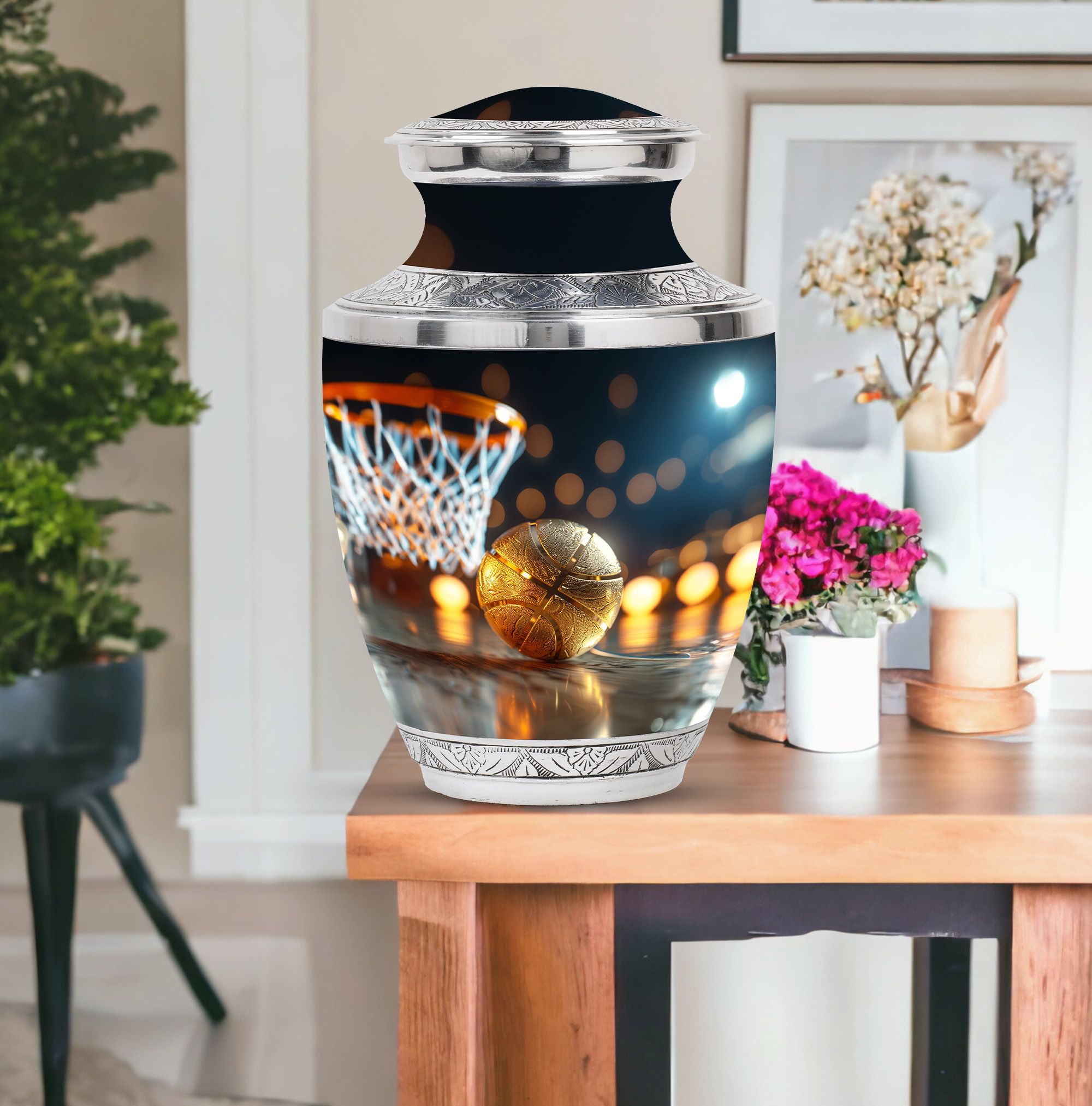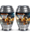 Expertly crafted from high-quality aluminum, this urn features a bold basketball design that captures the spirit of the game. Its polished finish provides timeless elegance, while the secure screw-top lid ensures ashes are safely contained. As one of the most versatile large cremation urns, it serves beautifully for home display, memorial ceremonies, or burial. Families looking for urns for ashes adult male large or urns for human ashes large adult female will find this design both unique and meaningful.