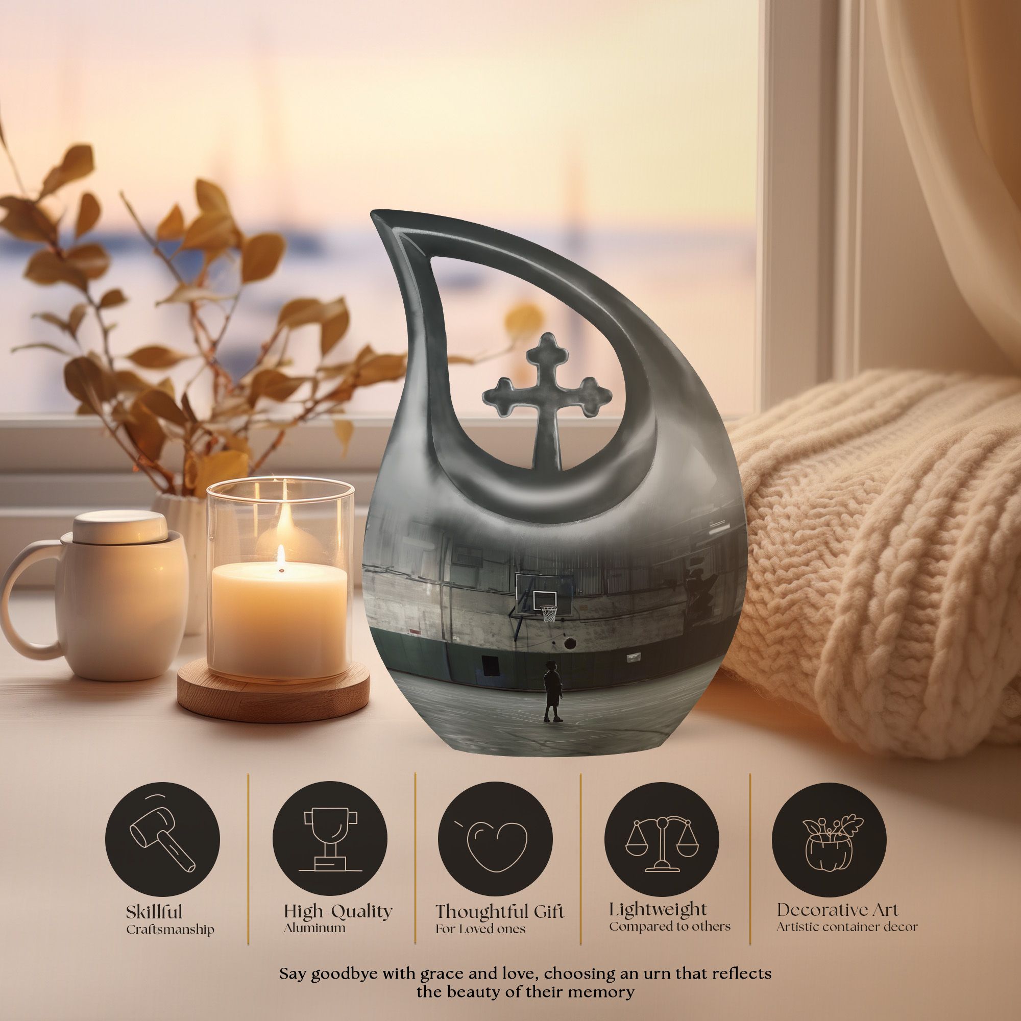Honor the life of a beloved athlete or basketball fan with this Basketball Memorial Urn, thoughtfully designed to provide comfort, dignity, and lasting remembrance. Its dynamic sports-inspired artwork makes it ideal for families seeking a large urn for ashes adult male or a meaningful tribute suitable for both men and women.