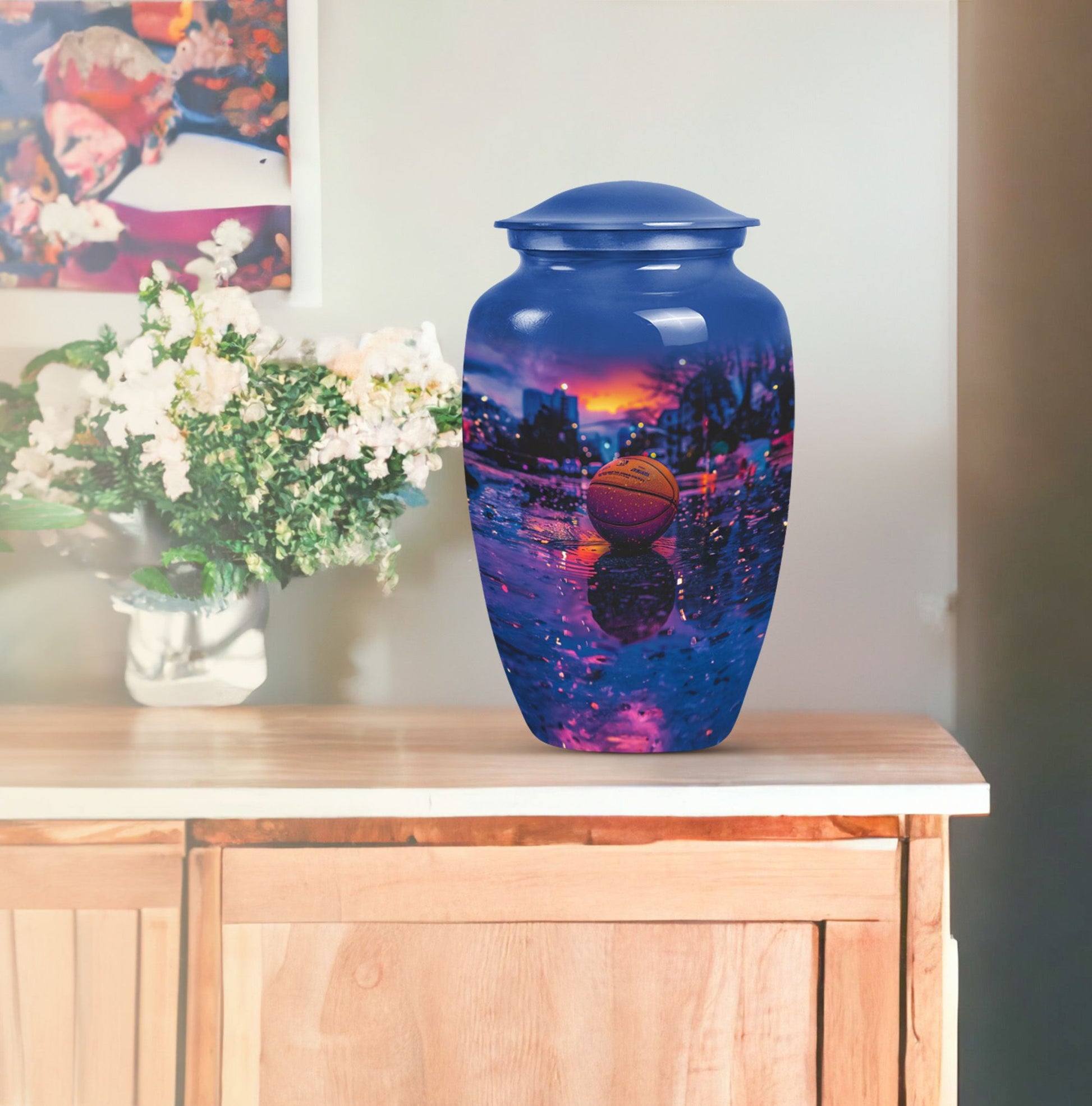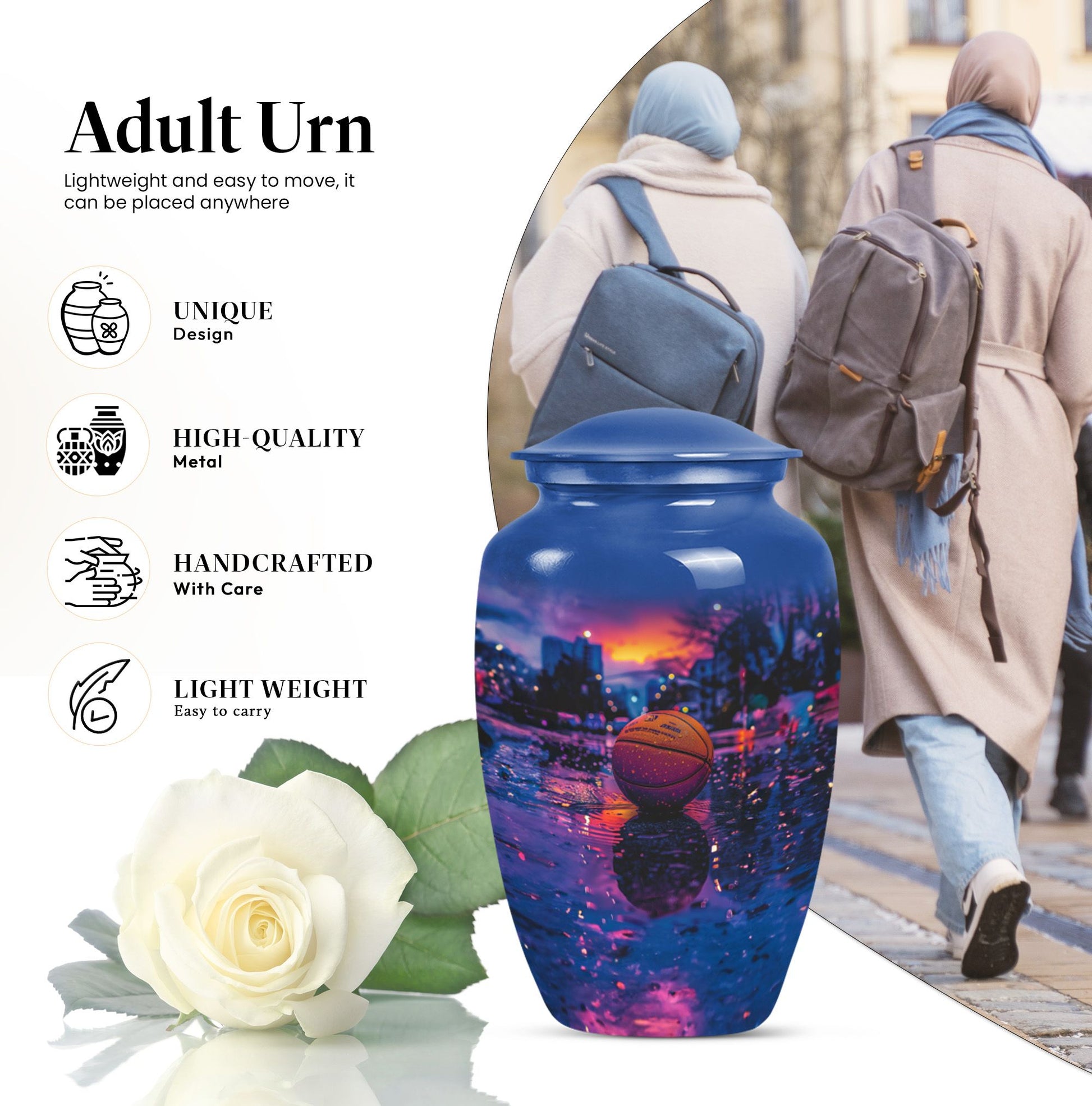 Honor your departed loved one with our elegant 10-Inch large urn, an exemplary choice for burial or an everlasting home memorial. Crafted from sturdy, lightweight Aluminium, this cremation urn weighs a mere 3.3 pounds, making it easy to handle. The svelte 10-inch height conveniently houses up to 200 cubic inches of ashes, ideal for cremation urns aimed at adult female ashes. This ethereal urn highlights a captivating butterfly theme, imparting an aura of tranquility and rebirth. With a nod towards customization, you can personalize it with engraved names, making it a unique tribute to one's life. Every urn arrives with a velvet pouch, ensuring the ashes are contained respectfully. Not just a cremation ashes container, but it's a heartfelt token of remembrance. Consider this basketball urn from our collection, as our offerings rise above generic urn ash adult urn human ash options, enhancing your memorial ceremony supplies. Utilize this urn for ashes, making memorial ceremonies more significant.