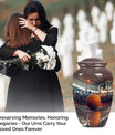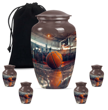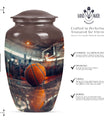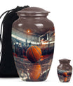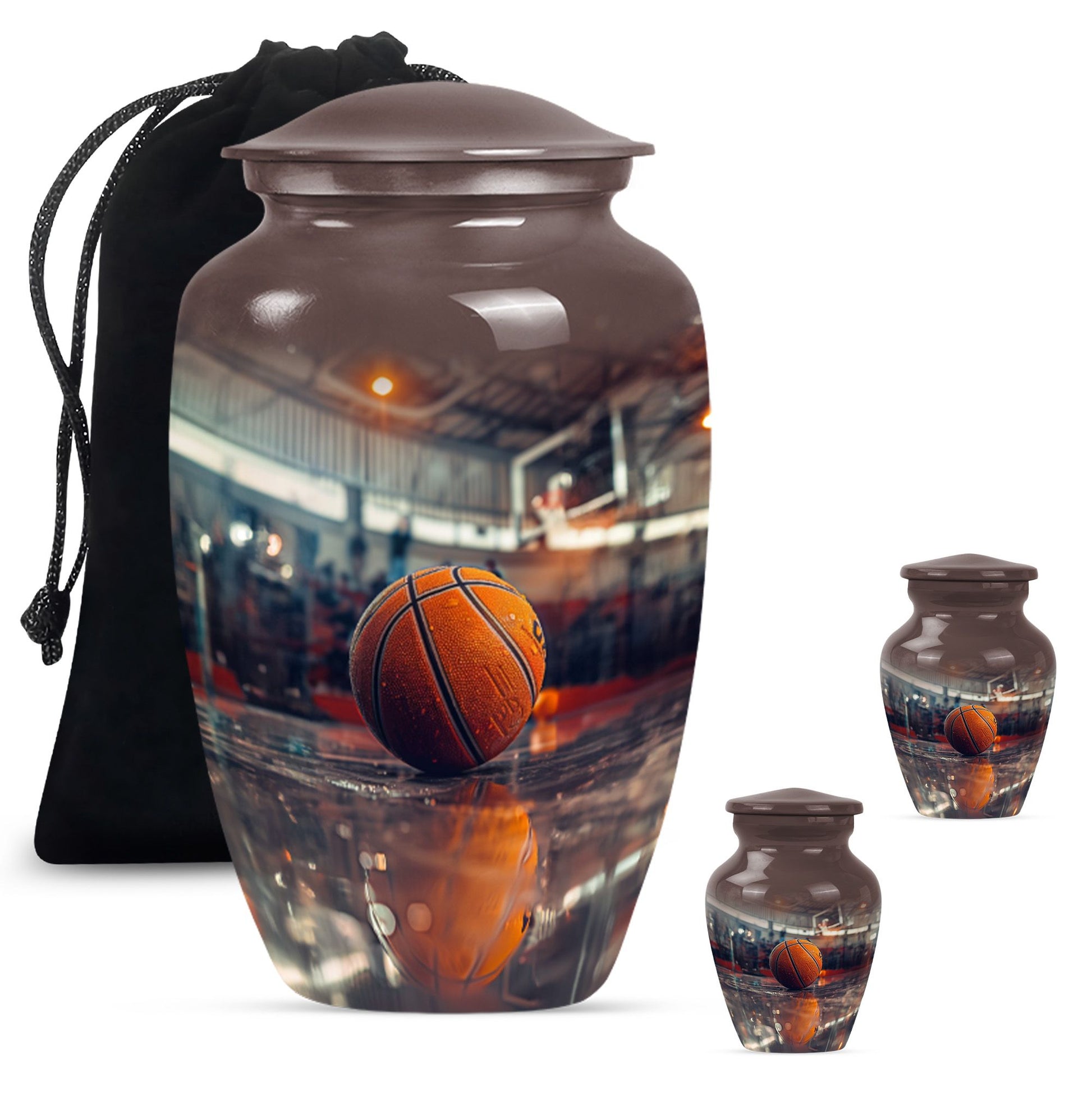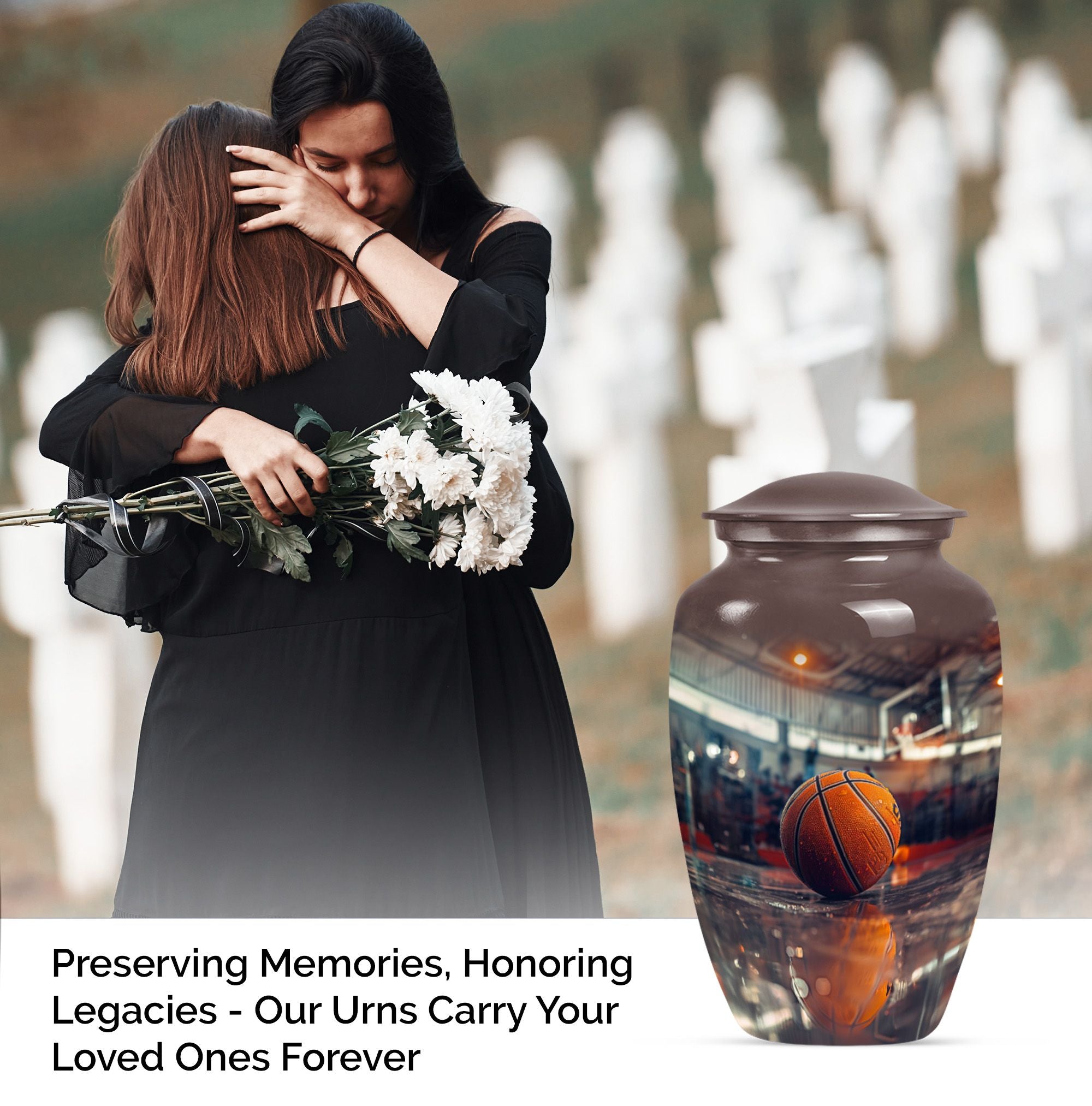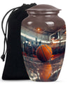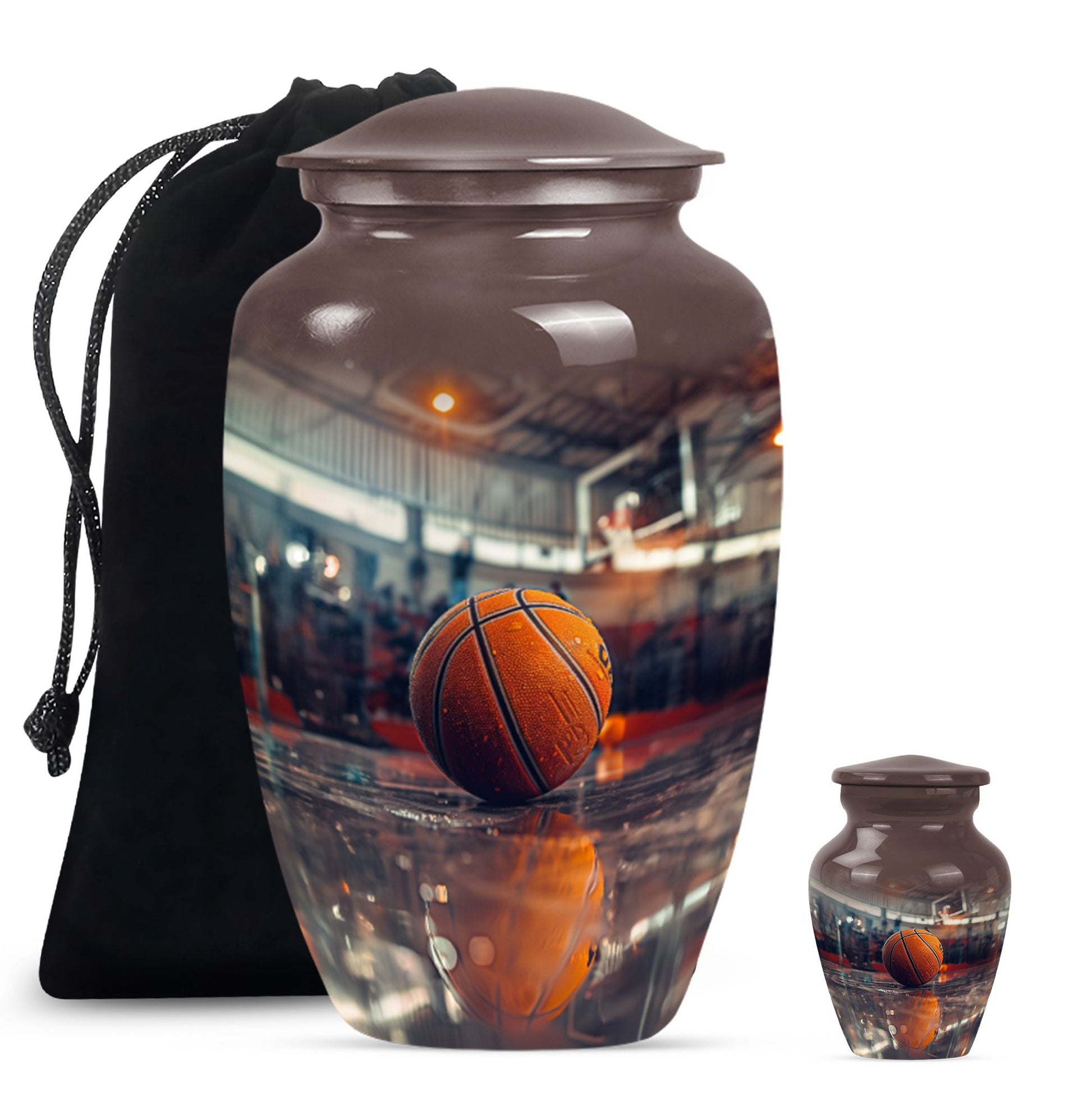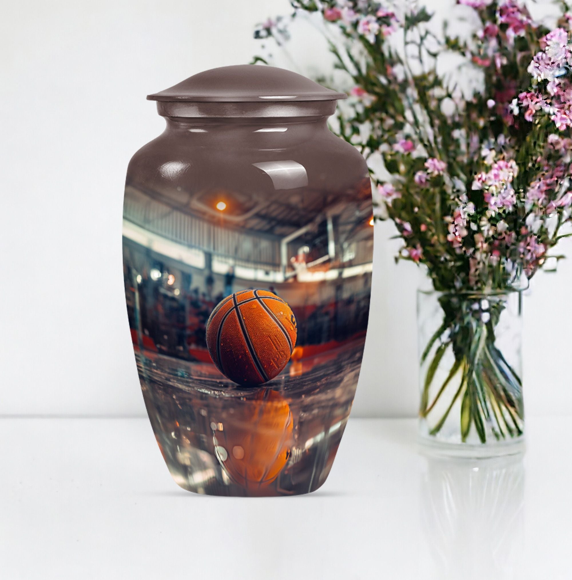 Positively cherish the memory of your loved one with our valued 10-inch basketball Aluminium Urn, an adroitly constructed funeral piece for mom or any cherished female in your life. Weighing just 3.3 pounds, this ornament offers comfortable positioning wherever selected. This cremation urn with its abstract theme echoes the uniqueness of individuality, reflecting a personality that was vibrant and unconfined. It possesses a capacity of 200 cubic inches, ample space designed for secure containment of ashes which can be housed neatly in the accompanying velvet pouch provided in the package. Its size and material signify durability and a timeless appreciation of your loved one's memory. For a more intimate touch, the option to personalize with engraved names is available. This large Aluminium urn is not merely an urn. It offers a unique way to remember and honor the impactful life led by your loved one. The product is found in the Memorial Ceremony Supplies category. Relive your fond memories with our classic urn today.