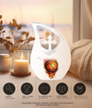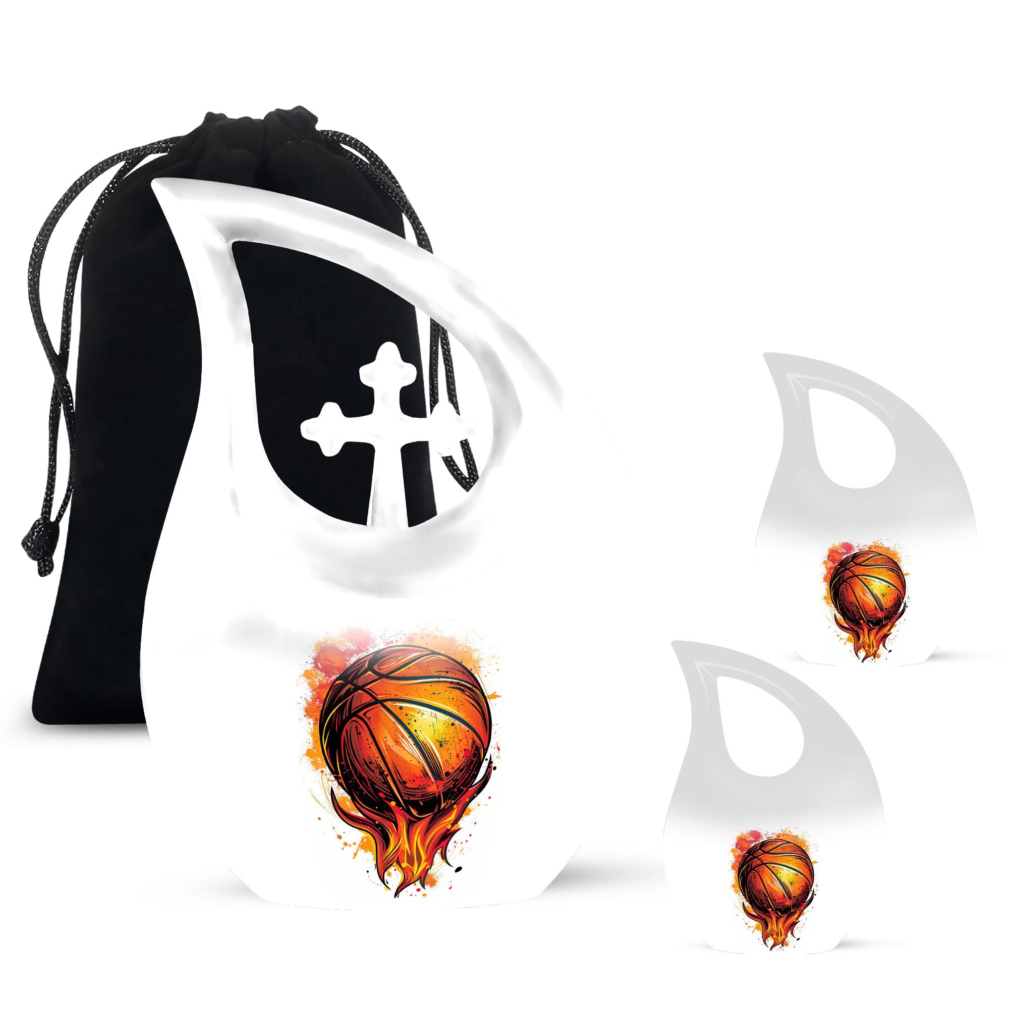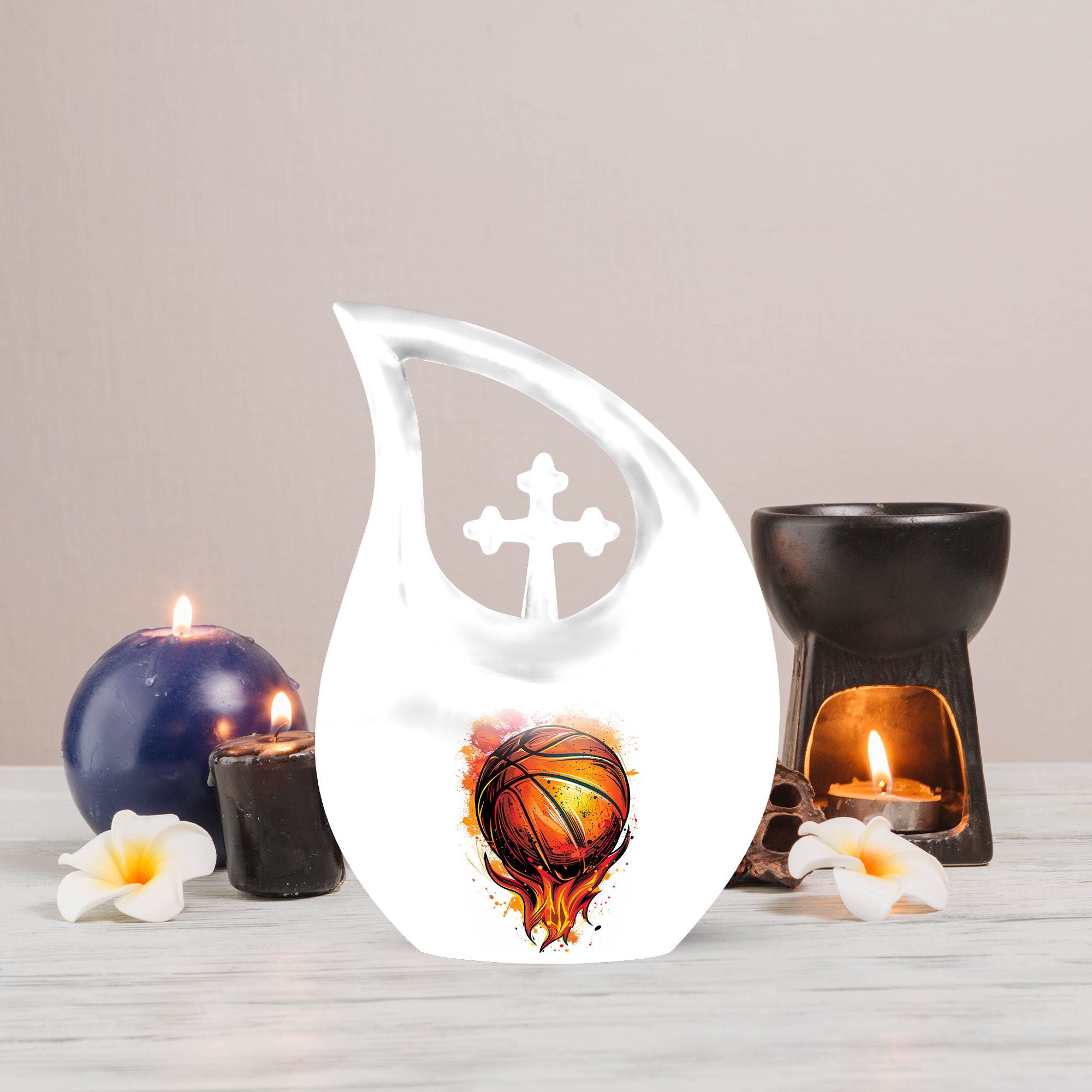Celebrate the love for the game and the cherished memories of your departed loved one with our 10-inch Basketball Urn. Crafted meticulously from robust aluminium, this unique urn is not just an ordinary memorial urn but a timeless tribute symbolizing their passion for sports. It displays a 'Cross Drop' emblem, symbolizing faith, strength, and peace. Weighing at a sturdy 3.3 pounds and with a capacity of 200 cubic inches, it assures to securely hold the ashes. Each purchase comes with a velvet pouch, providing an elegant containment for the ashes. To add a personal touch, we offer the liberty to engrave names, making it a truly special tribute. As Large Urns that embody love and respect, these Cremation Boxes for adults serve as both, a sacred Cremation Container and a beautiful piece of decor. With its Basketball theme, it makes for an ideal choice as Funeral Urns for adults, especially for sports enthusiasts. Keywords: Basketball Urn, Unique Urns for Dad, Cremation Boxes for Adults, Cremation Containers, Large Urns for Ashes, Funeral Urns for Adults.