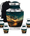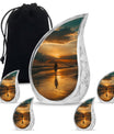 The Sunrise Beach Memorial Urn embodies love, peace, and eternal remembrance, making it a fitting choice for families seeking tiny urns for women & men or full-sized memorials for adults.