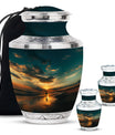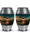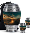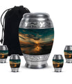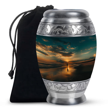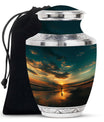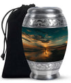 Crafted from high-quality aluminium, this urn features a warm sunrise-inspired beach design, symbolizing hope and renewal. Its versatile design suits mens urns for human ashes, funeral urns men, and funeral urns women, while also serving as a beautiful cremation urn women or cremation urn men. The secure screw-top lid ensures ashes remain protected, making it a practical and meaningful choice for memorials at home or burial. Families searching for cremation urns women or a reliable burial urn men will find this piece a comforting tribute.