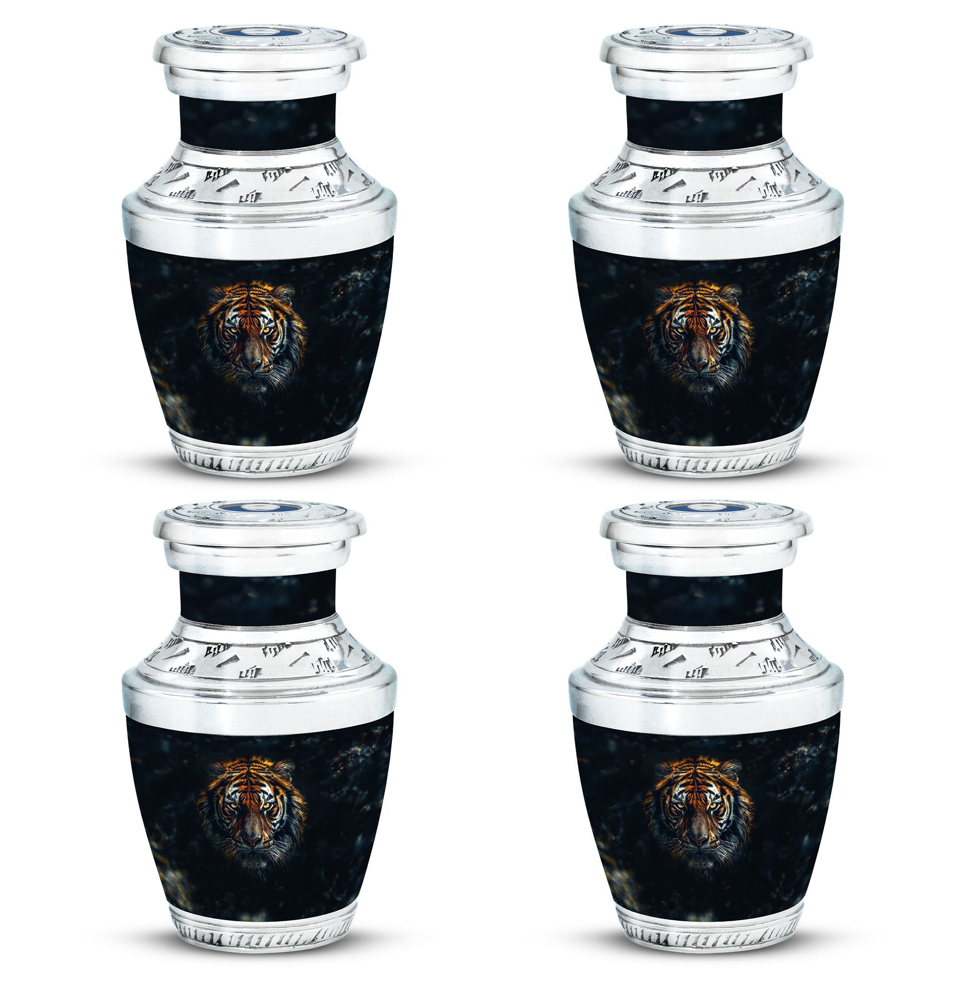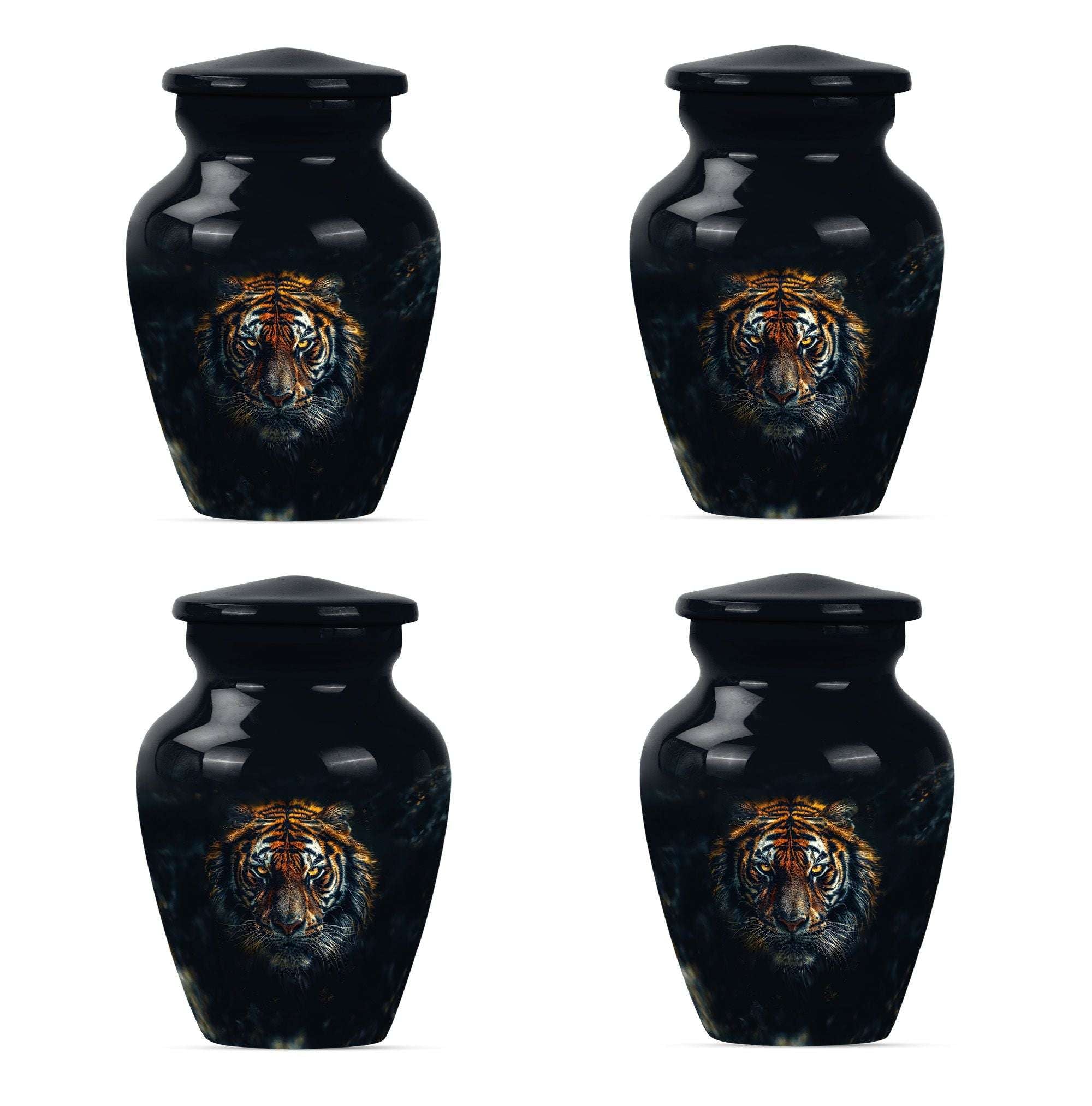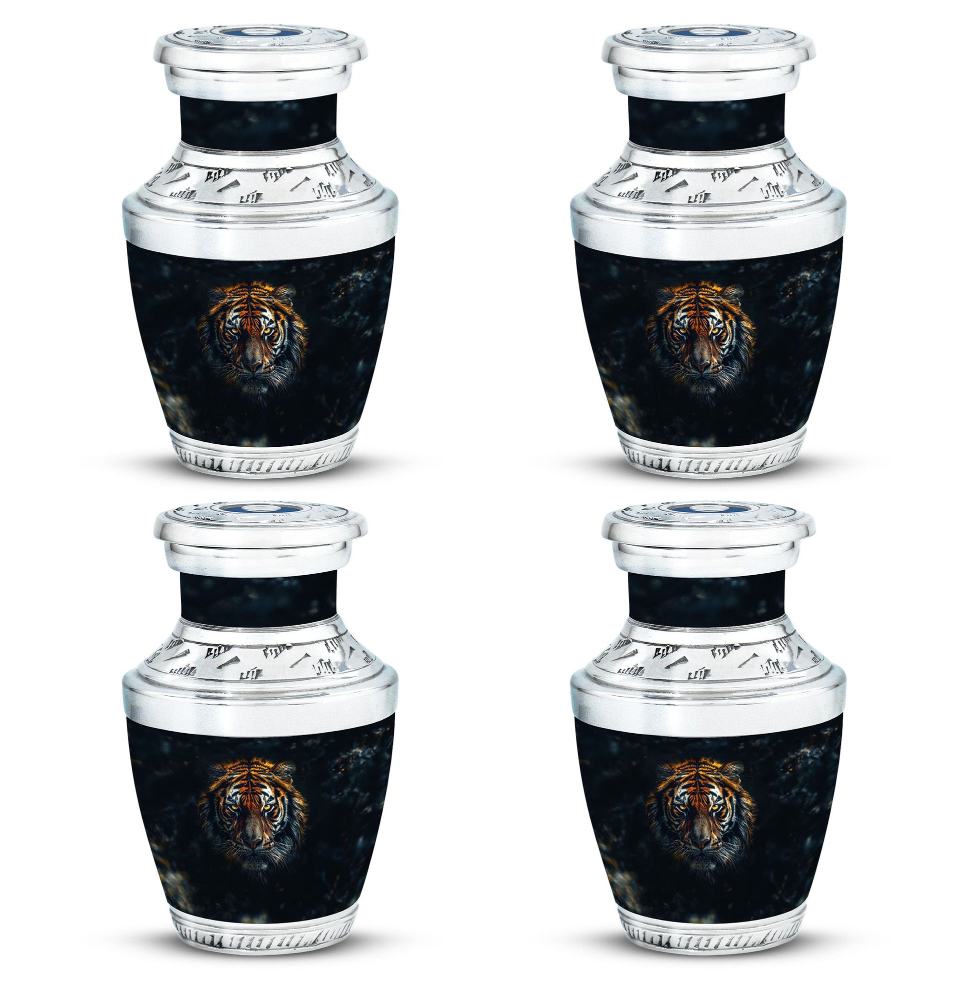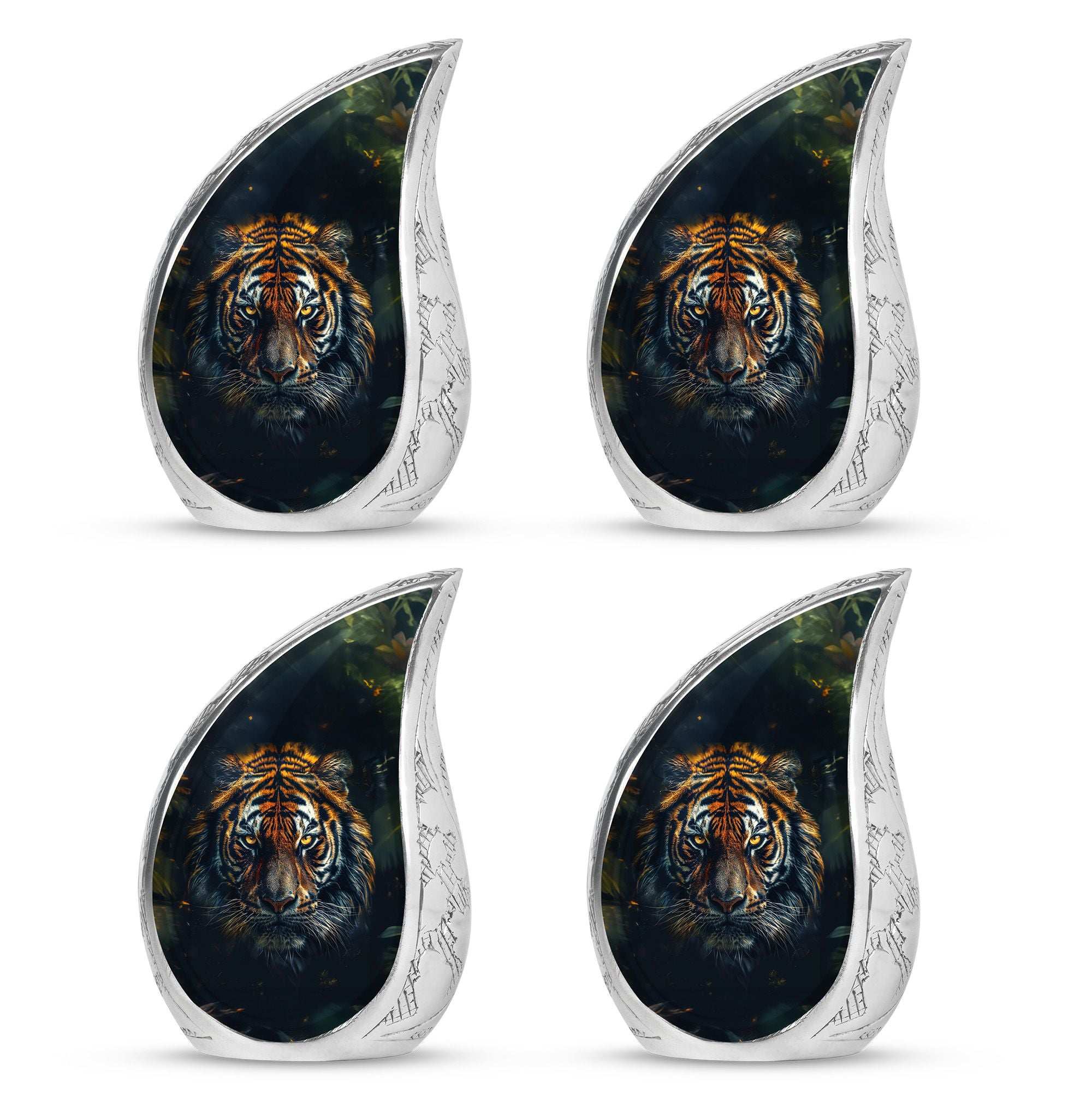 Crafted from durable aluminum, this urn features a secure screw-top lid to safeguard ashes with peace of mind. The striking tiger design makes it a unique option among funeral urns for adult ashes, blending artistry with symbolic meaning. It is versatile, suitable for use as a funeral decor urn – memorial urn, or as a centerpiece in the home. Families can also pair this piece with cremation urns large & small combo sets for shared remembrance.
