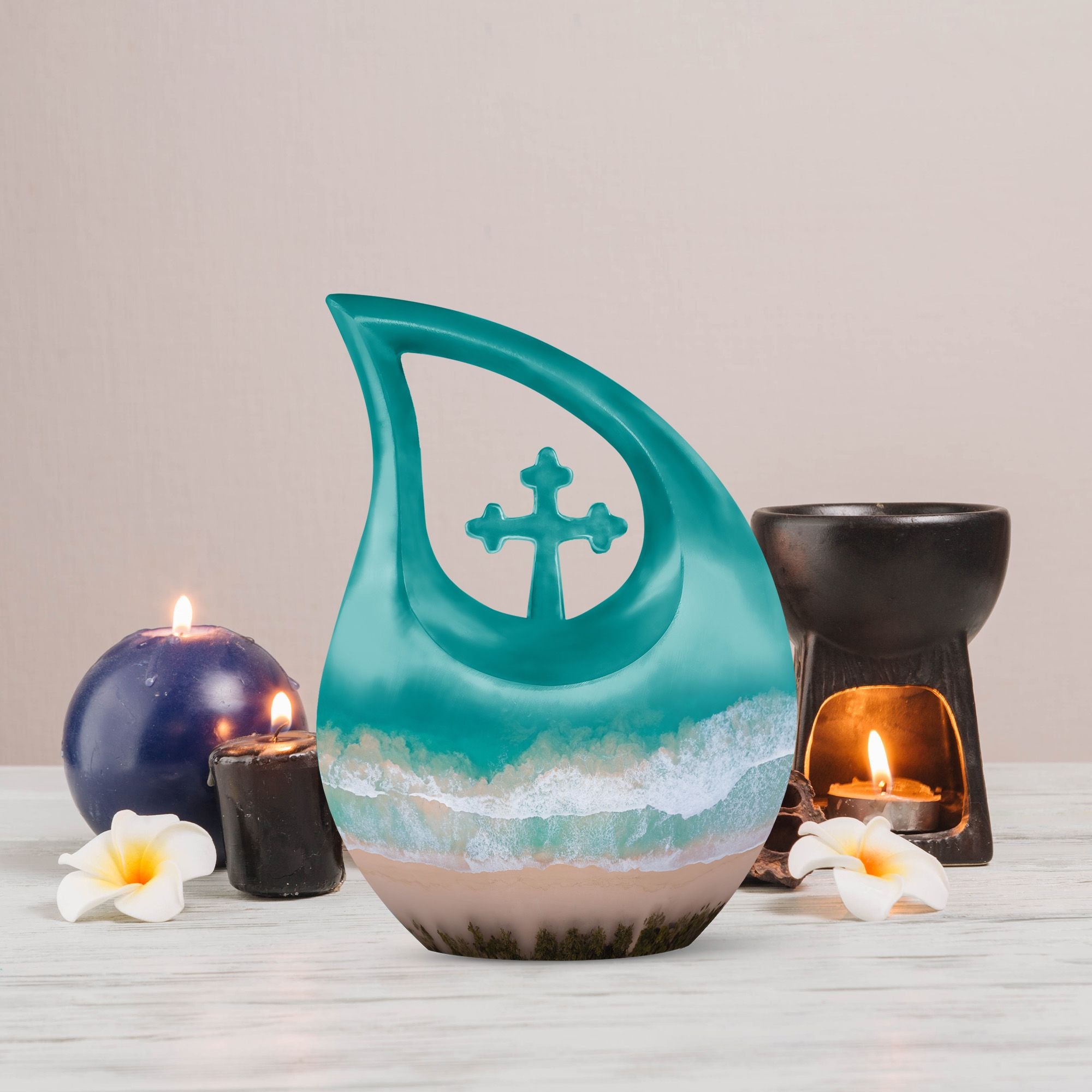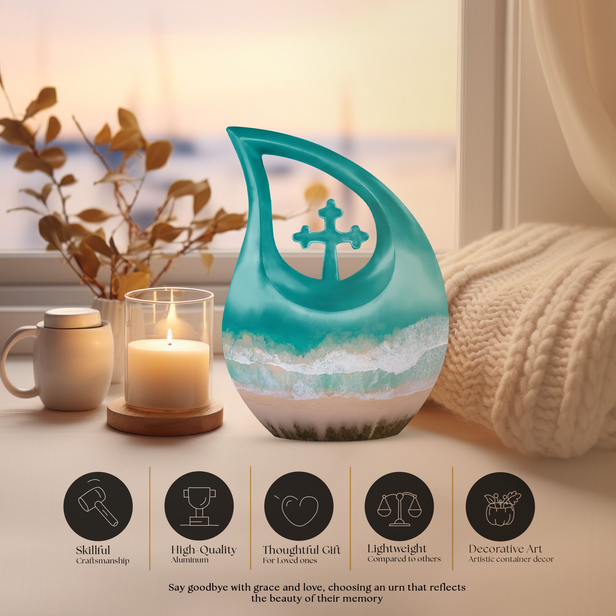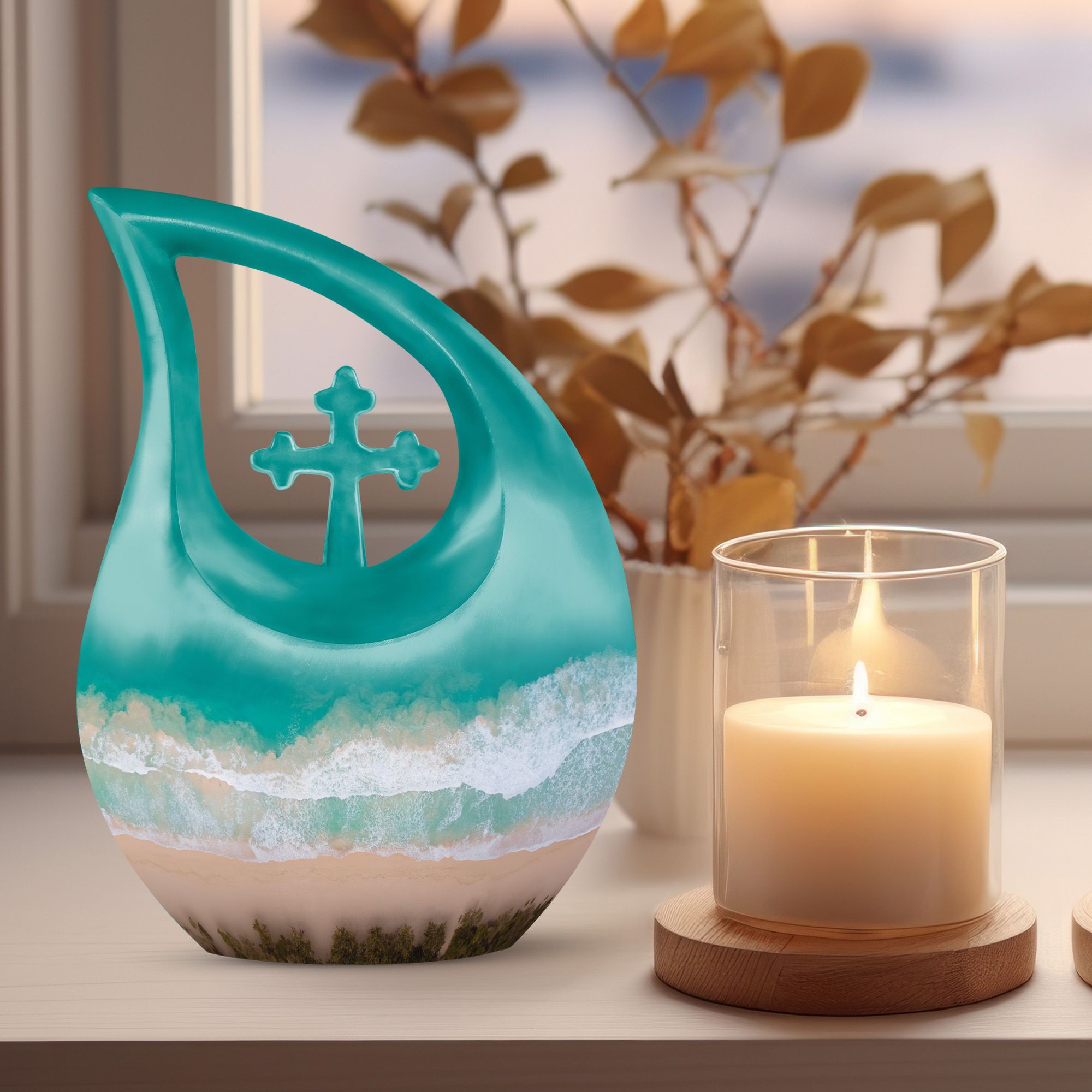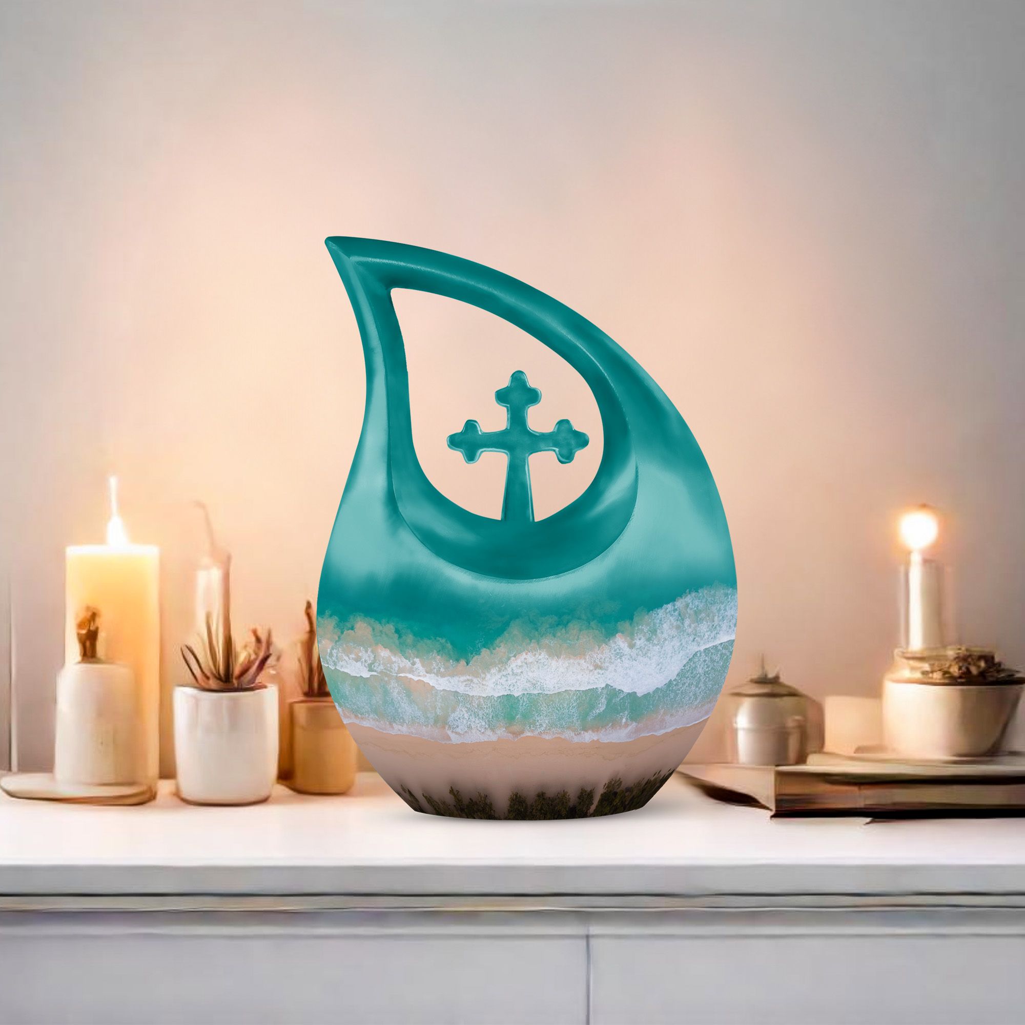 This memorial piece also works beautifully with an urn keepsake human ashes or urn keepsake for human ashes, allowing family members to keep a personal portion of their loved one near. Its soothing seaside artistry creates a heartfelt tribute filled with comfort and remembrance.