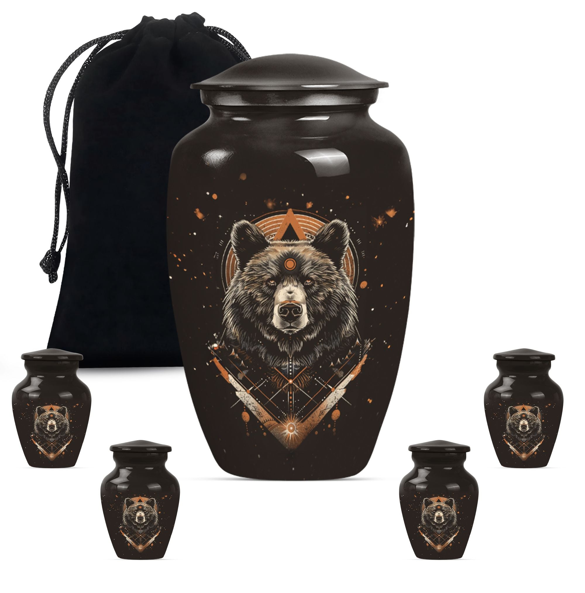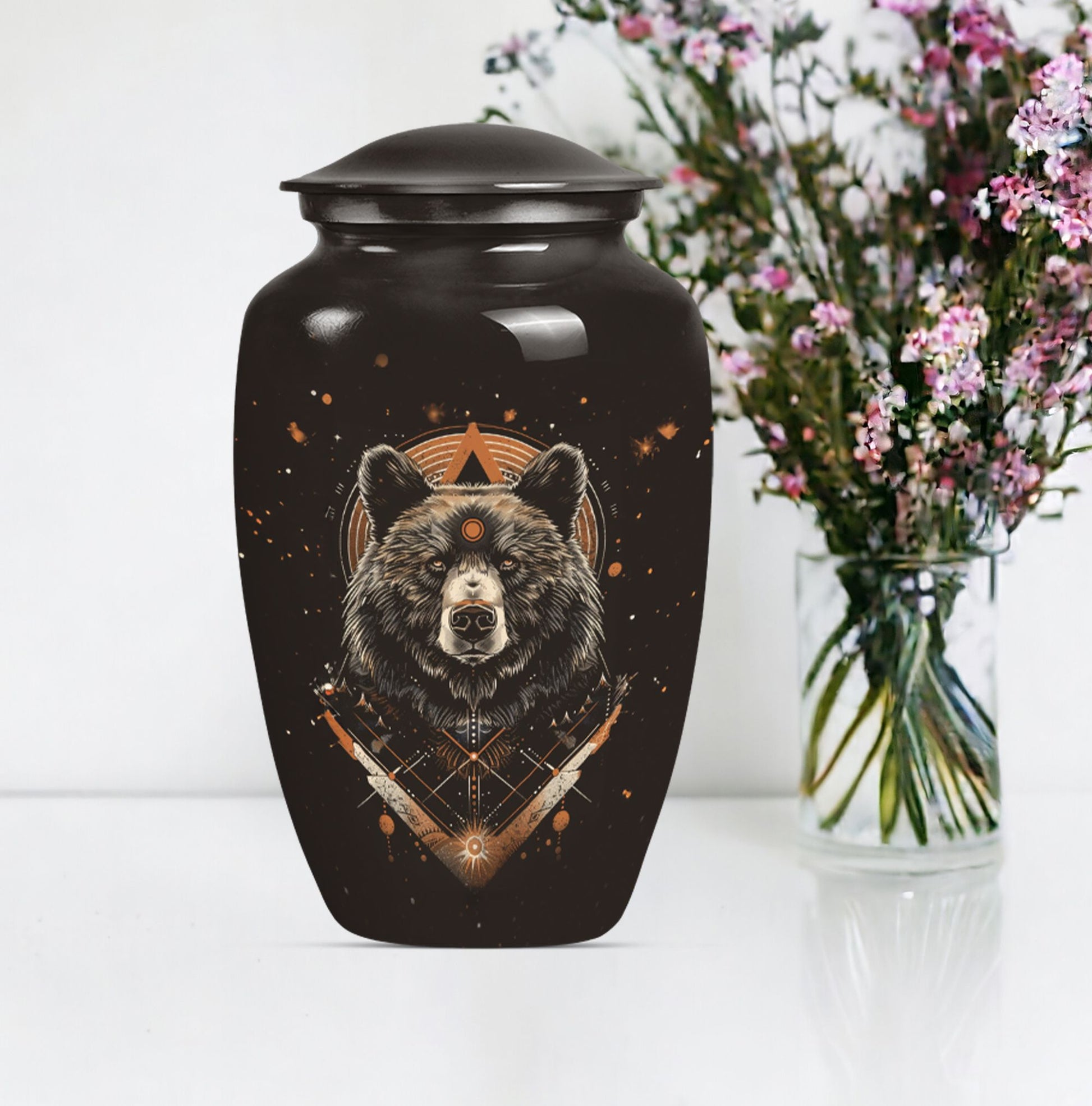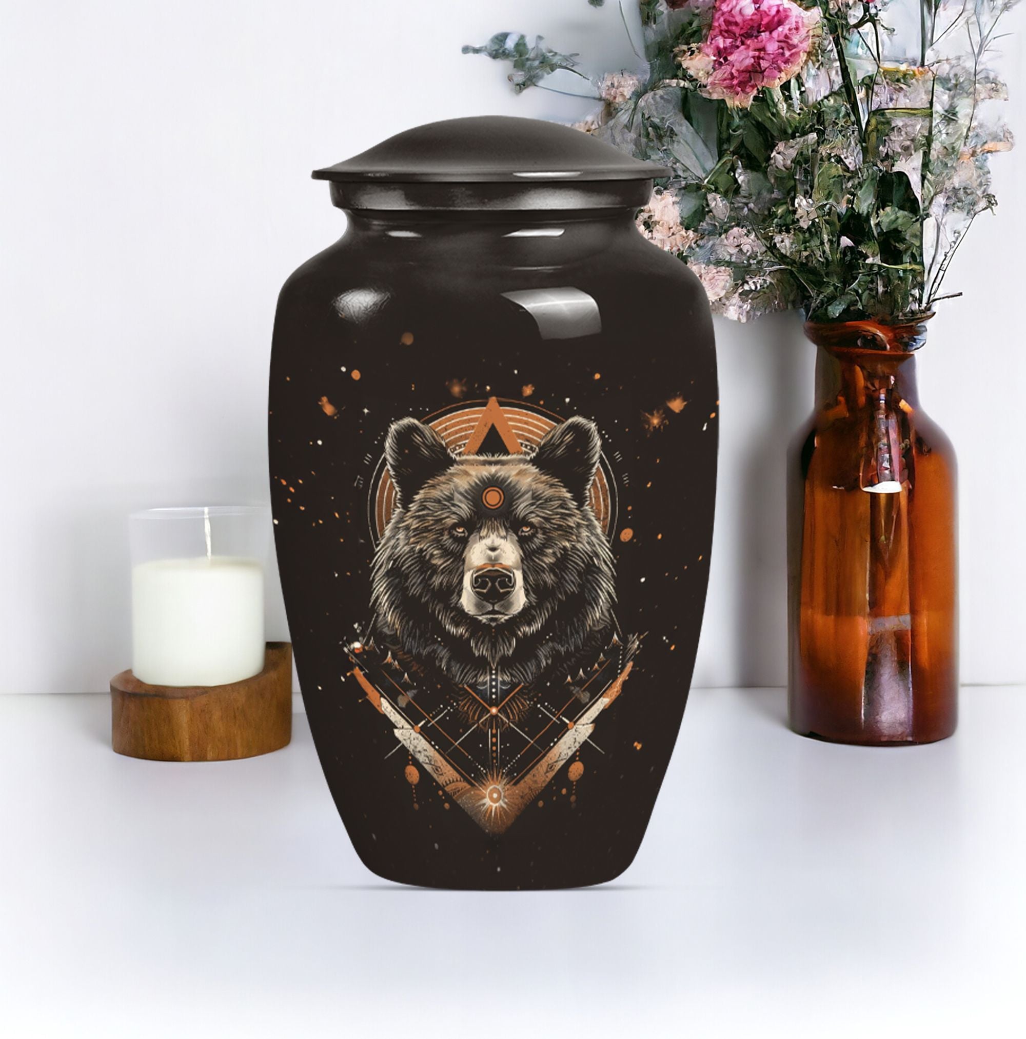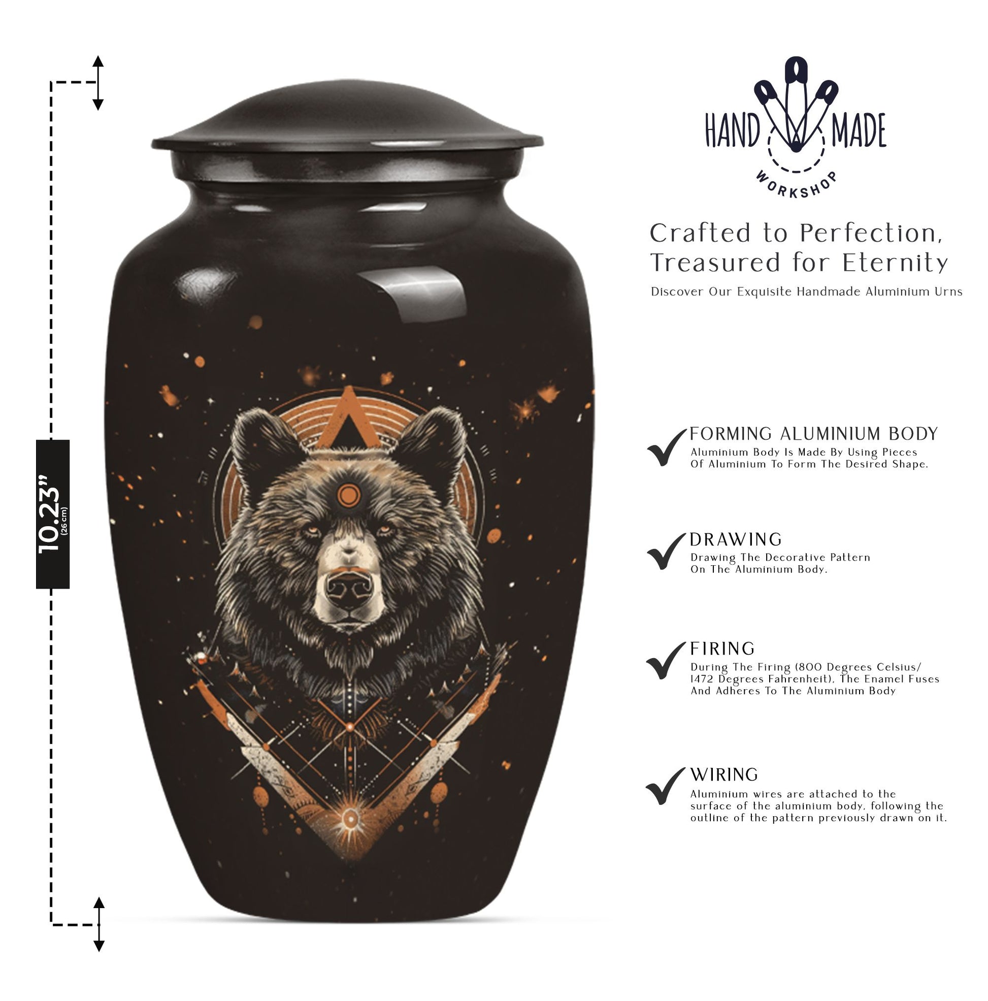 Deeply immersed in a theme of gentle rebirth, this 10-inch Butterfly Themed Bear Urn seeks to bring comfort in your times of loss. Skillfully crafted in high-grade Aluminium, this large urn has the innate toughness and refined look that makes it perfect for both home memorials or while you're on the go. With dimensions of 10 inches in height and a sturdy weight of 3.3 pounds, it ensures a practical capacity of 200 cubic inches, ample space for adult male ashes. It features a customization option you can use to personalize with engraved names, making it more personal and equally befitting as a female urn. The product also comes with a velvet pouch for containment of ashes, ensuring the utmost respect for the loved one's remains. So whether you need a metal mandir for your home or a portable urn for travels, this cremation urn brings you peace and reliability. Constitutes an exceptional choice among memorial urns, this large bear urn beautifully encapsulates memories and pays tribute to well-lived lives.
