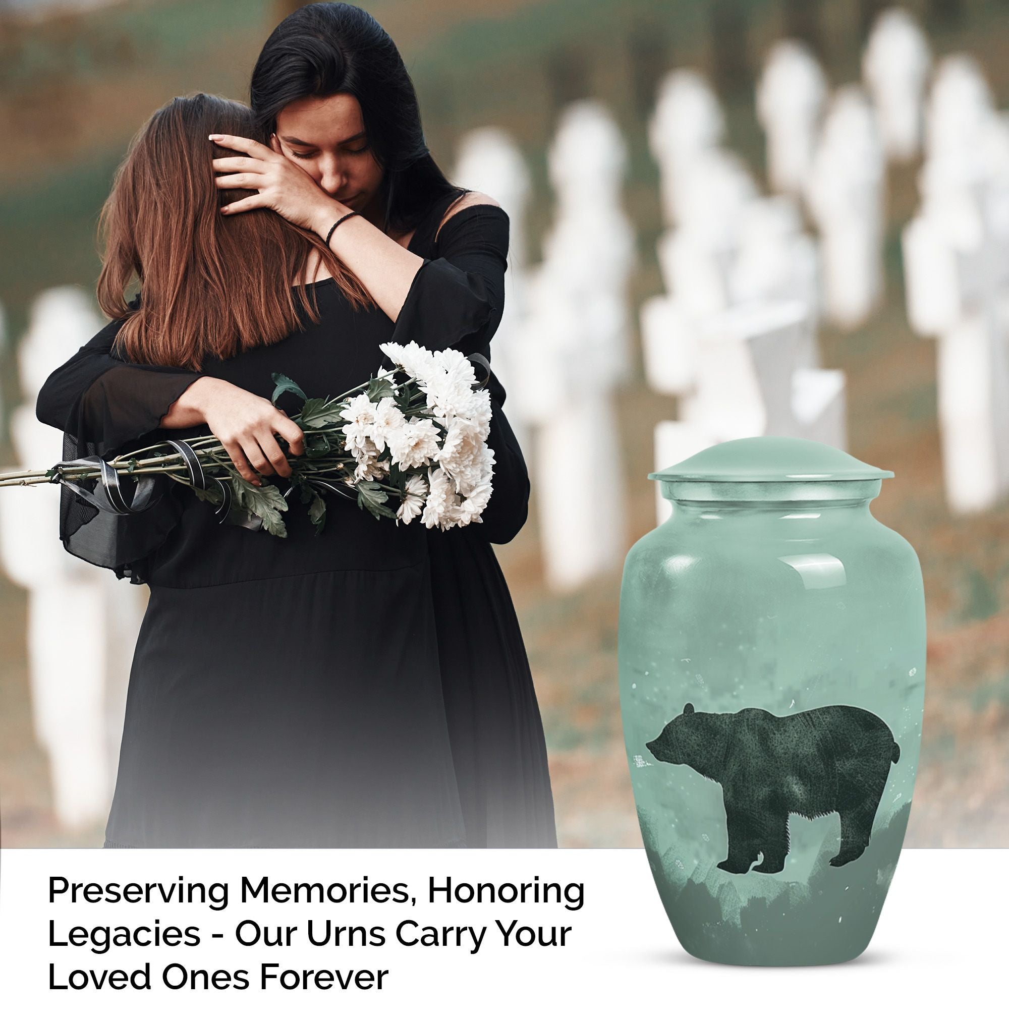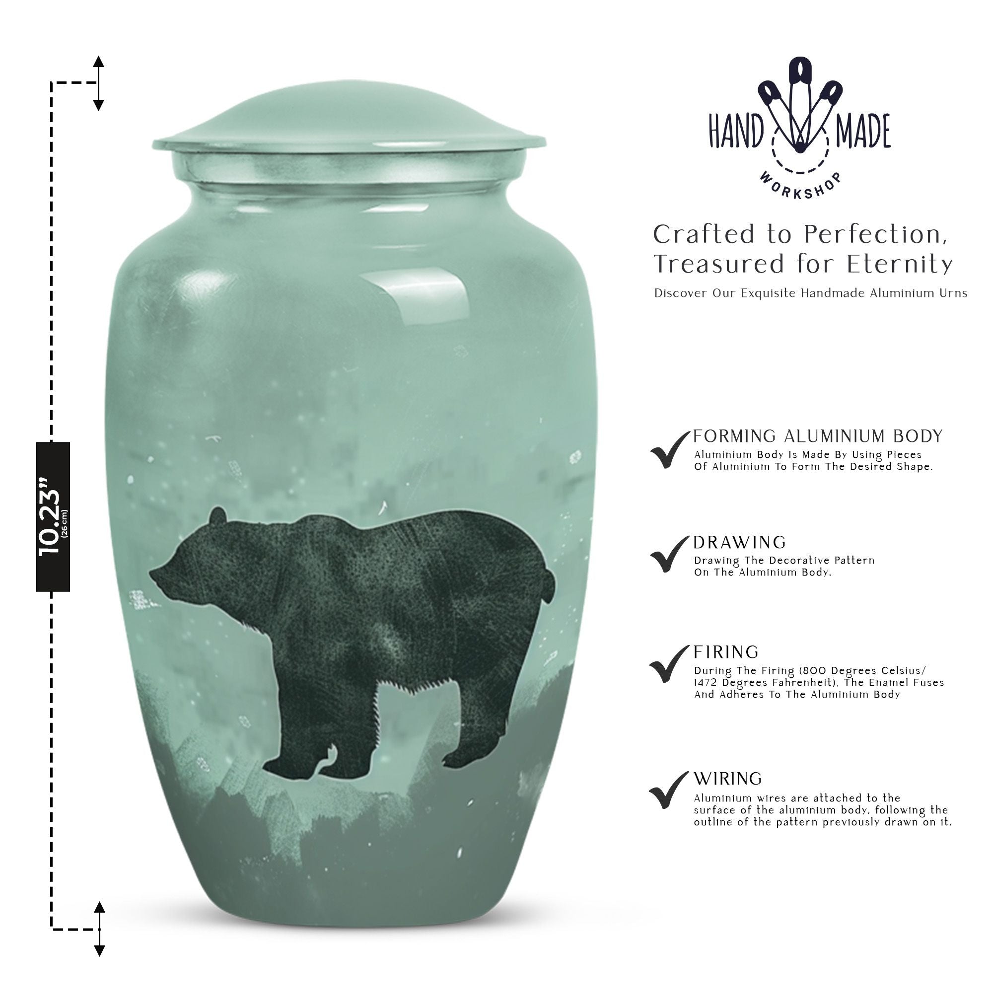 Introducing a heartfelt symbol of remembrance - our high-quality, aluminium-made Classic Urn, thoughtfully designed to hold and honor the ashes of a loved one. Having a substantial size of 10 inch, this memorial funeral urn is capacious, embodying a large capacity of 200 cubic inches. Adept for adults and seniors, the 'bear urn' is robust in weight, measuring 3.3 pounds, and symbolizes durability. Taking craftsmanship a notch higher, our urn also offers a personal touch, allowing you to immortalize memories with the option of customization; engrave names and create a truly unique tribute. Each urn comes with a velvet pouch for safe containment of ashes, ensuring their sacred preservation. The abstract themed accent brings about an element of serenity, complementing the exquisite design with an added charm. Being a prominent choice under the 'Large Urns' category, it answers to various searches like 'funeral urns for burial', 'human ash urns', and 'urns for human ashes', making it the perfect product in your quest for 'memorial urns'. The mom cremation urn is not just a keepsake but a heartfelt dedication to the departed soul. Honor the memories of your loved ones in the most dignified way with our Classic Urn.