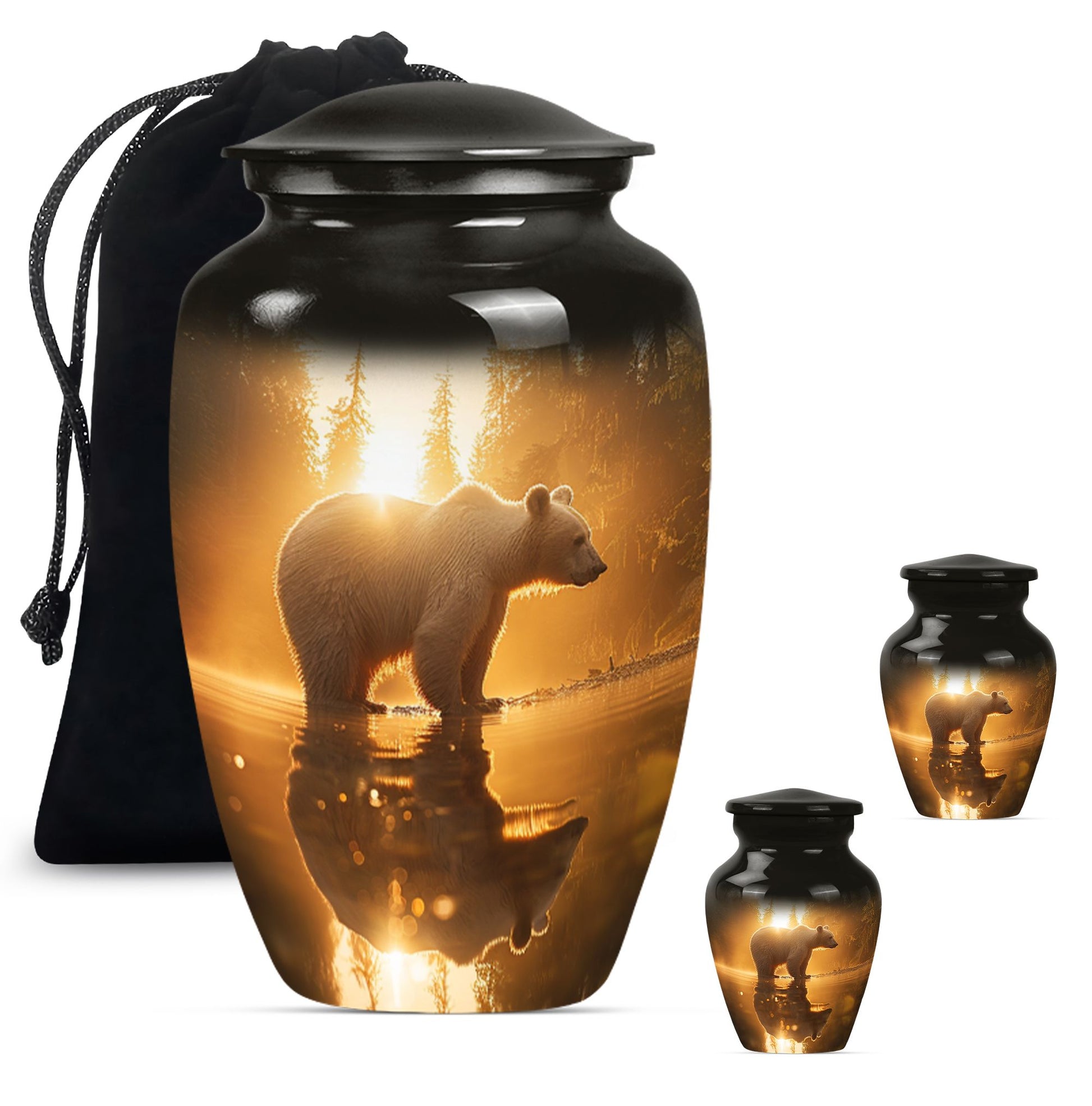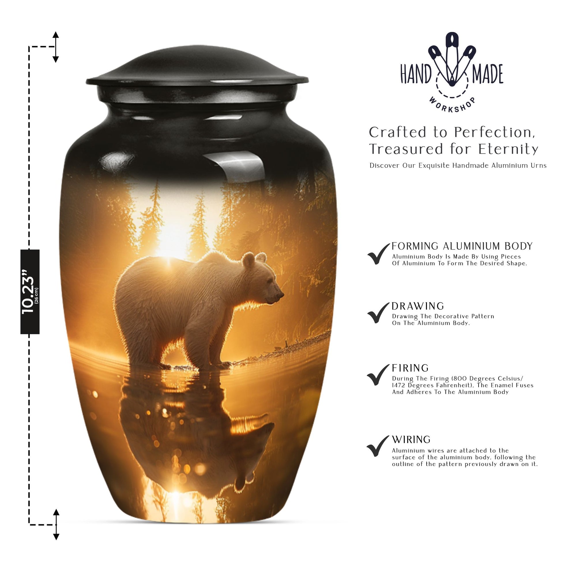 Provide a comforting homage to your dearly departed with our bear urn, a loving receptacle for cremated remains. Precisely 10 inches in height, this funeral urn can contain up to 200 cubic inches of ashes, making it suitable for adult human ashes. Crafted to perfection, this sturdy and lightweight urn weighs just 3.3 pounds. The aluminium construction ensures robustness and durability, adding a timeless quality to this cherished keepsake. The urn also presents the option for personal engravings, allowing you to inscribe loved ones' names, making it an even more special and personalized tribute. The package also includes a velvet pouch, providing a dignified containment for the ashes. The butterfly theme adds a layer of hope and revival, comforting the bereaved with thoughts of life's cyclical nature. This urn is an excellent choice for those seeking inventive modern urns for human ashes. Celebrate the eternal bond with your loved ones with this classic, large urn, embodying the highest standards of refinement and warmth.