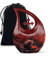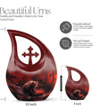 This urn is also available as a 10 inch urn paired with large and keepsake options, allowing families to share ashes among loved ones through beautifully coordinated keepsake urns. These smaller pieces offer intimate remembrance while the main urn holds the full 200-cubic-inch capacity.