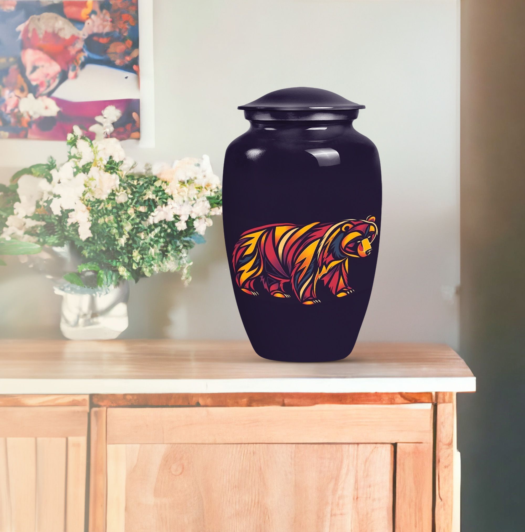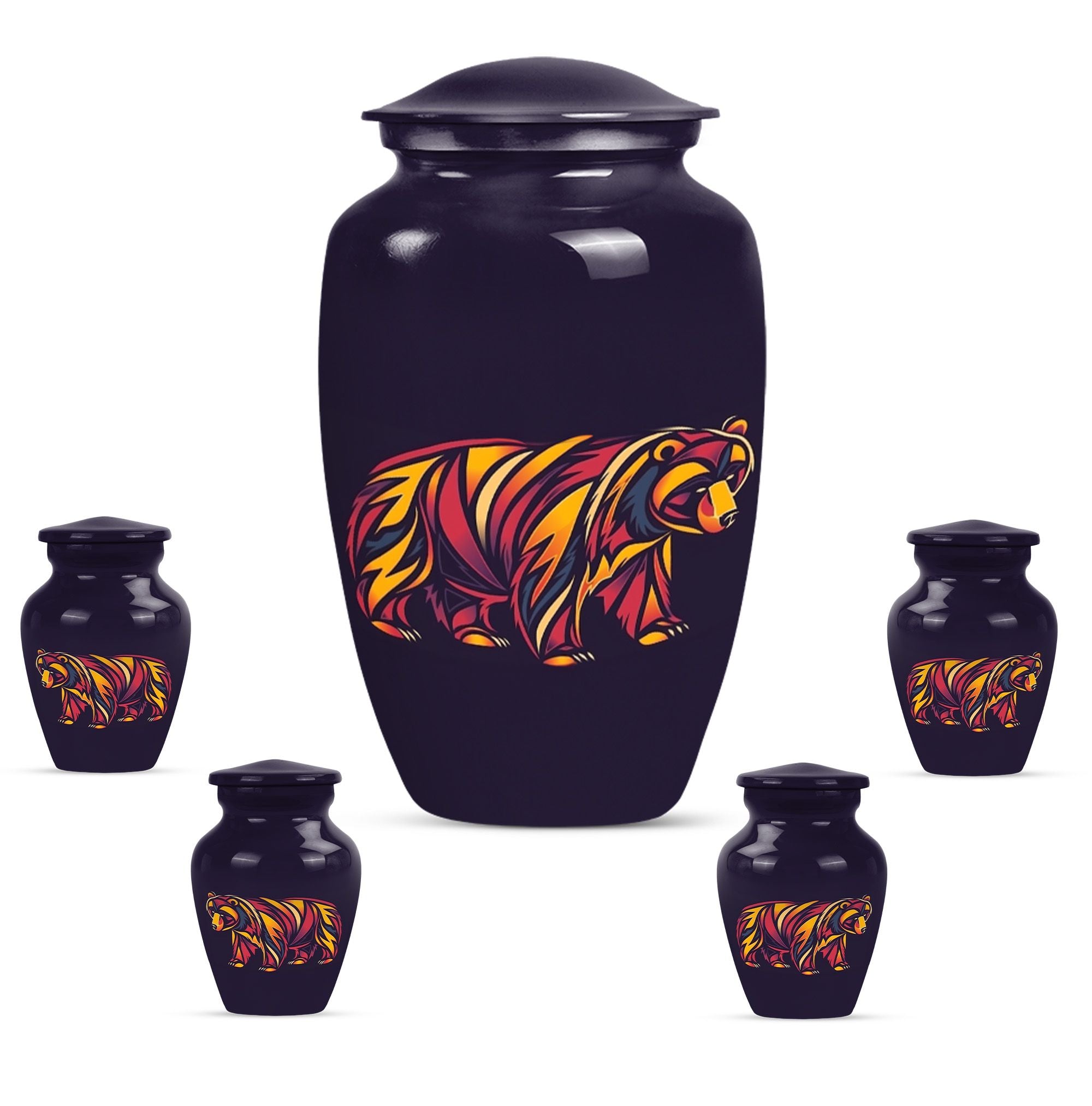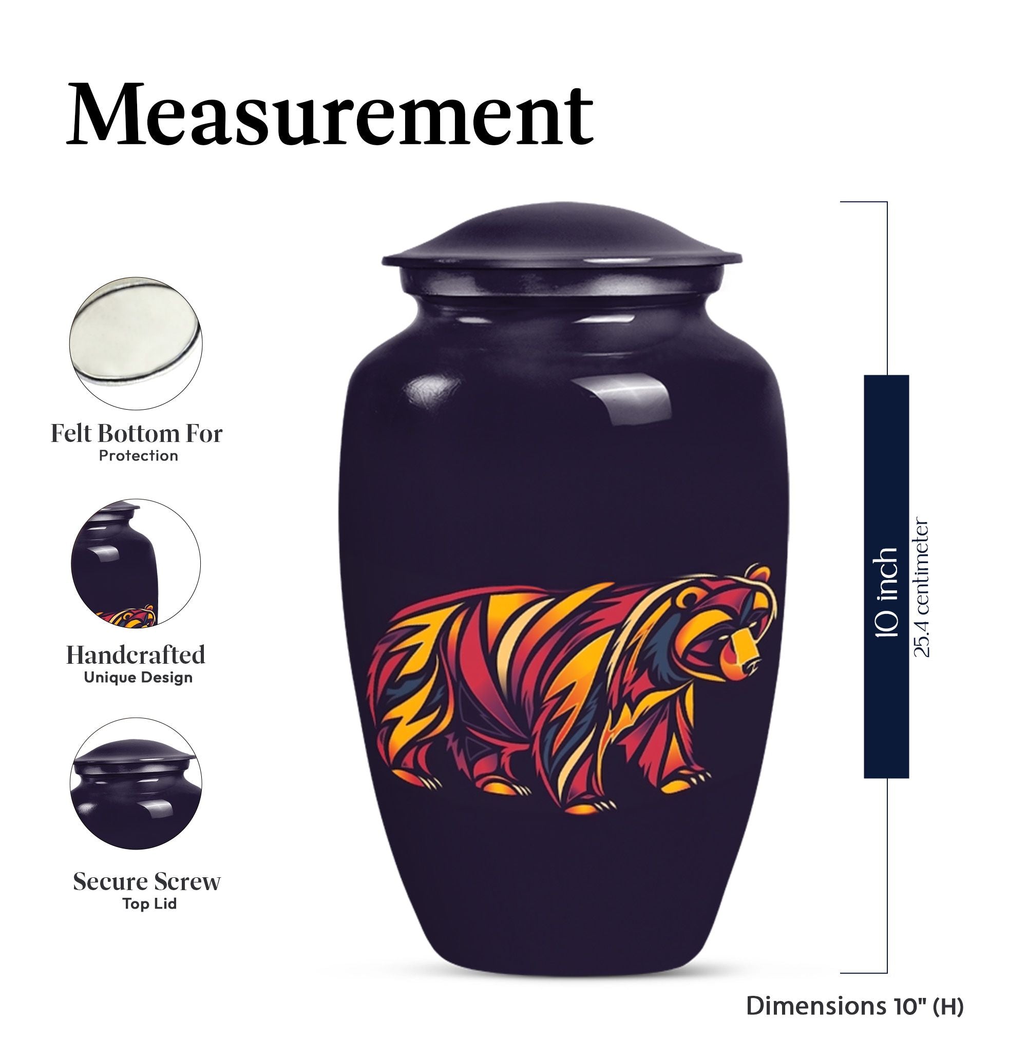 Our 10-Inch Classic Bear Urn is a dignified, yet comforting option to celebrate the memory of a loved one. Crafted meticulously from high-grade aluminium, this urn weighs 3.3 pounds and features an abstract theme, making it an elegant addition to any memorial display. Its large size allows for a generous capacity of 200 cubic inches, making it suitable for storing adult human ashes. The urn is shipped with a velvet pouch included, providing a respectful containment for the ashes. Offering an added personal touch, this burial urn also allows for engraved names, adding an element of connectedness with the departed. This timeless funeral urn is an exquisite choice for human ashes and is consistently top-rated for its class and quality. Enhance your memorial ceremony with our Bear Urn—blending meaningful symbolism with exceptional durability and design.