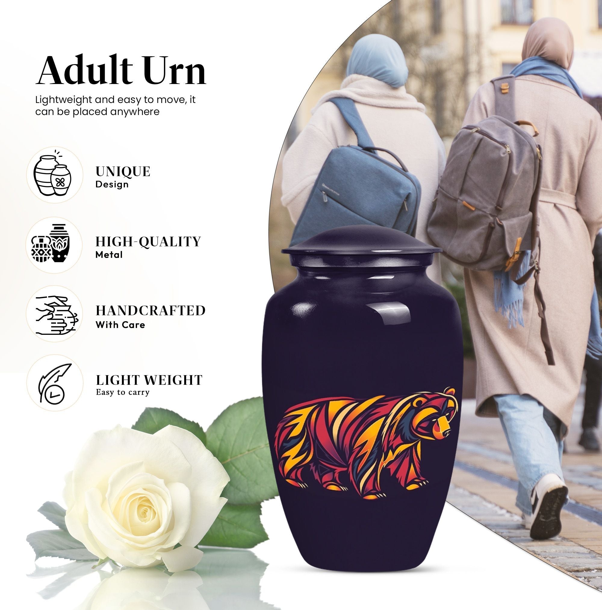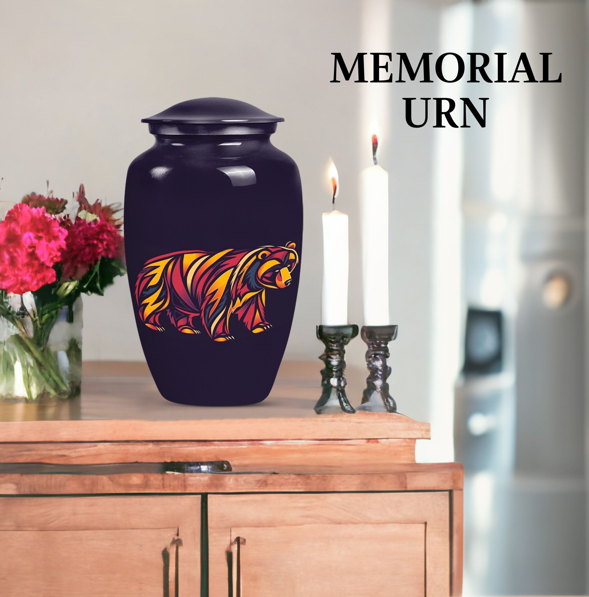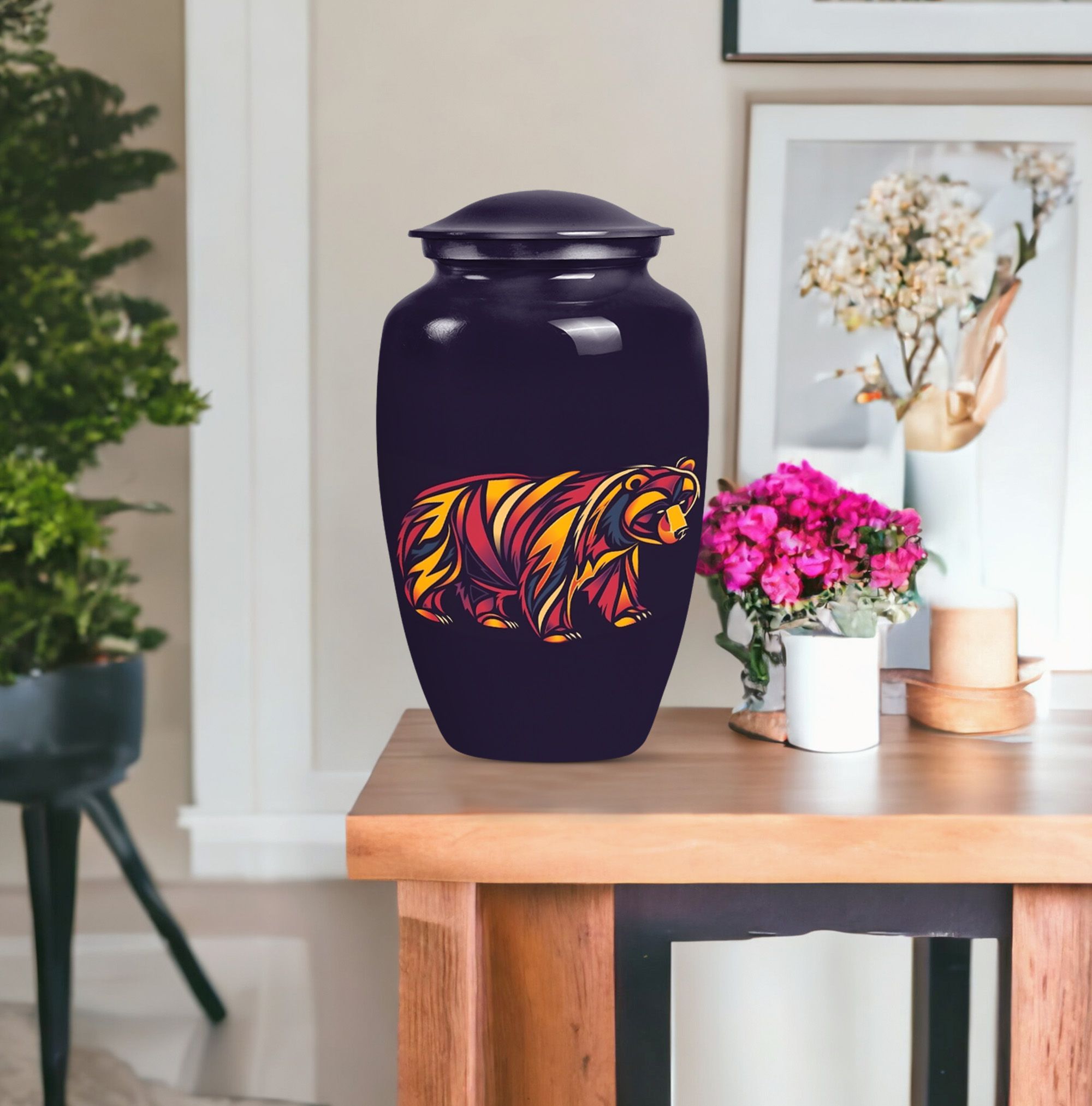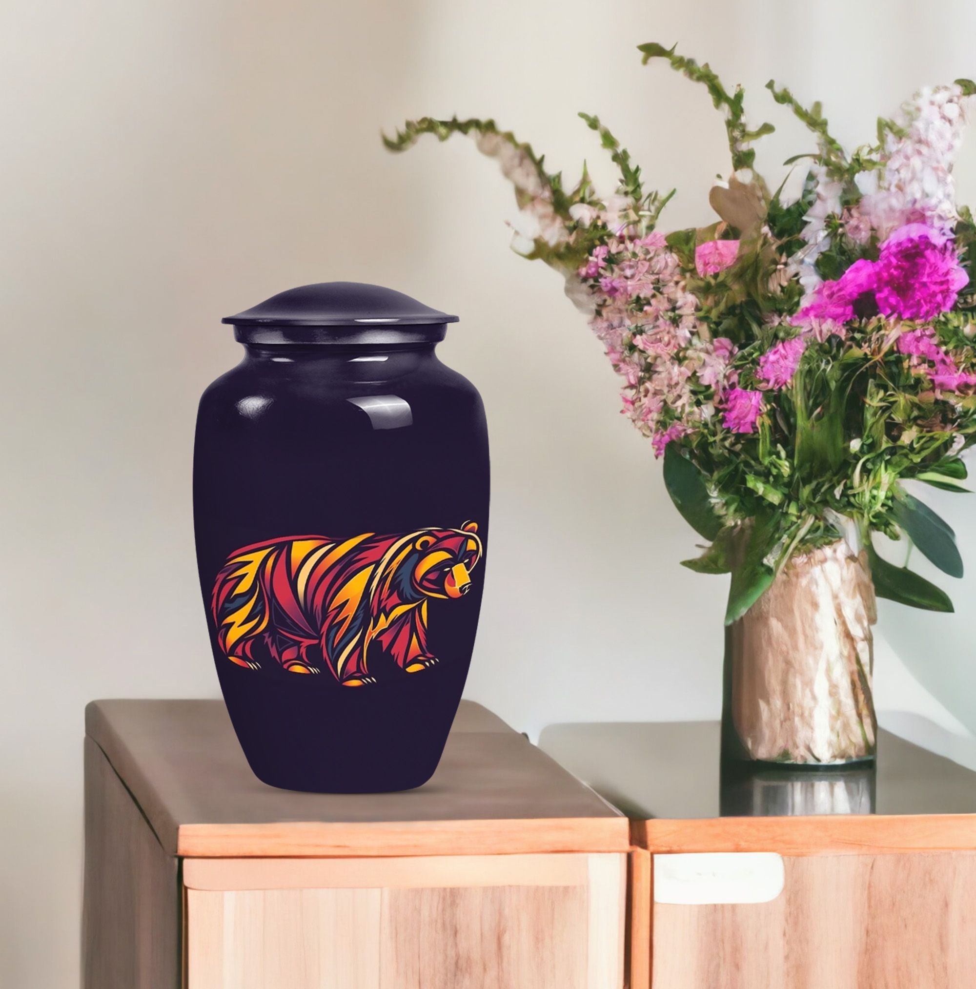 Our 10-Inch Classic Bear Urn is a dignified, yet comforting option to celebrate the memory of a loved one. Crafted meticulously from high-grade aluminium, this urn weighs 3.3 pounds and features an abstract theme, making it an elegant addition to any memorial display. Its large size allows for a generous capacity of 200 cubic inches, making it suitable for storing adult human ashes. The urn is shipped with a velvet pouch included, providing a respectful containment for the ashes. Offering an added personal touch, this burial urn also allows for engraved names, adding an element of connectedness with the departed. This timeless funeral urn is an exquisite choice for human ashes and is consistently top-rated for its class and quality. Enhance your memorial ceremony with our Bear Urn—blending meaningful symbolism with exceptional durability and design.