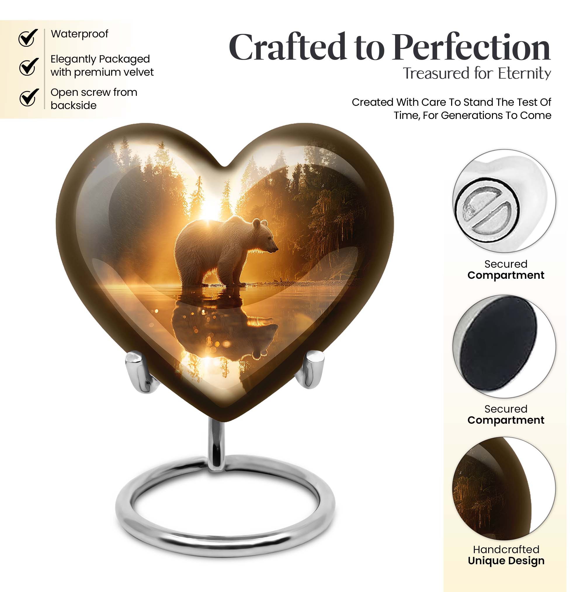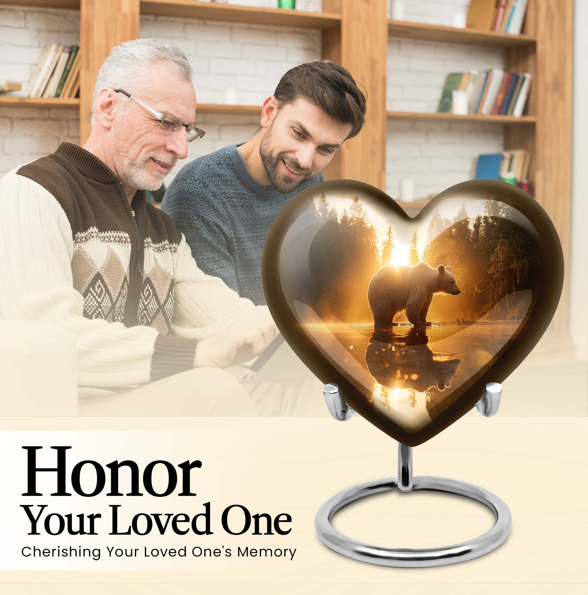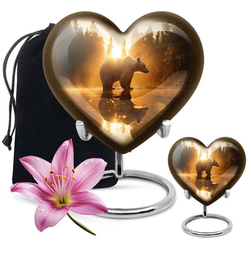 Cherish the memory of a loved one with our exquisitely crafted Bear Urn. An innovate and modern solution for cremation ashes, this 10-inch urn, fashioned from durable aluminium, weighs 3.3 pounds and presents a sophisticated resting place for an adult man. The sleek, heart-shaped urn design celebrates love and togetherness while the beautiful butterfly theme adds a gentle touch of nature. Able to hold up to 200 cubic inches of ashes, this large urn serves as a fitting tribute to their spirit. For a more personal touch, there is an offer to engrave names on the urn. Encased in a velvet pouch provided with the package, this funeral urn subtly blends the traditional and contemporary. A perfect choice for those searching for 'memorial urns' or 'metal urns for adult human ashes', it resonates with the sentiments of remembrance and respect.
