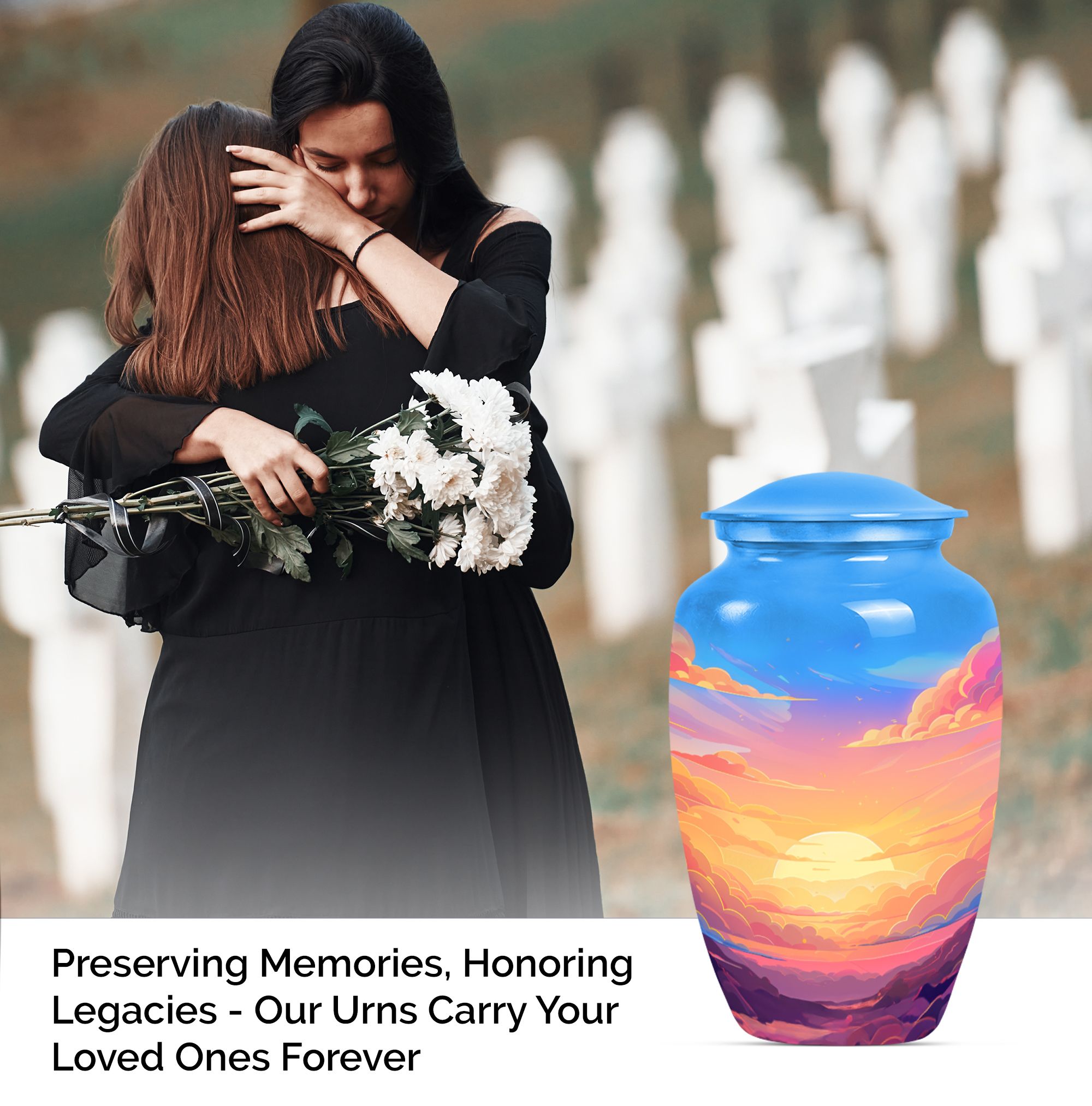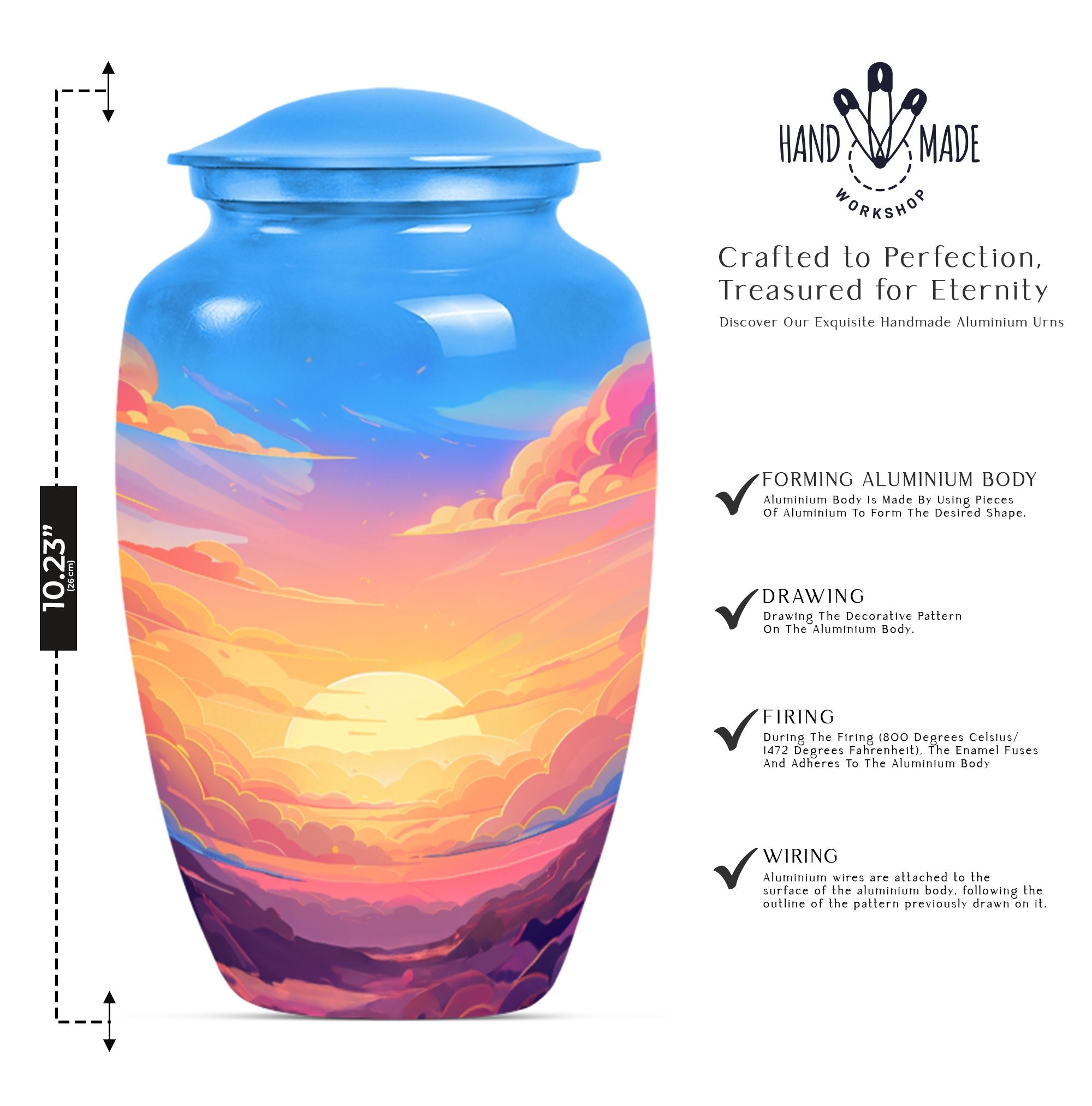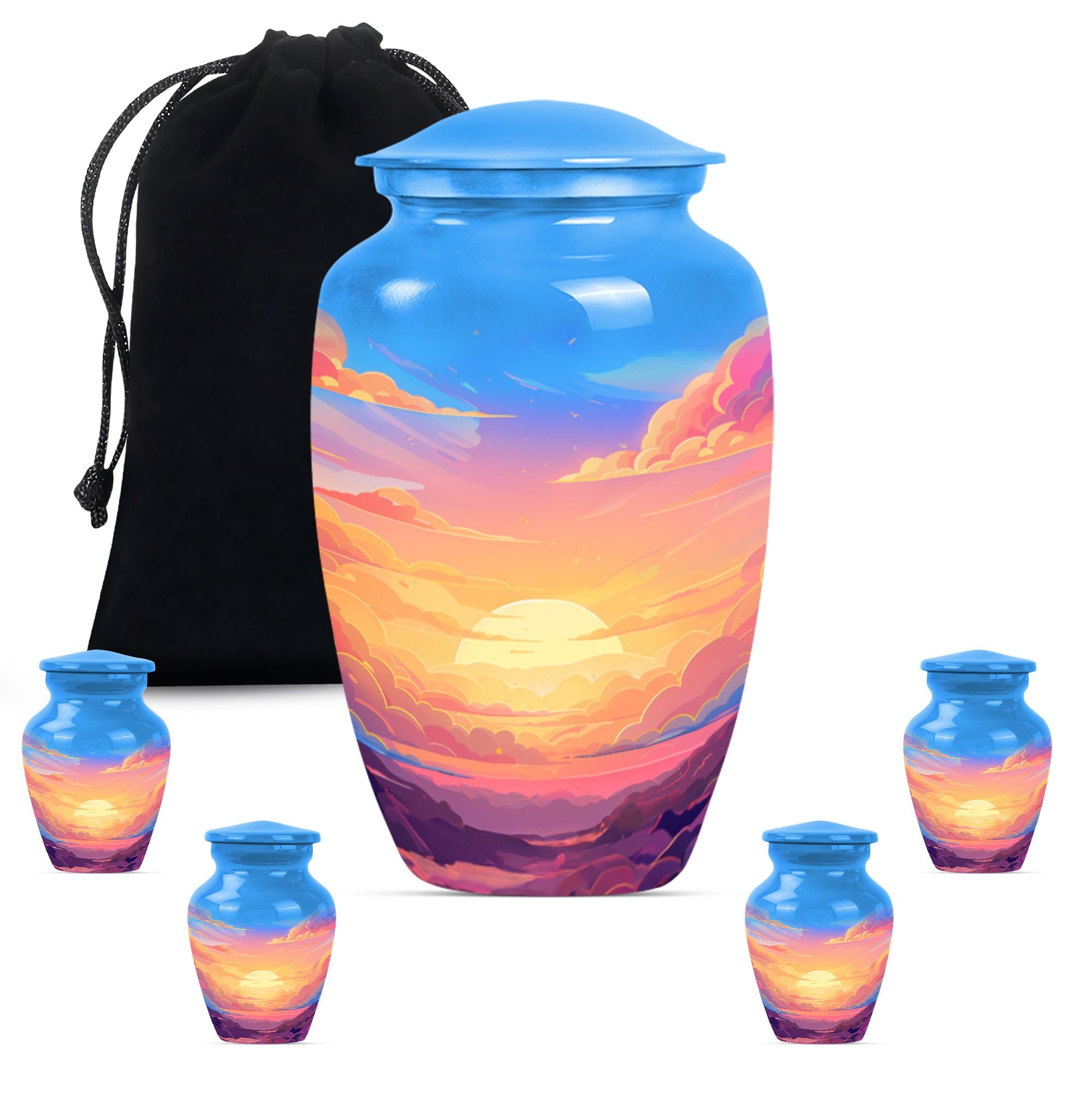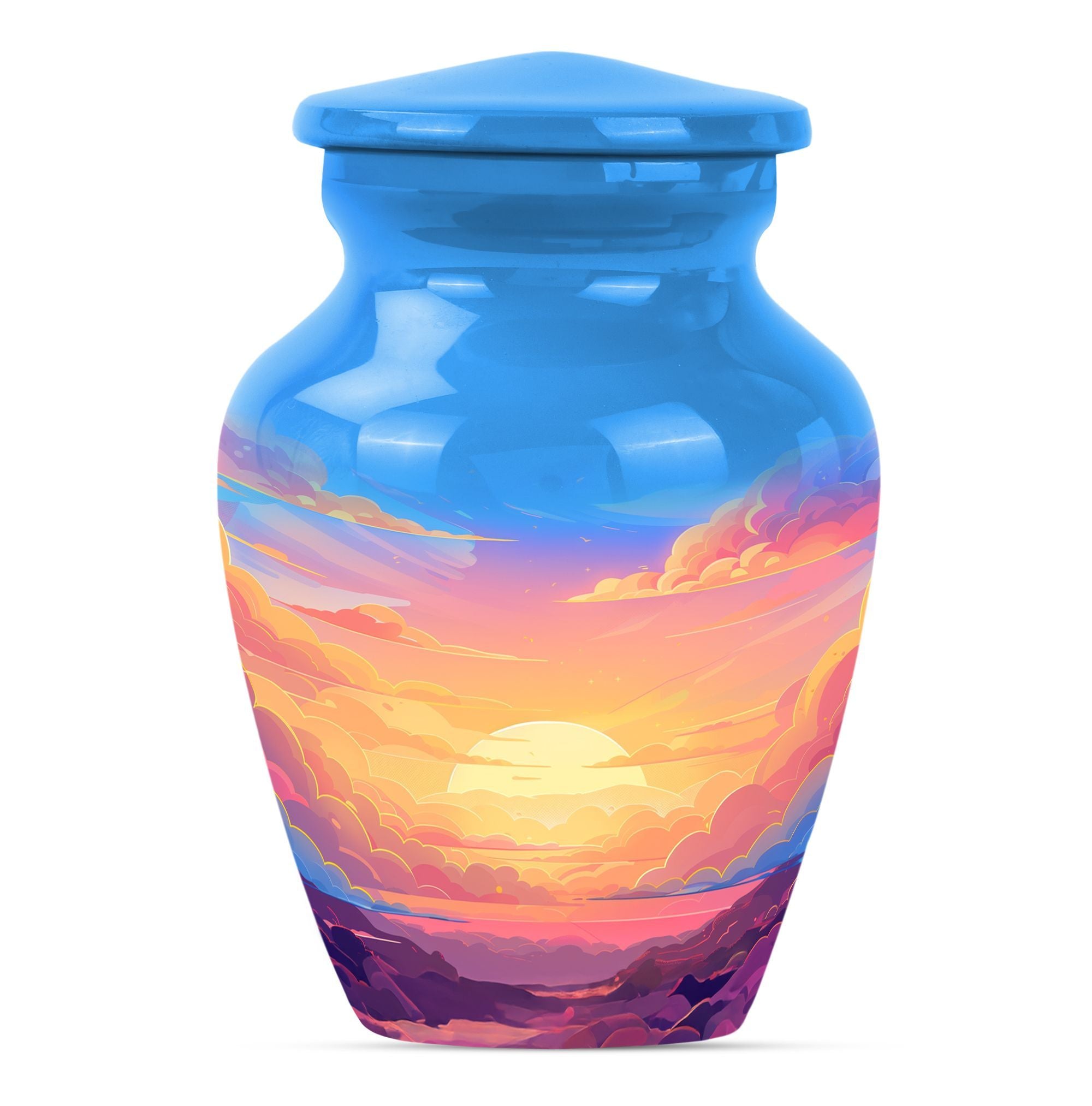 Express your everlasting love and honor your beloved mom bigheartedly with our 10-inch Classic Clouds Urn. This meticulously handcrafted aluminum funeral urn is not only capacious, accommodating up to 200 cubic inches of ashes, but weighs a modest 3.3 pounds, assuring effortless handling and placement. A comforting symbol of transcendence and freedom, the butterfly theme adds a touch of serenity. Each purchase is accompanied by a velvet pouch augmenting safe containment of the cherished remains. To make it even more special, we offer customization - personalize this large urn with your loved one's name. This unique memorial urn breathes out a distinct feel, far from the common 'earns for ashes' or 'custom cremation urns' you see online. Our Clouds Urn makes an ideal silent companion to preserve the physical presence of the departed. This is more than just a 'memorial adult urn' or 'human urn ash adult.' It's an emotionally evocative piece that captures quintessential elements of the rememberance, love, and miss.
