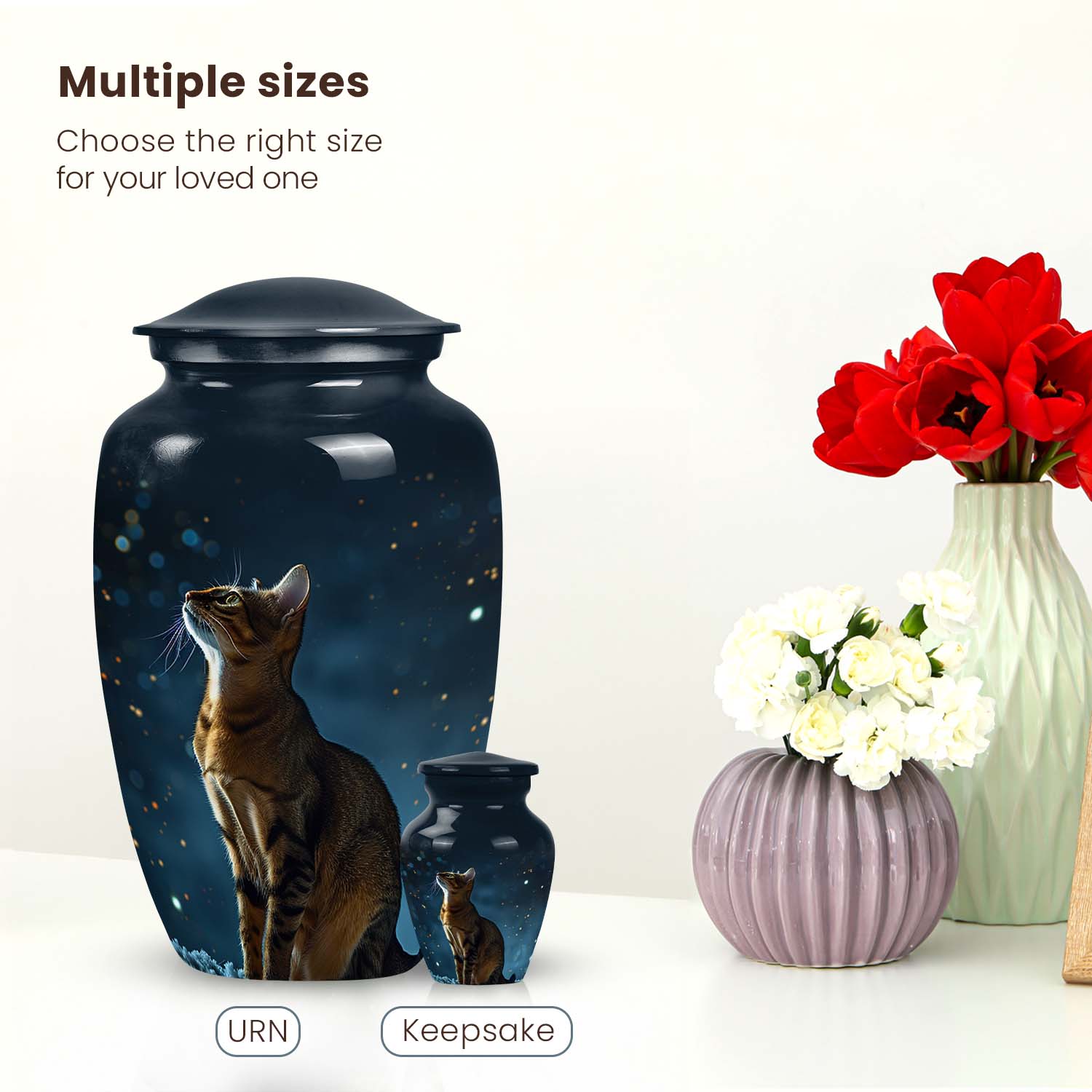 For those seeking unique symbolism, this urn pairs beautifully with a dreamcatcher urn charm or small burial boxes for cats, allowing ashes or mementos to be shared among family. Collectors of spiritual pieces will appreciate the resemblance to the Bastet cat urn, reflecting ancient Egyptian reverence for feline guardians. It also complements black and white cat urns, offering stylistic harmony in multi-pet memorials.