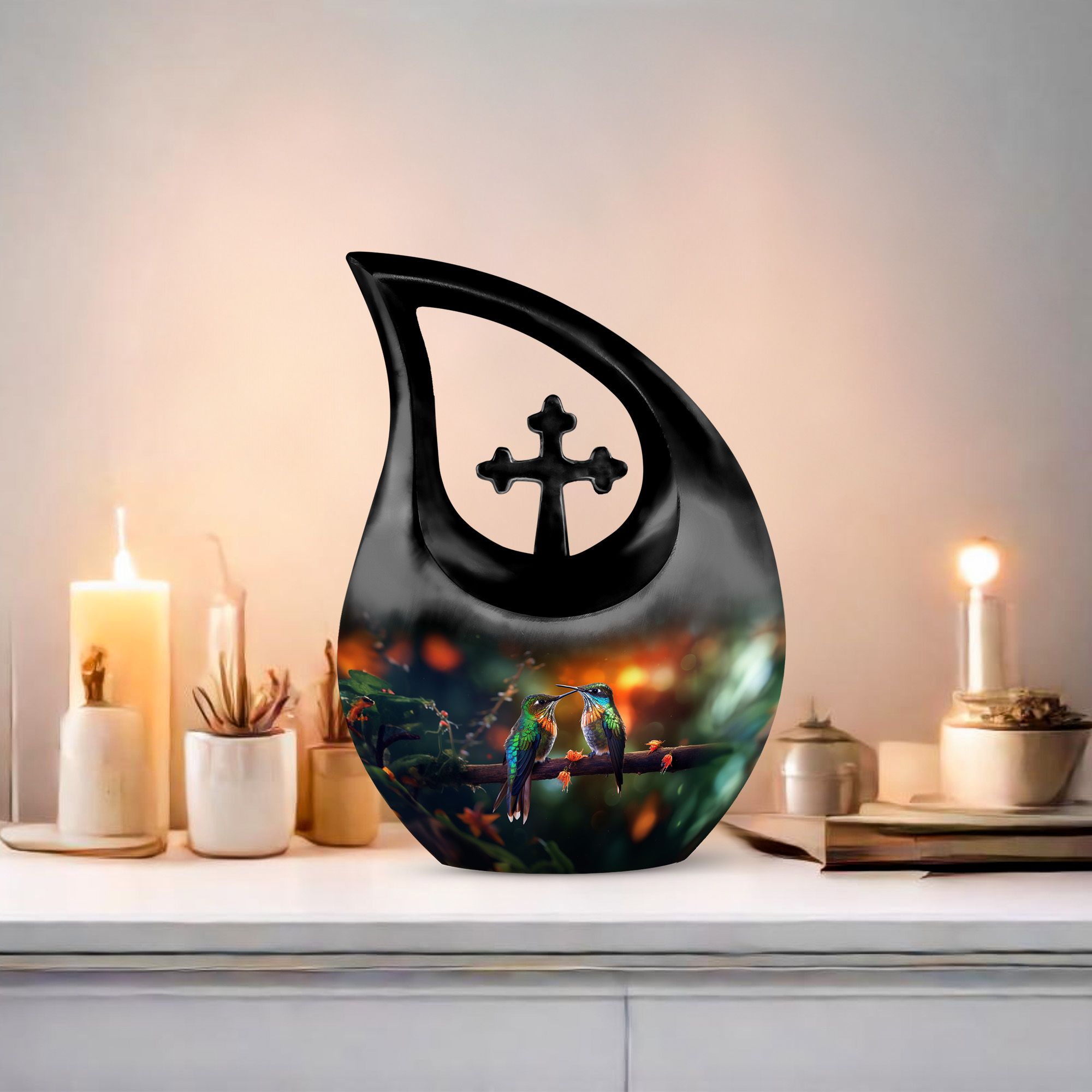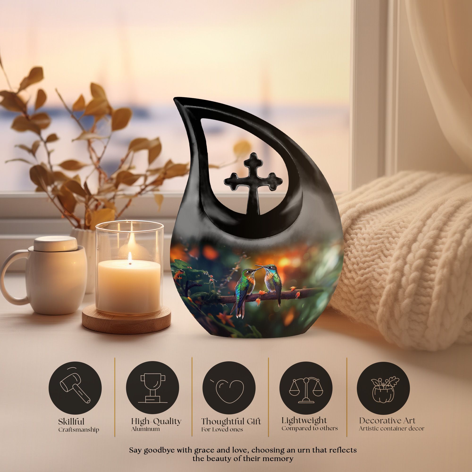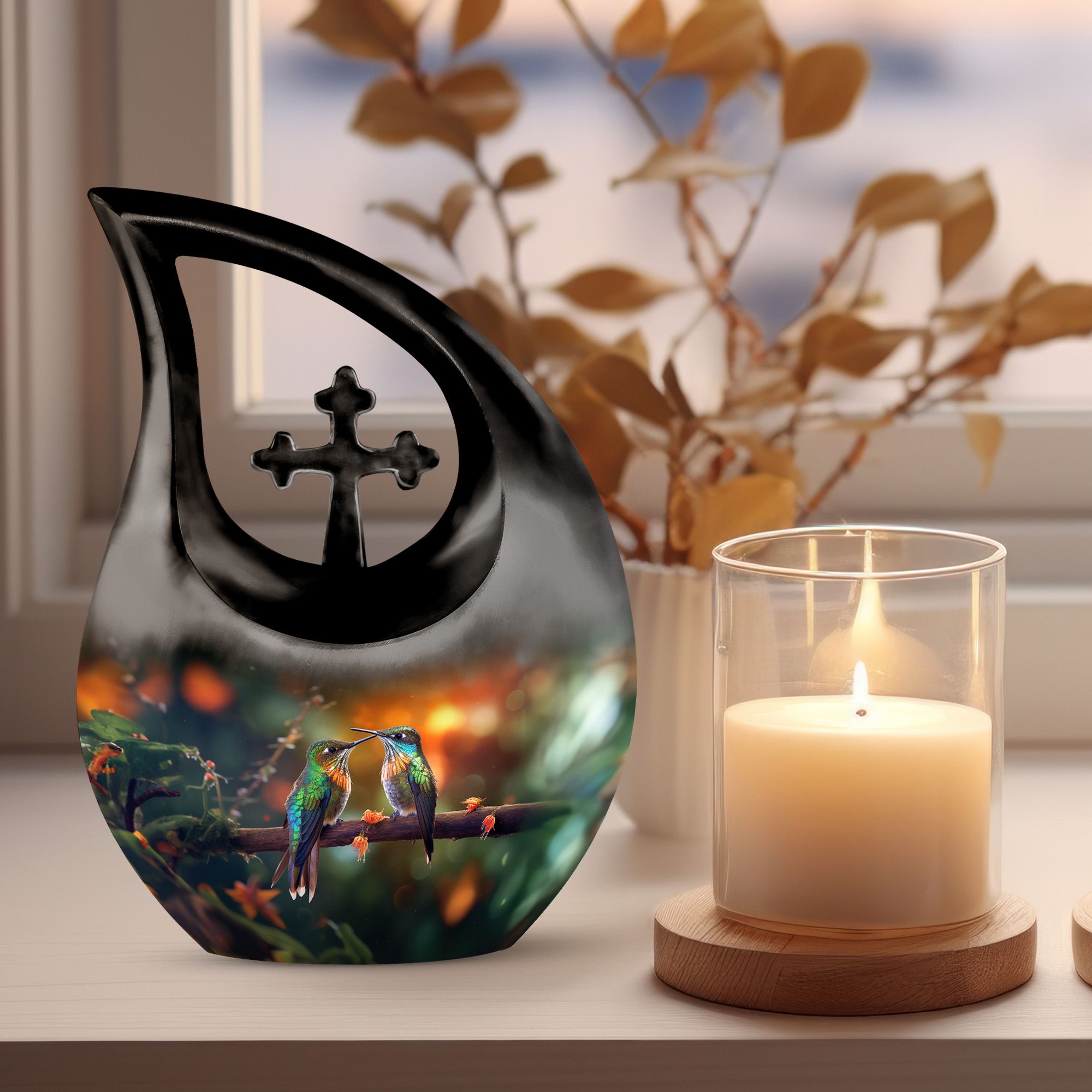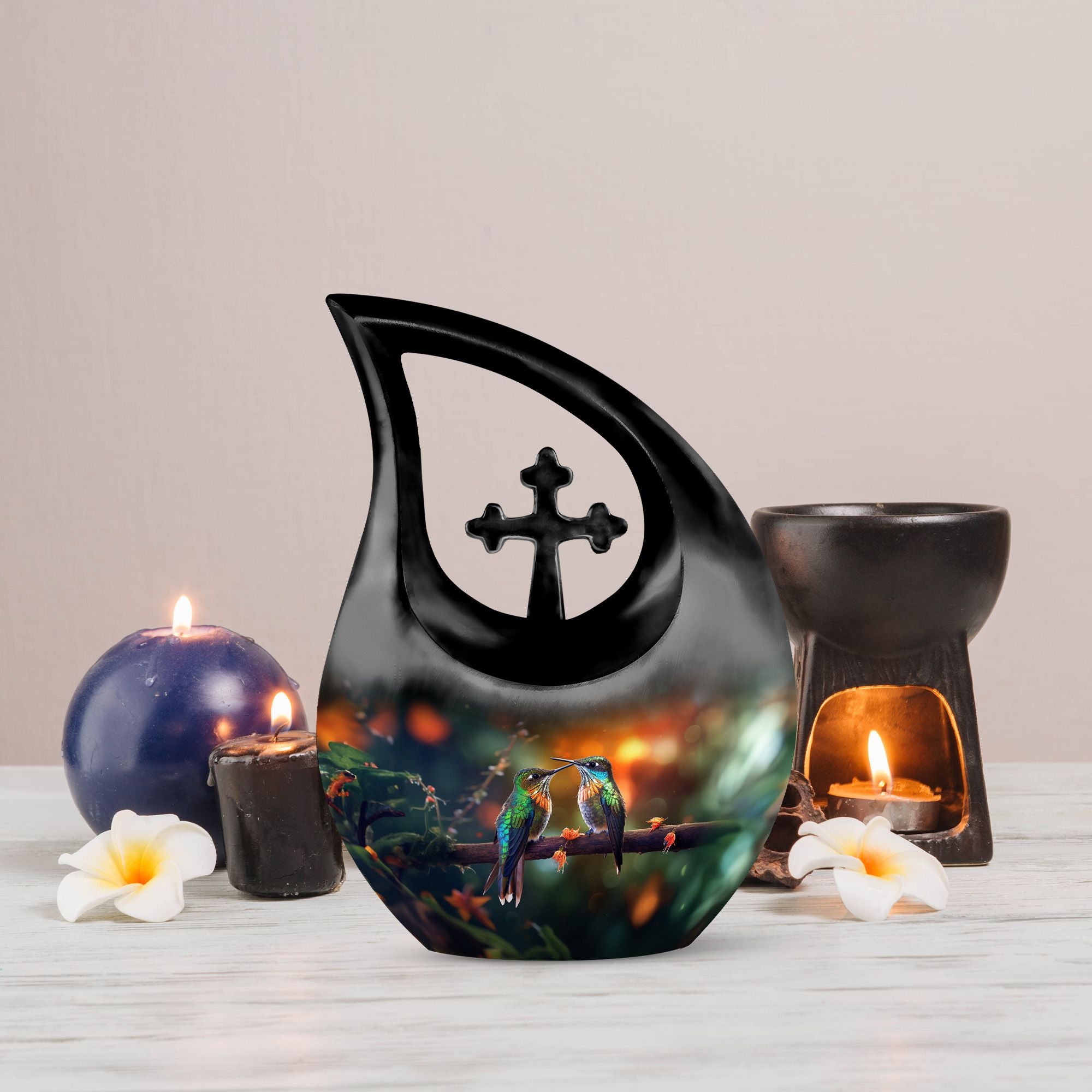 Let this adult large urn serve as a graceful reminder of love that transcends time—preserving cherished memories within a design as delicate and eternal as the hummingbird’s flight.