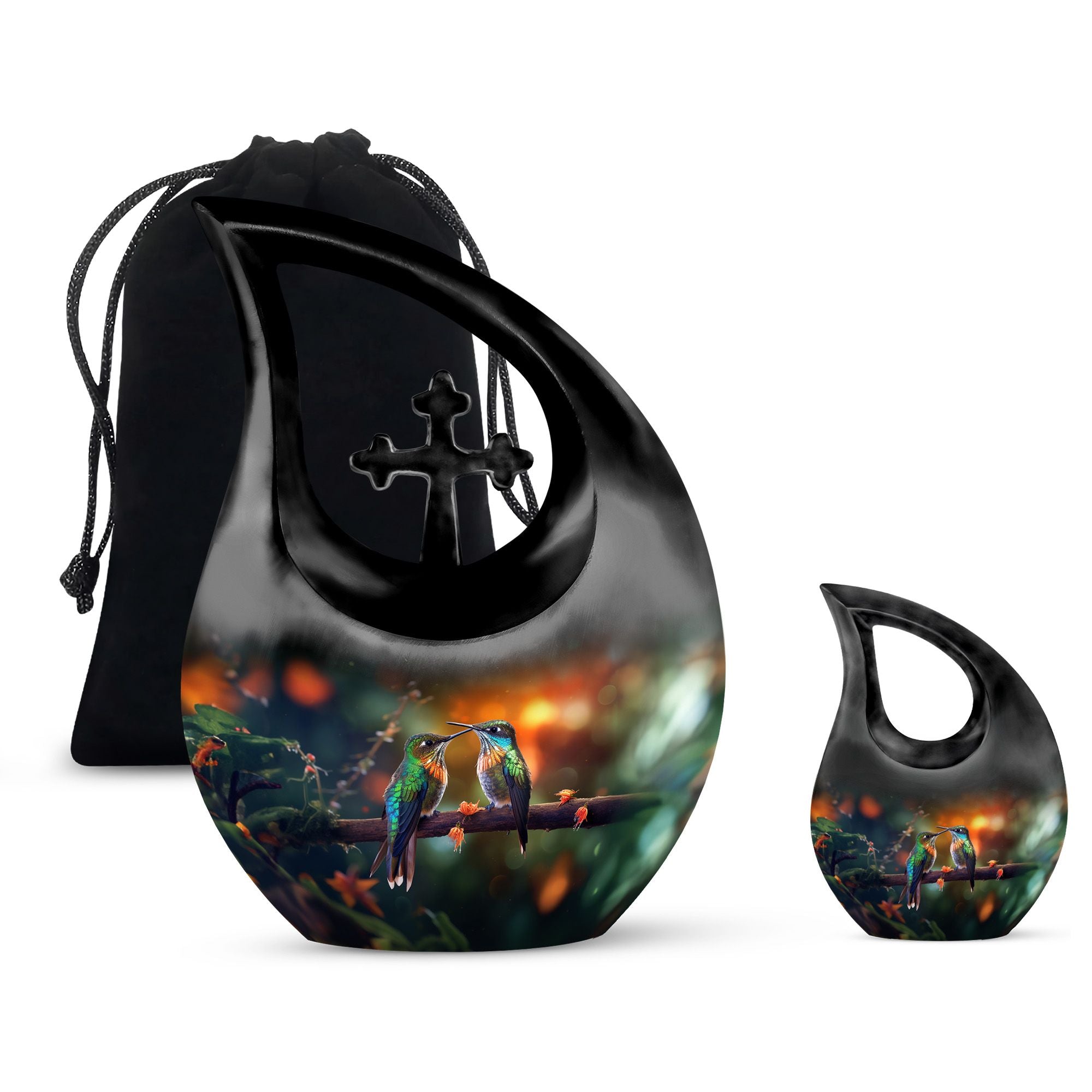 The Pair Hummingbird Memorial Urn embodies beauty, serenity, and eternal love. Hummingbirds, known as symbols of joy and resilience, remind us that our loved ones remain close in spirit. Designed as a large urn for ashes adult male or large urn for ashes for women, this piece offers a peaceful tribute to a life that continues to inspire.