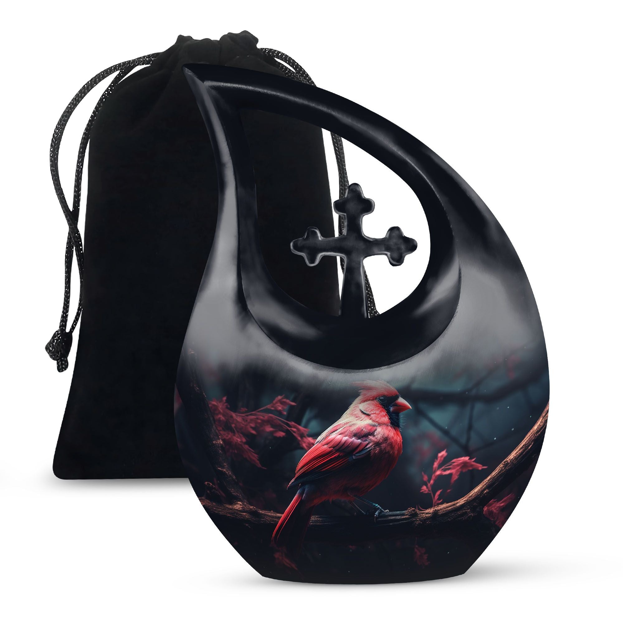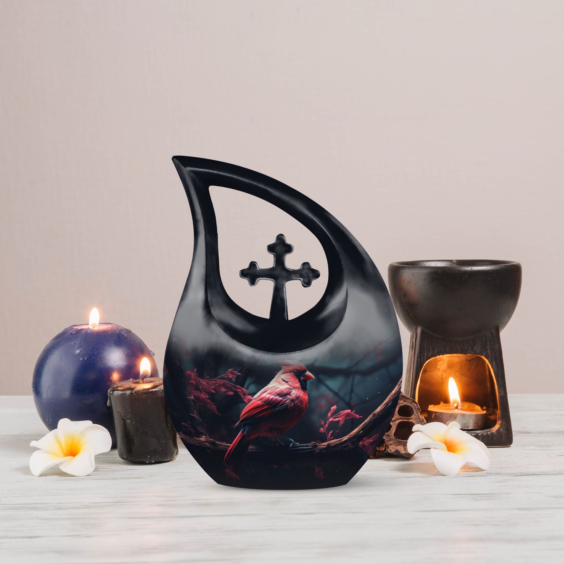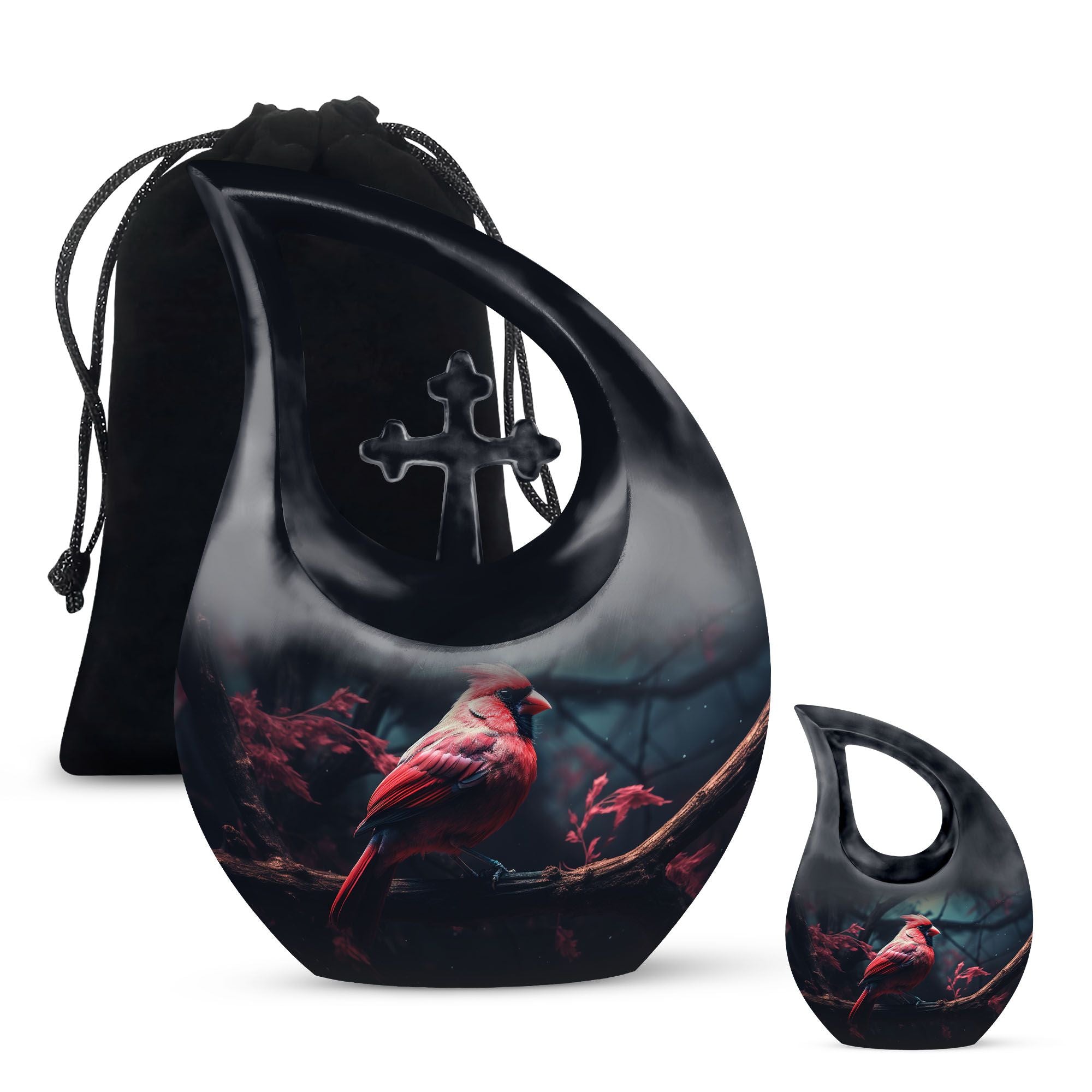 Handcrafted from durable aluminum, this black cremation urn for human ashes features a deep red bird design that stands out gracefully against the dark background—symbolizing the soul’s flight to serenity. Its timeless aesthetic makes it suitable as a burial urn for human ashes adult male, yet elegant enough for display in a memorial setting. Ideal for families looking for large urns for human ashes adult male or urn for human ashes adult female, it offers both strength and beauty in every detail.