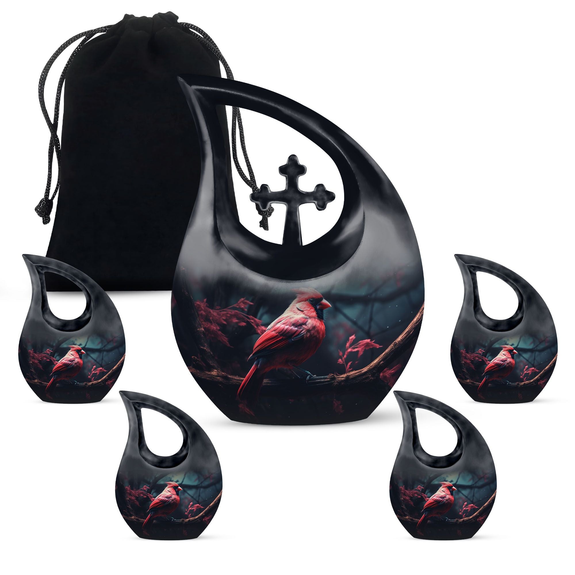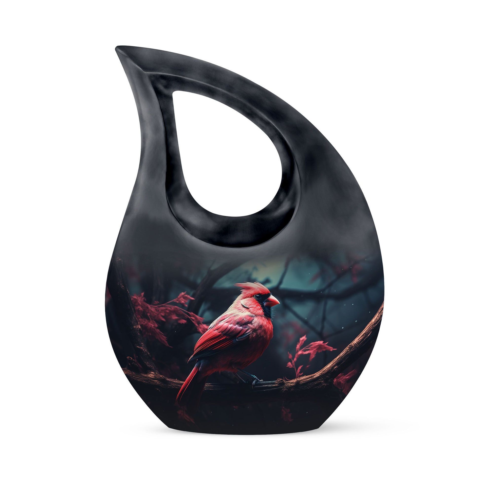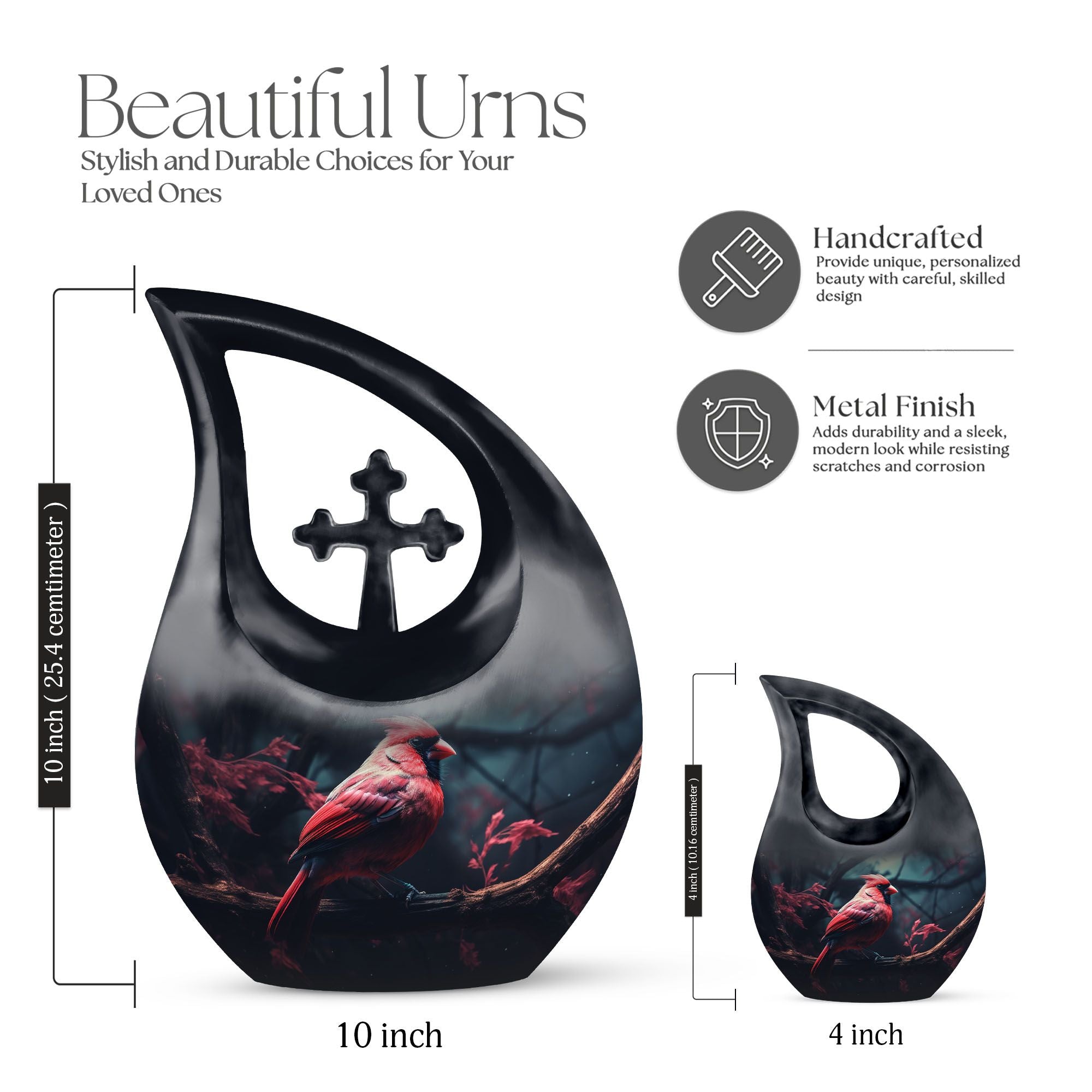 Handcrafted from durable aluminum, this black cremation urn for human ashes features a deep red bird design that stands out gracefully against the dark background—symbolizing the soul’s flight to serenity. Its timeless aesthetic makes it suitable as a burial urn for human ashes adult male, yet elegant enough for display in a memorial setting. Ideal for families looking for large urns for human ashes adult male or urn for human ashes adult female, it offers both strength and beauty in every detail.