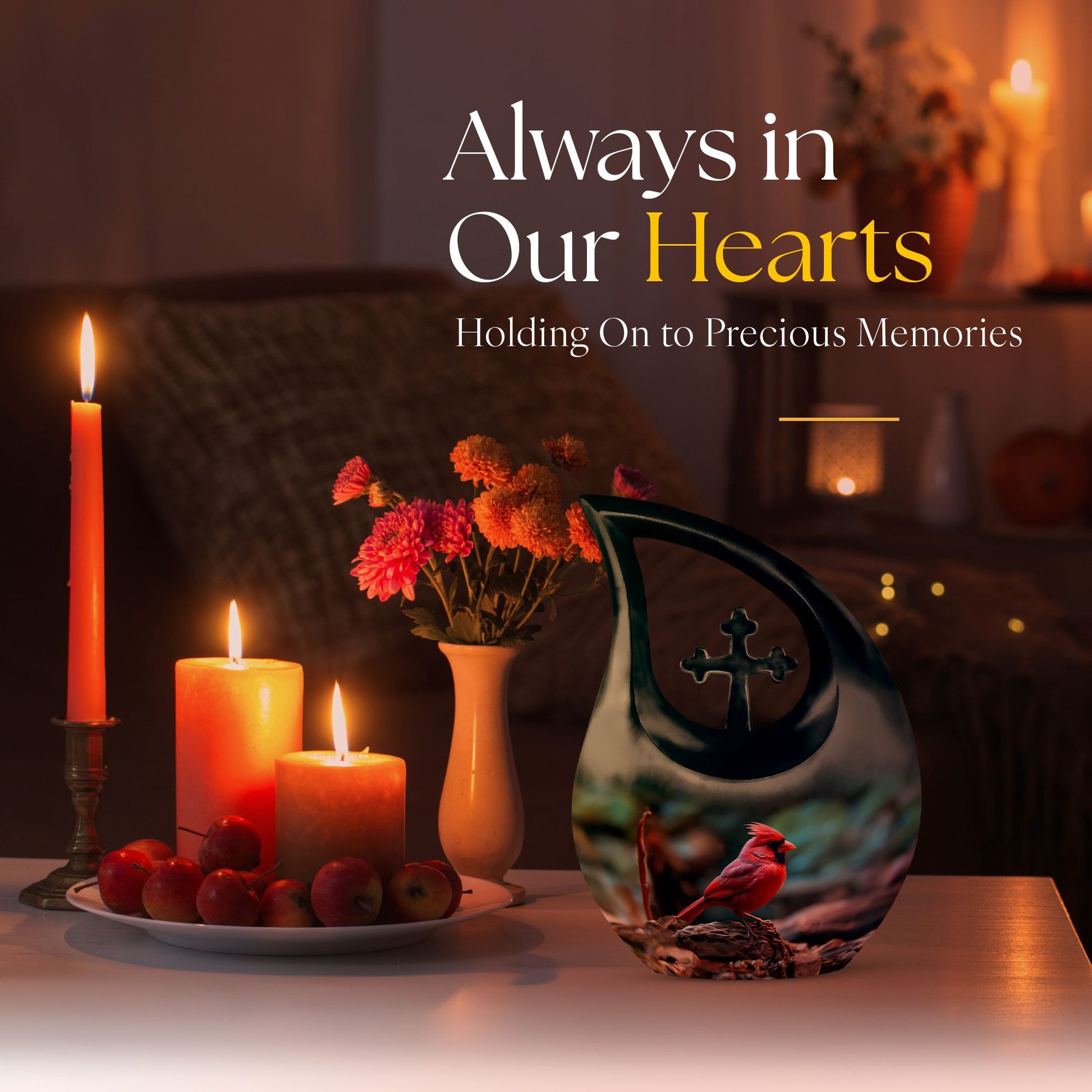 The Red Cardinal Bird Urn for Men offers a peaceful and meaningful way to honor a cherished life. Designed with symbolic cardinal artwork representing hope, love, and spiritual presence, it provides comfort to families seeking funeral urns for human ashes or a heartfelt memorial tribute for men and women alike.
