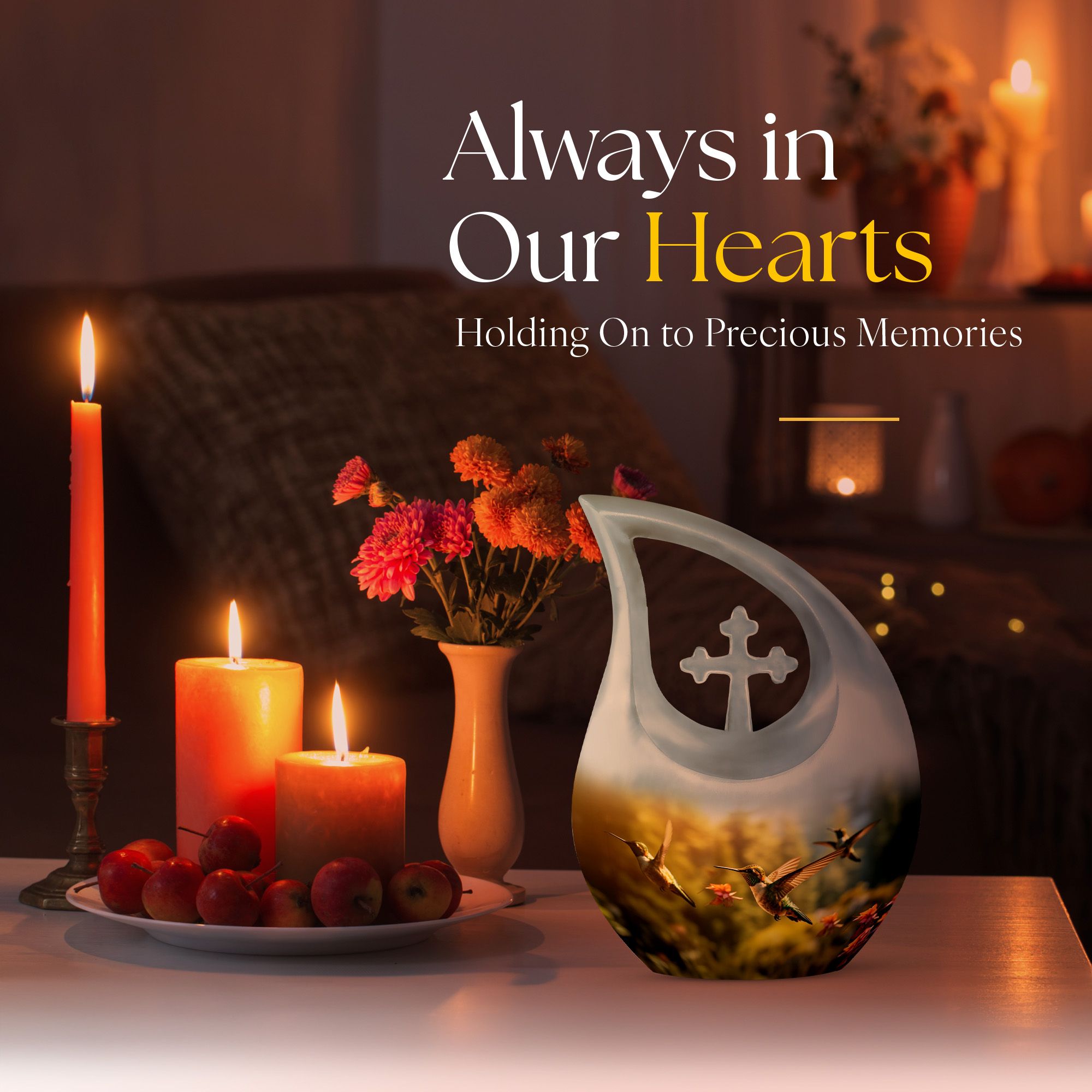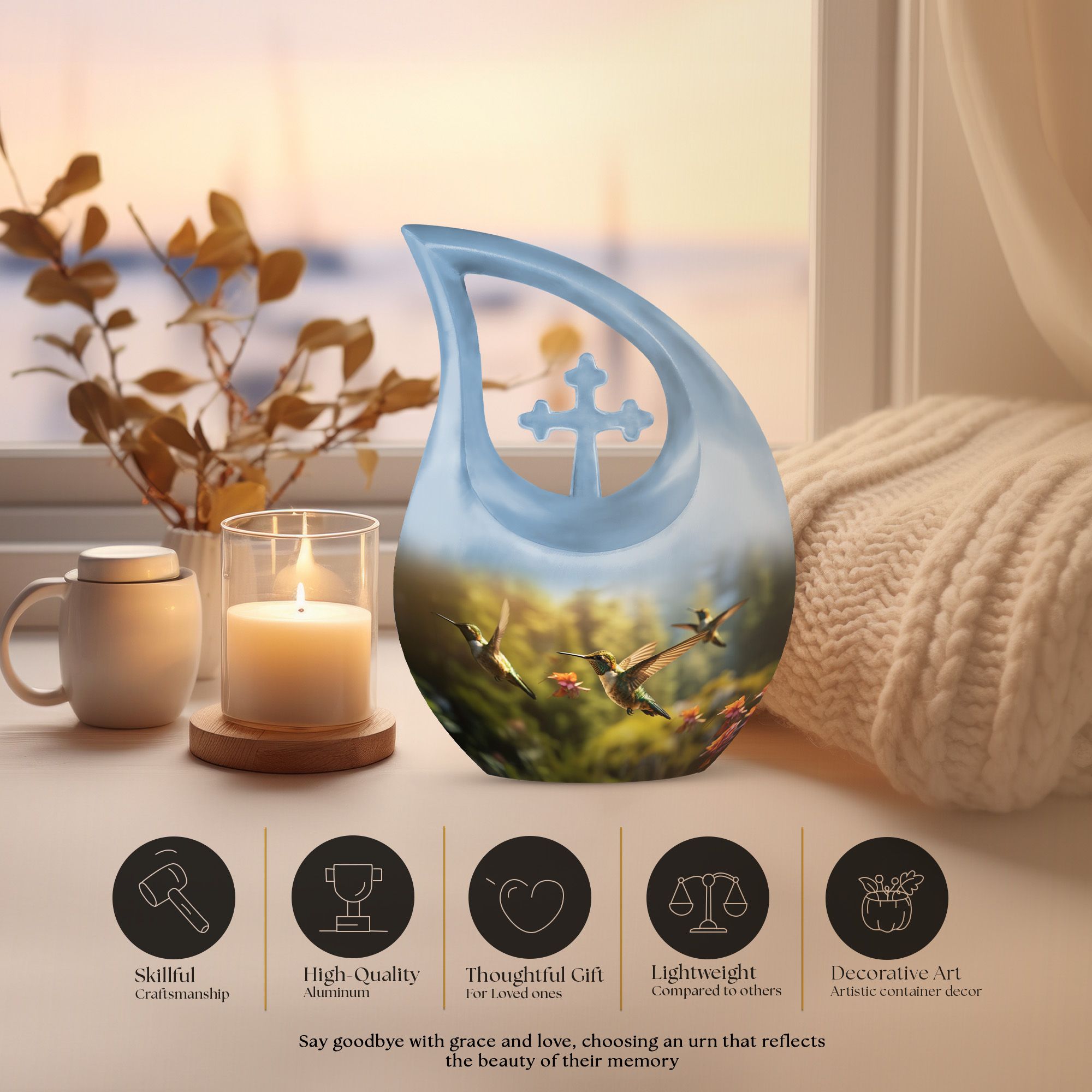 Honor the life and legacy of your loved one with the Flying Humming Bird Family Scenic Urn, a timeless piece symbolizing love, freedom, and remembrance. This beautifully detailed urn embodies peace and serenity, making it a heartfelt choice for families seeking large urns for human ashes or cremation urns large adult to preserve cherished memories with grace.