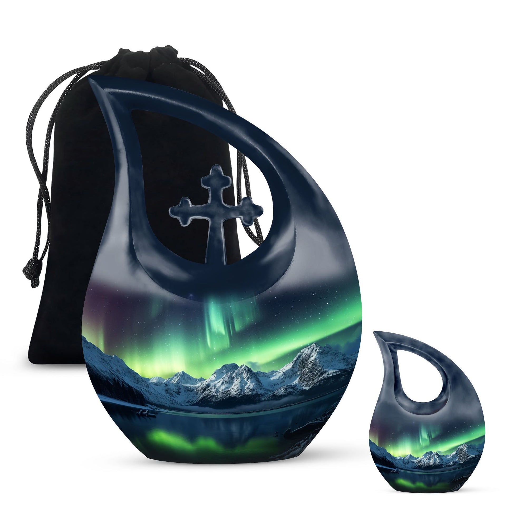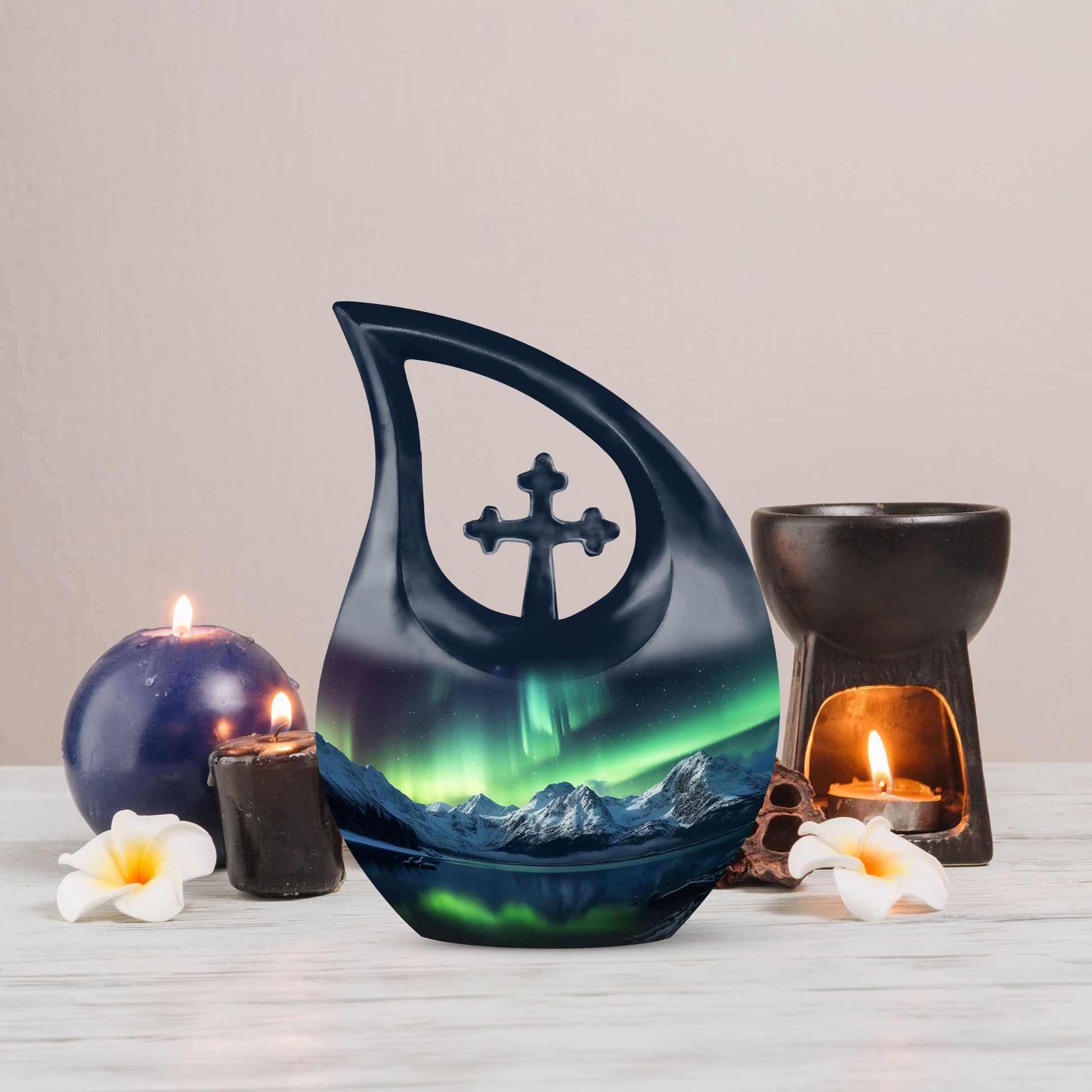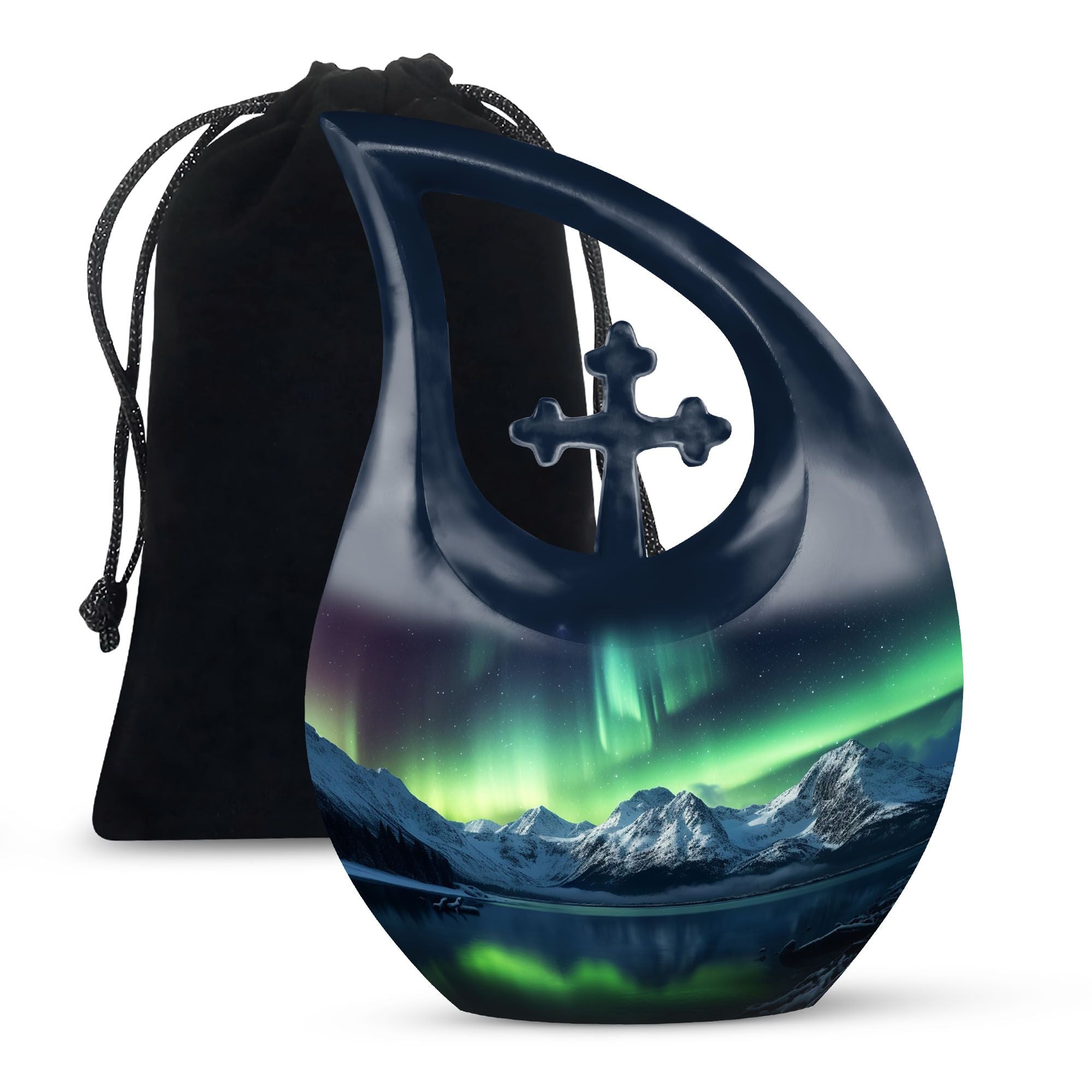 The Aurora Borealis Funeral Urn for Adults captures the gentle beauty of the northern lights — a breathtaking display symbolizing hope, love, and eternity. This elegant urn ashes women and urn ashes men design provides a serene tribute for those who brought light into the lives of others. Crafted for peace and remembrance, it reflects the spirit’s journey toward calm and everlasting rest.