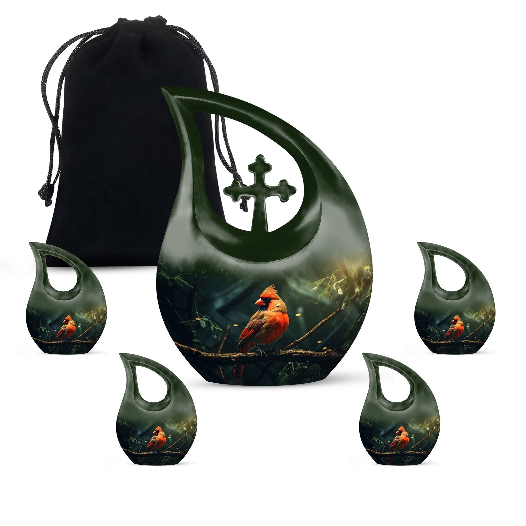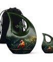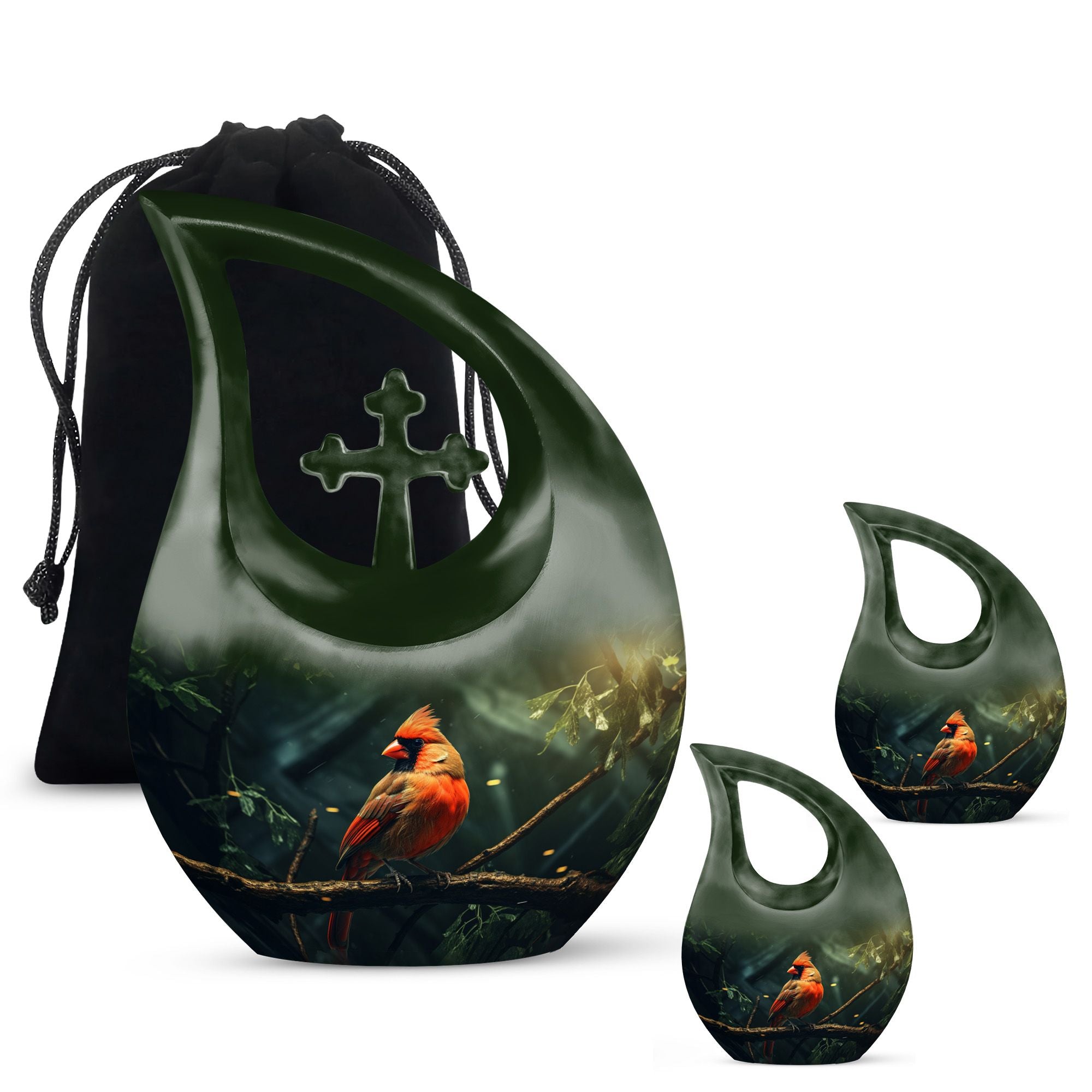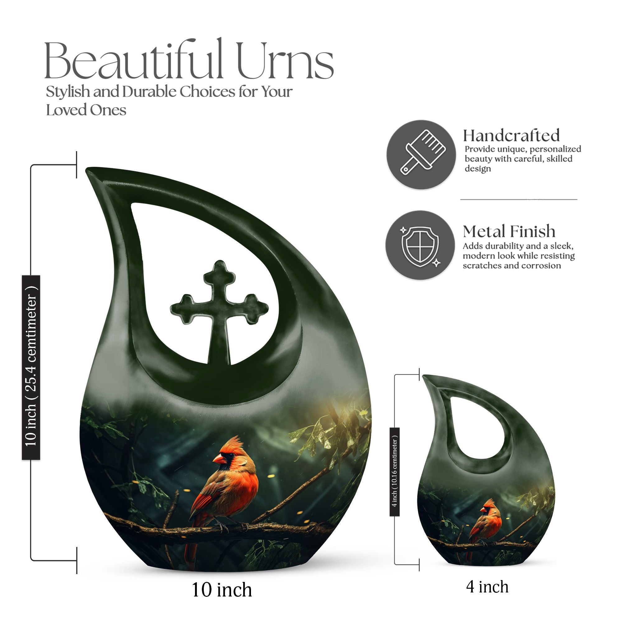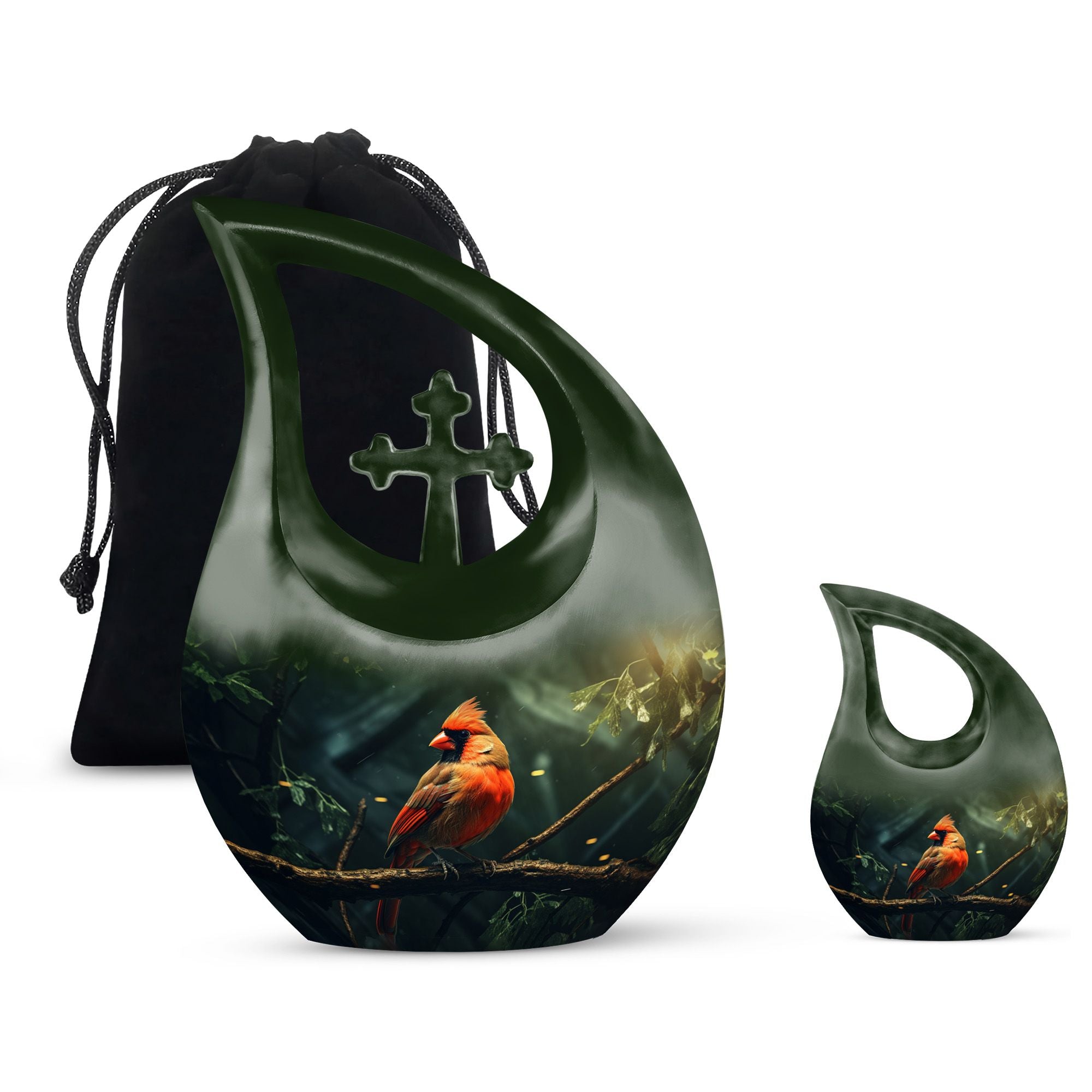 The Cardinal Cremation Urn represents eternal love and remembrance, offering a peaceful tribute for those who meant the world to you. The rich deep green color and detailed red cardinal symbolize hope, renewal, and enduring presence—perfect for families seeking cremation urns for human ashes adult female or burial urns for human ashes adult male.