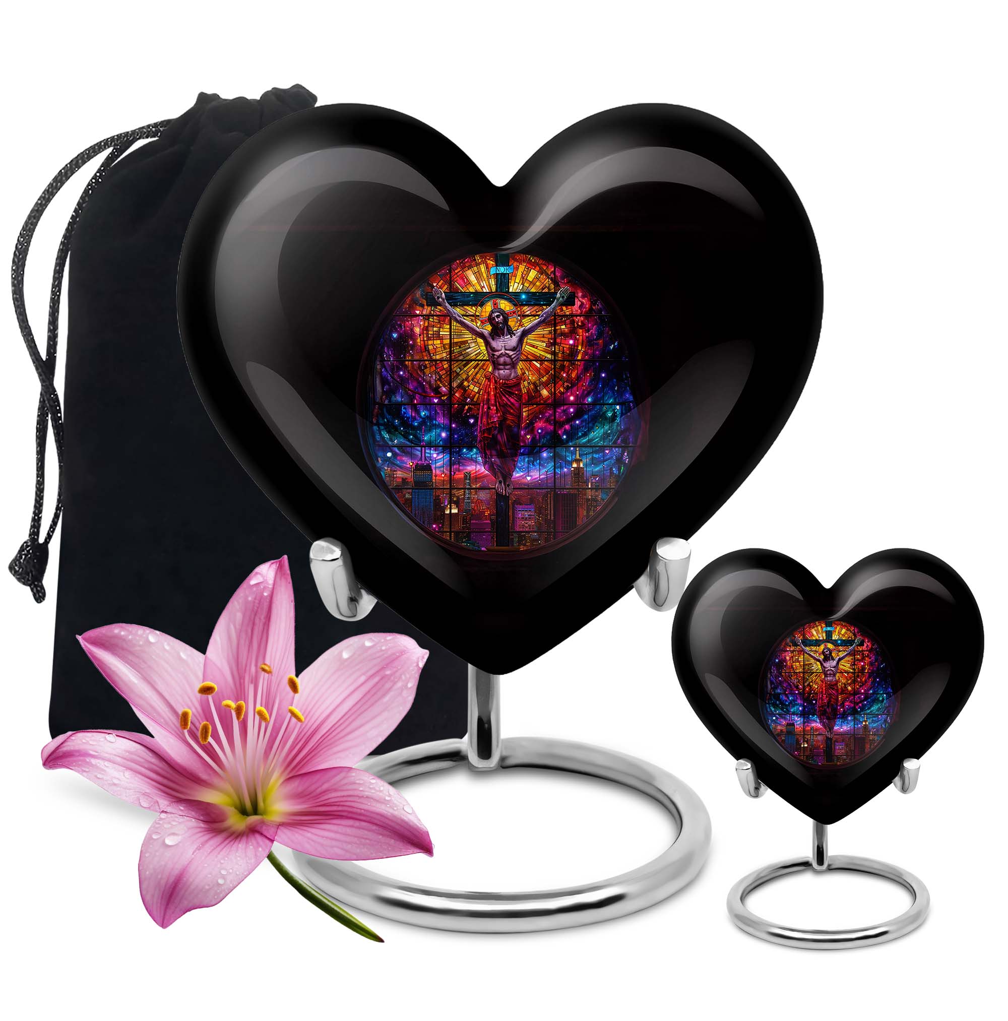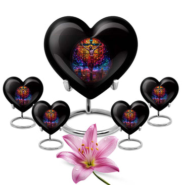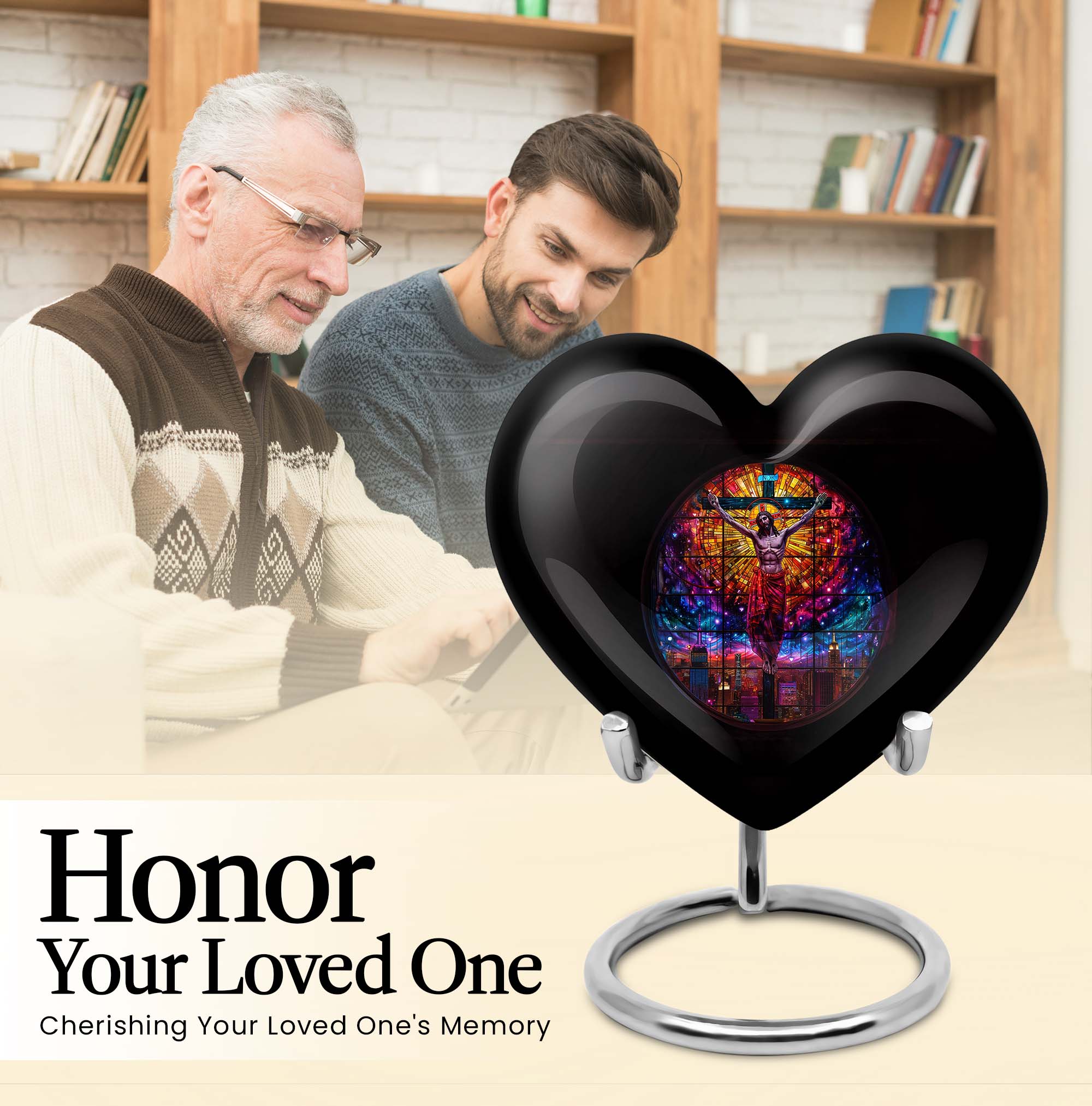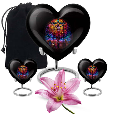 Handcrafted to encapsulate the essence of reverence, this 10-inch tall Heart Urn, a beautifully designed keepsake crosses the line between a mere urn to a revered piece of memorial artwork. Meticulously constructed from robust aluminium, this memorial urn for male adults manages to merge durability and elegance together. Its unique Gramophone theme makes a fitting tribute for a life lived with passion, and its weighty feel at 3.3 pounds only amplifies its significance. Perfectly suitable as a Companion Urn for Two Adults, it can easily hold up to 200 cubic inches of ashes — a sizeable capacity that does not compromise its visual presence. The urn comes with a velvet pouch, ensuring you can securely contain your loved one's ashes. Personalize this large metal urn for ashes with engraved names, making it a one-of-a-kind tribute. This piece is not merely a 'female urn' or a 'cross urn'; it’s a personal memory frozen in time, a testament to holding onto what was so dear.