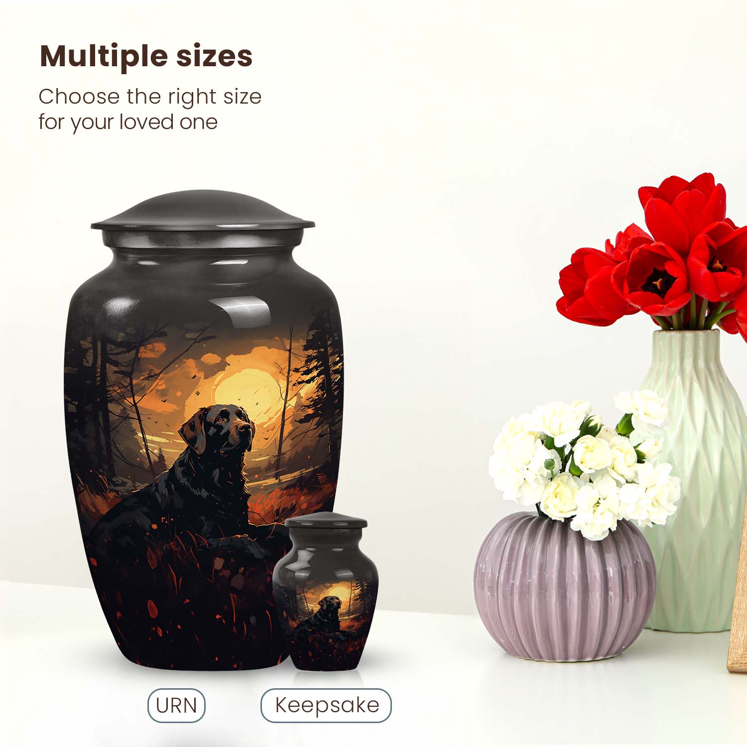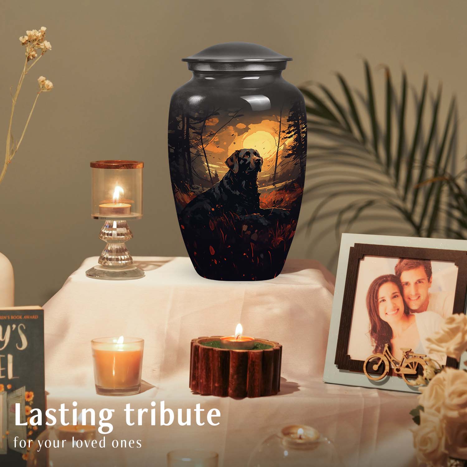 A truly timeless piece among Perfect Memorials dog urns, the Black Labrador Forest Sunset Urn bridges nature and memory, giving your faithful companion a forever home filled with beauty, peace, and love.