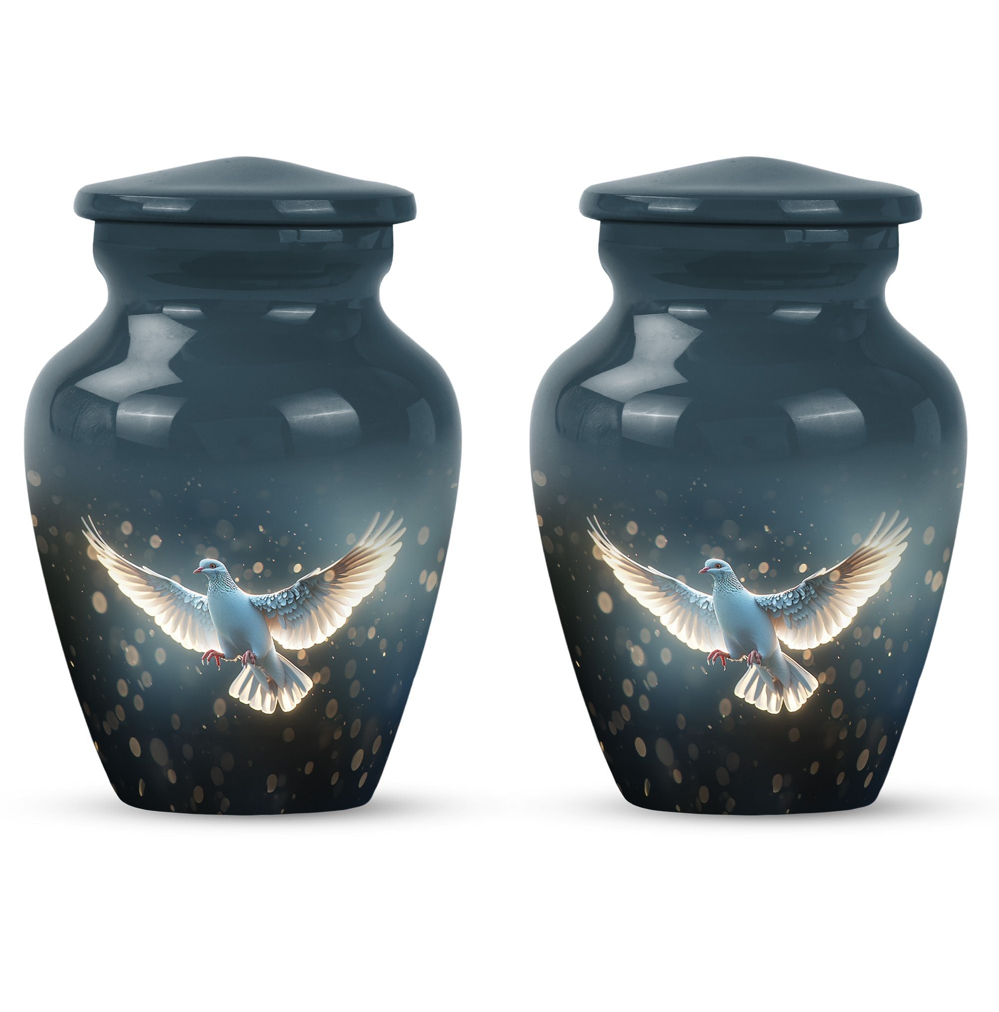 Experience a timeless tribute to your dearly departed with our elegant 'Classic Urn'. Ideal for burial ceremonies, this dove Urn boasts a tasteful, artistic finish, lovingly adorned with a floral theme. Crafted with precision from robust, high-quality aluminium, the urn comfortably holds up to 200 cubic inches of ashes. Measuring a sensible 10 inches in height and weighing a sturdy 3.3 pounds, this large urn ensures a dignified resting place for your loved one. The package comes complete with a velvet pouch to safely contain the ashes. To add a heartfelt touch, personalize the urn with engraved names, making it a beautiful reminder of the bond shared. Step away from the generic, opt for this beautifully crafted cremation urn. This urn not only serves a practical purpose but also doubles up as an artistic decor piece, a fitting memorial for the wonderful soul lost. While perfect for women, its understated design appeals to all, making it a universally appreciated urn.