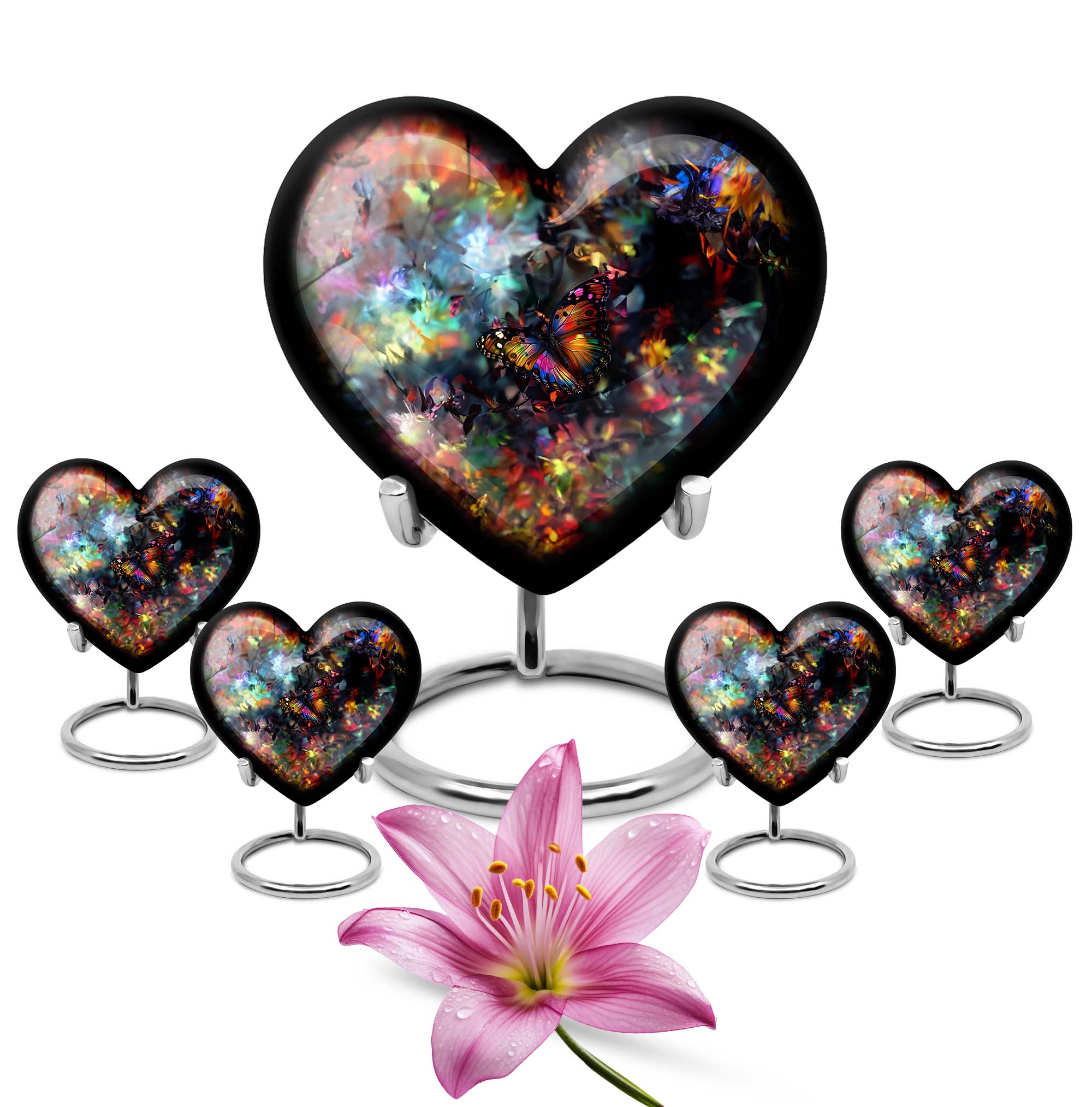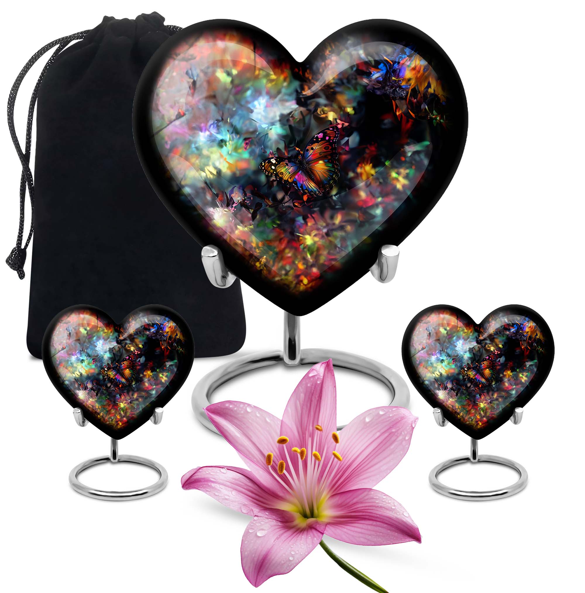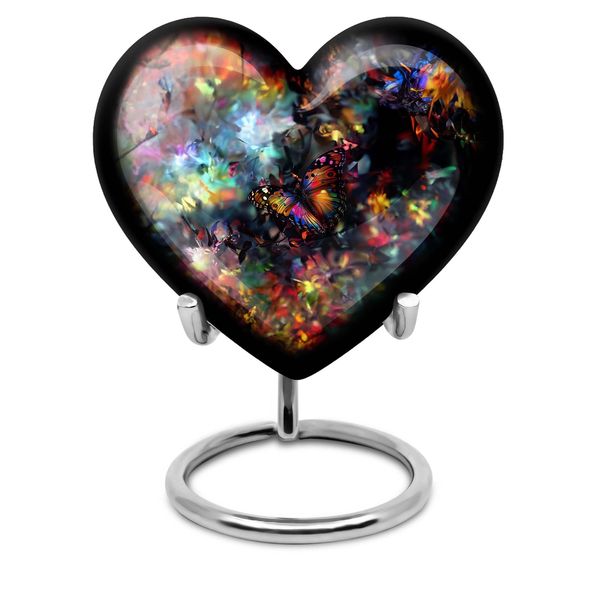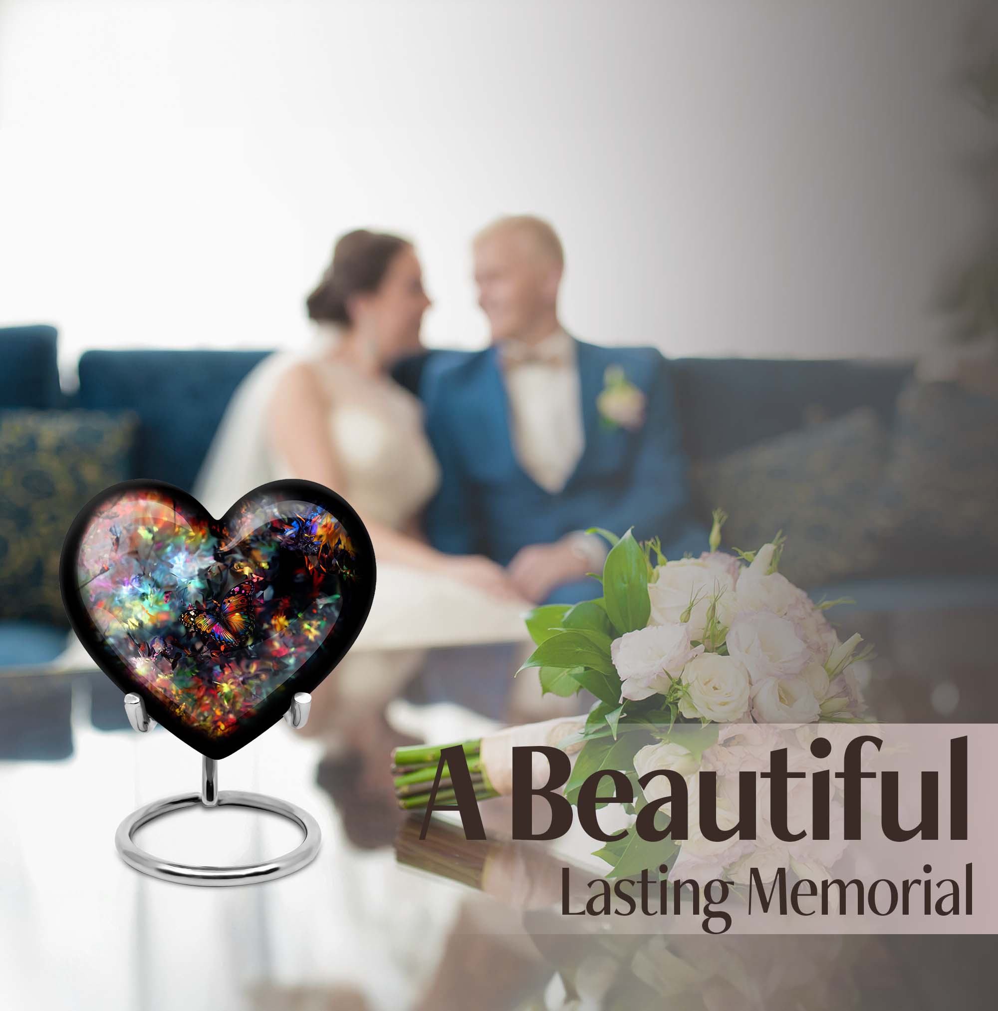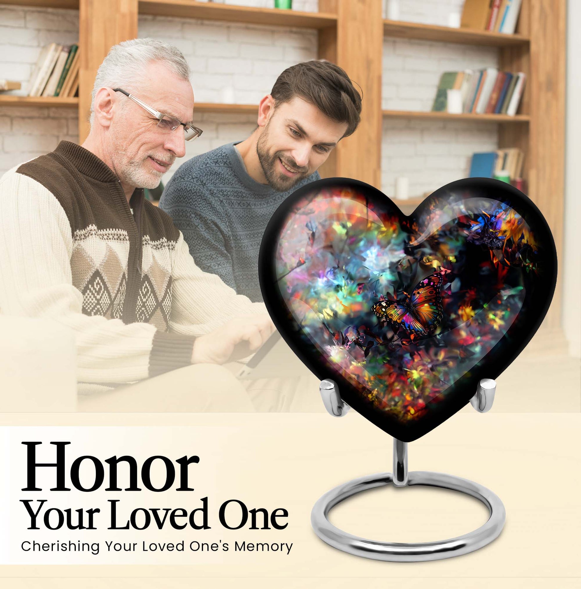 Honor the memory of your dear one with our Butterfly Medium Urn, handcrafted with dedication and attention to detail. This 10-inch heart-shaped urn, richly adorned with the howling wolf theme, serves as an ideal resting place for your loved one's ashes. The urn, weighing 3.3 pounds, holds a capacity of 200 cubic inches, providing ample space for adult human ashes. Made from high-quality aluminium, this cremation urn offers permanence and stalwartness necessary for a cherished memorial. Along with the urn, we provide a velvet pouch, a soft and secure containment for the ashes. Customization is available for those who wish to make it even more personal and reflective of their loved one, with the option to engrave names onto the urn. Diversify your search for a memorial medium urn or funeral burial urns and consider our unique butterfly urn. A remarkable blend of aesthetic and practical, the urn is likely to satisfy those looking for something outside the ordinary in cremation urns for human ashes.