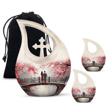 Complementing mini small urns for men, mini urn for ashes for women, and ashes keepsake for men, the Lovers Memorial Urn is also available in smaller cremation keepsakes for men and keepsakes for women sizes — perfect for sharing ashes among family members. Whether chosen as a single urn for men & women or a part of a matching keepsake set, this design captures the essence of eternal love — a bridge that forever connects two hearts.