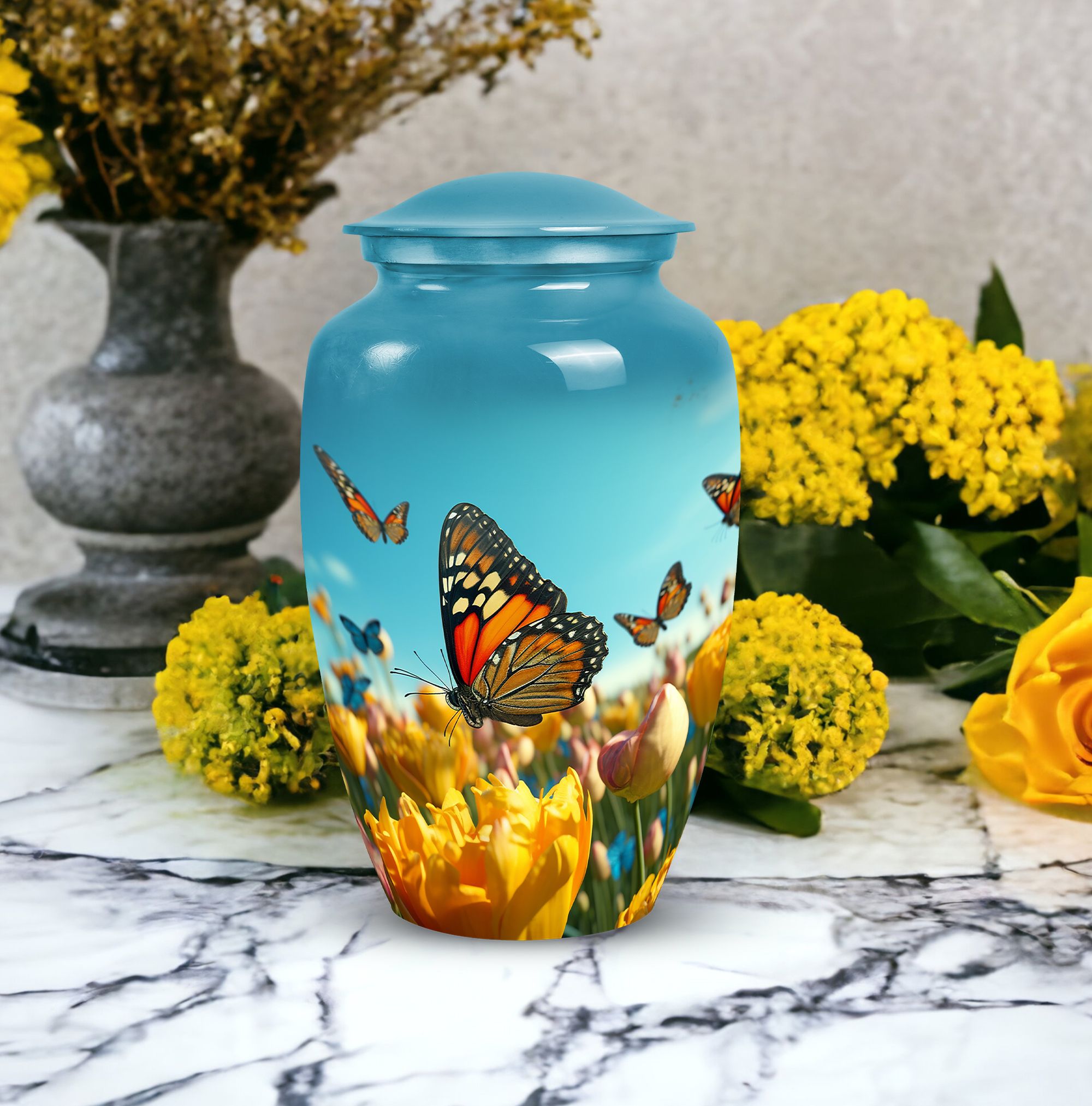 Crafted with care, this cremation urn for human ashes offers both beauty and durability. The vibrant design is perfect as a yellow flower urn, sunflower urn, or Monarch butterfly urn, ensuring your loved one’s memory is preserved with dignity.