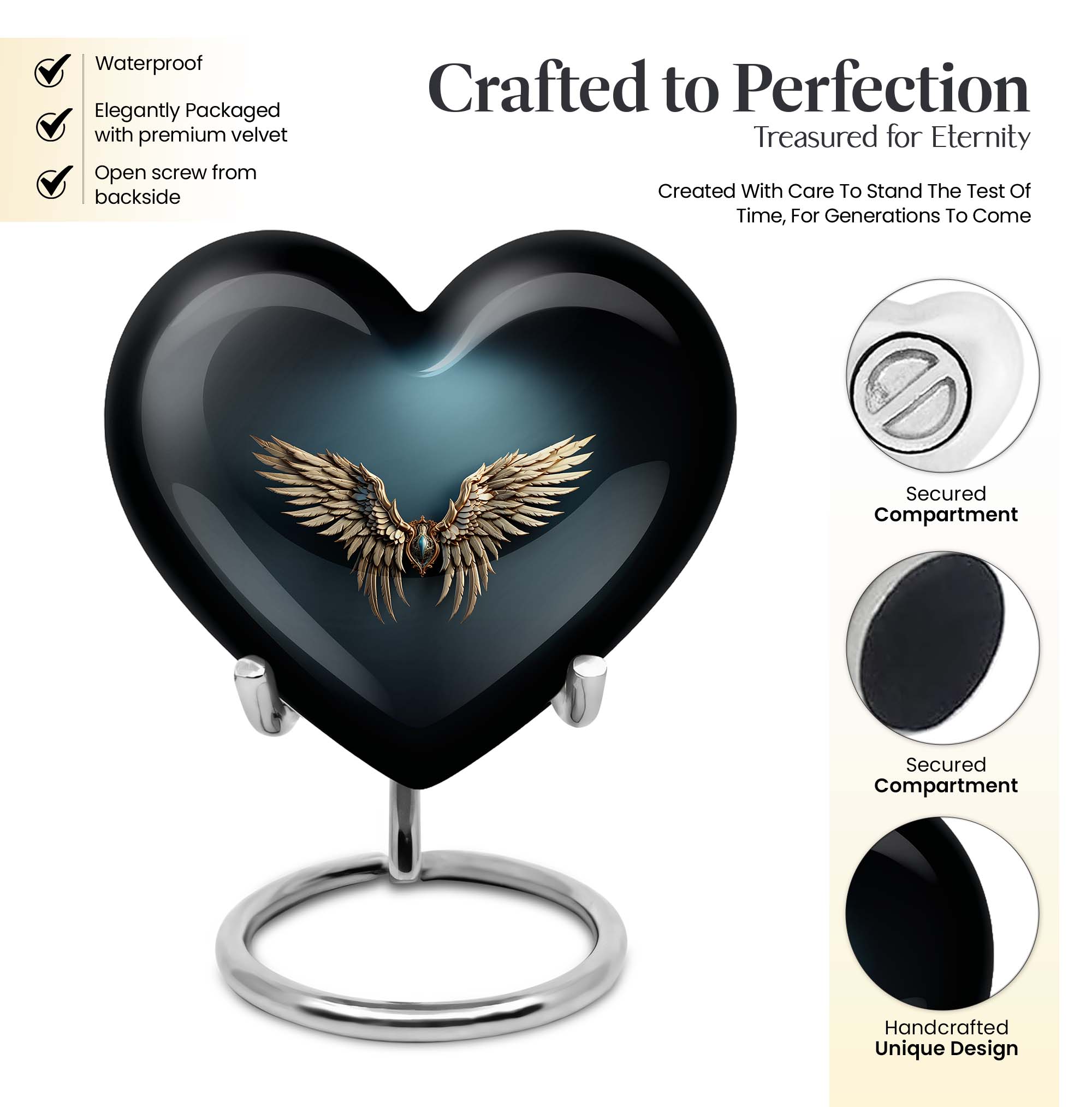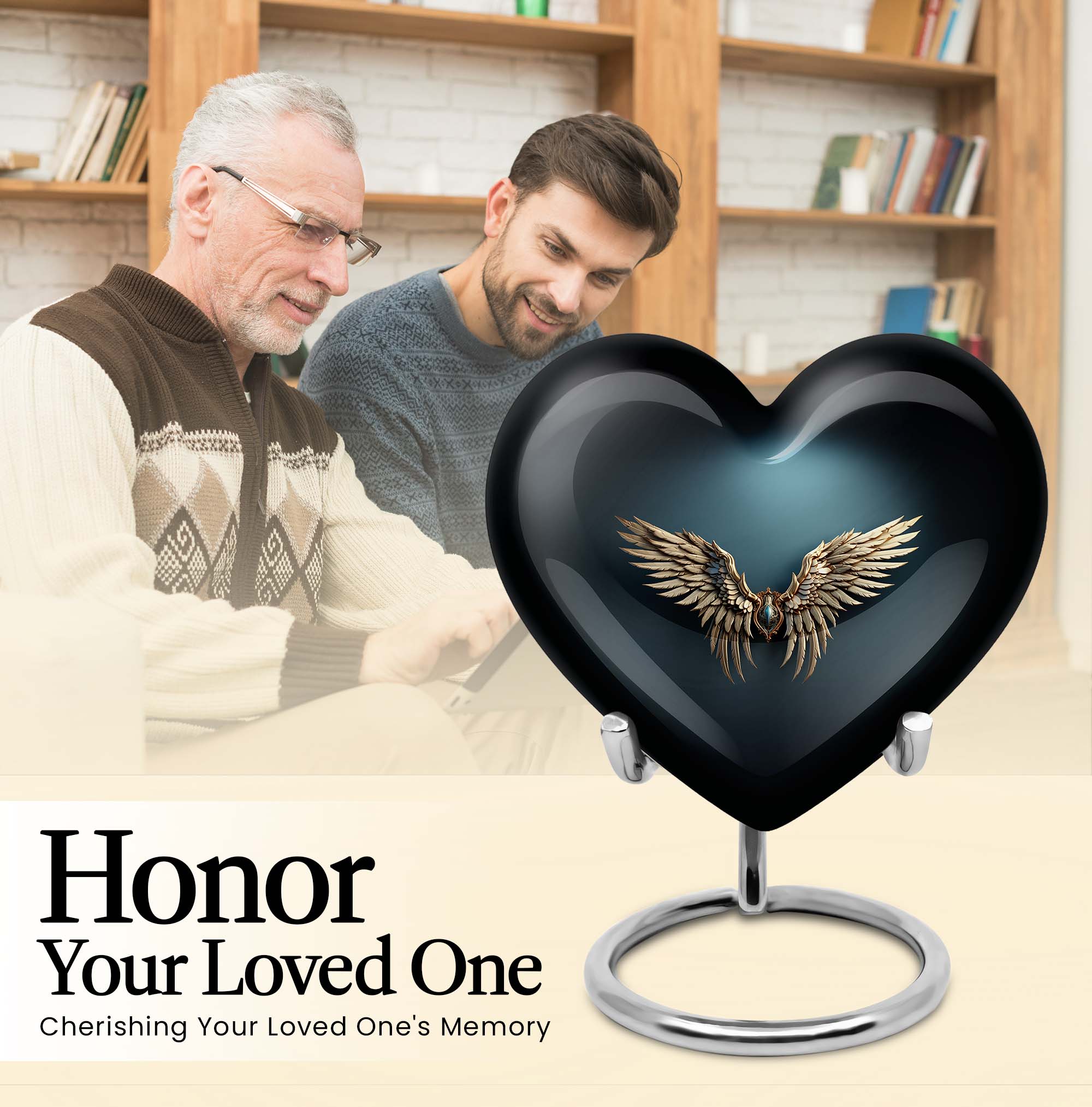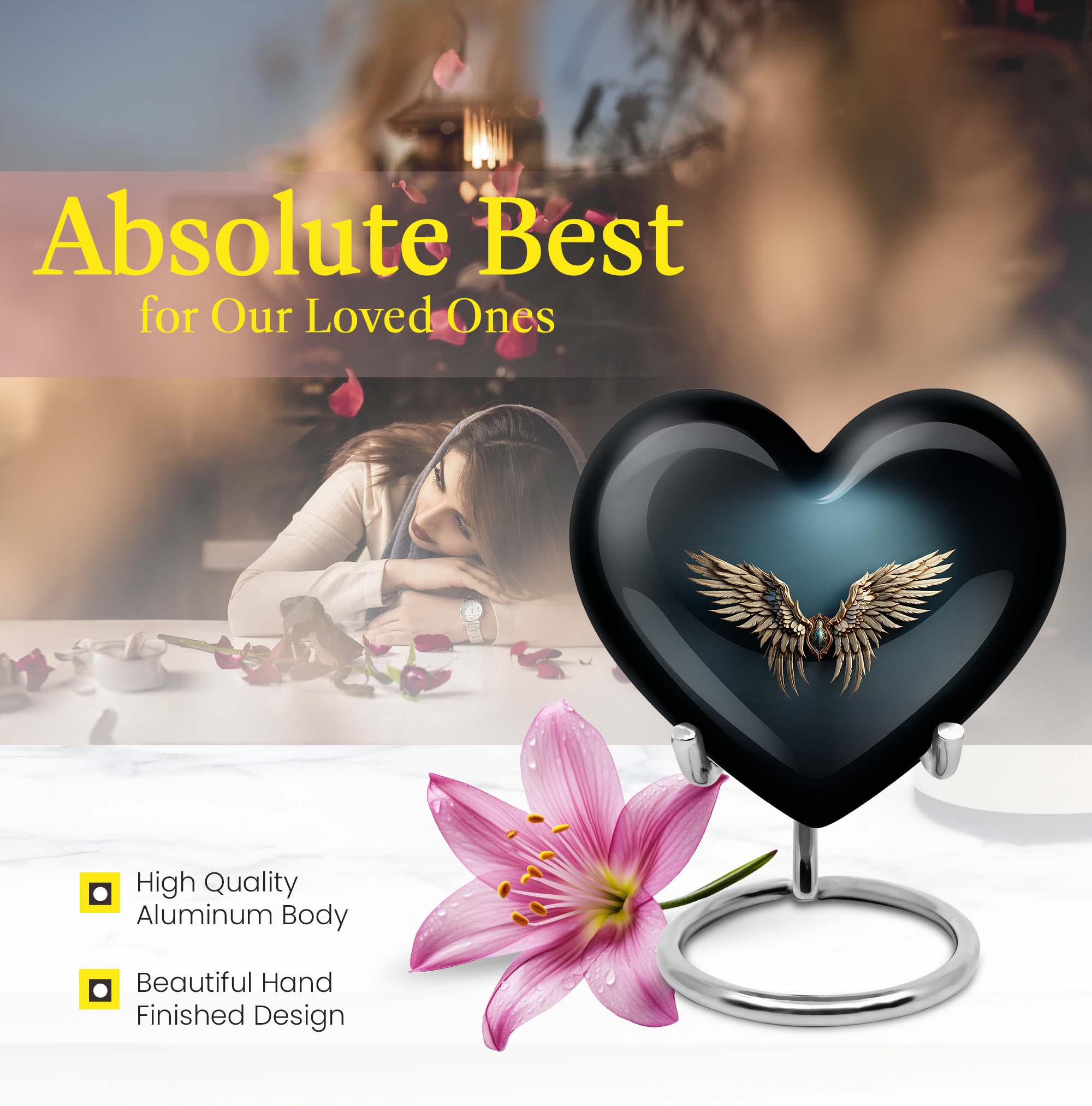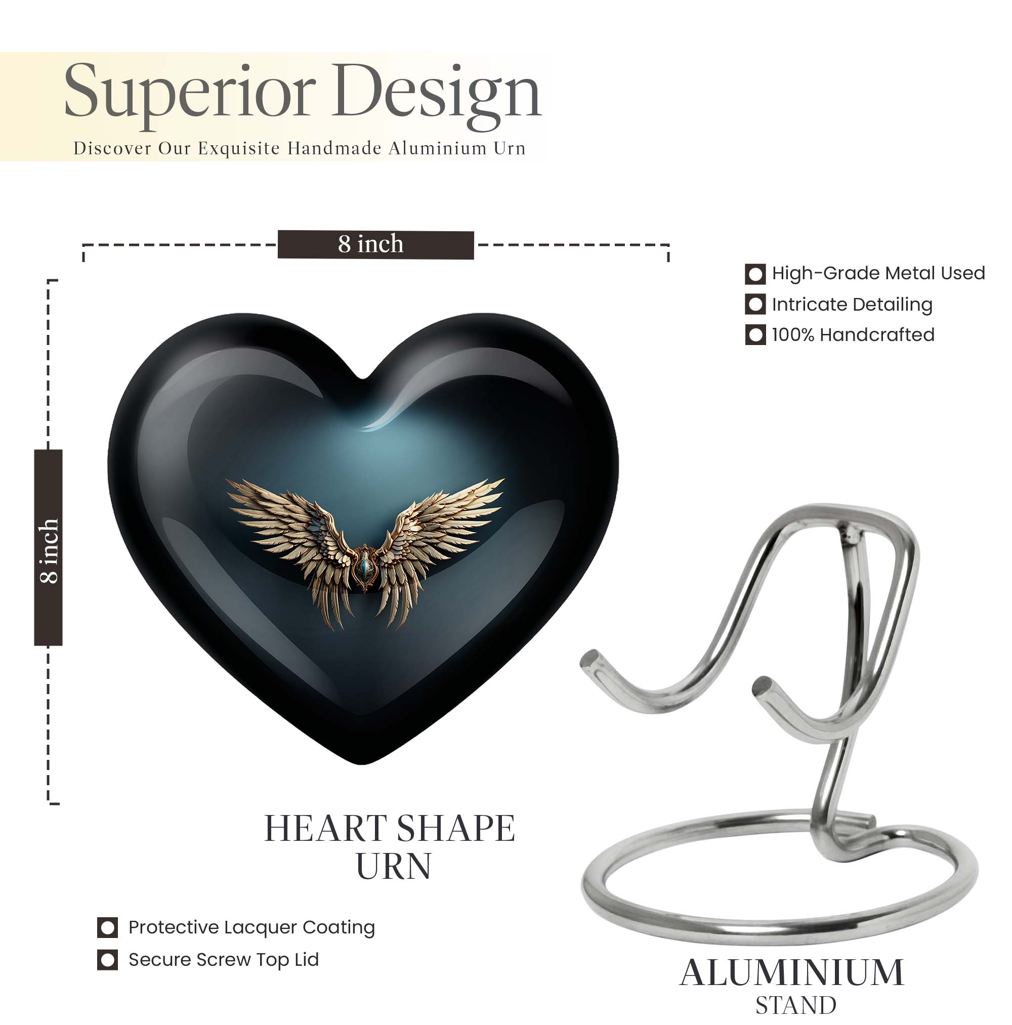 Unveiling our Wings Blue Urn, a large burial container designed for adults requiring peace and tranquility during memorial ceremonies. At a sturdy weight of 3.3 pounds, this aluminium-based urn embodies durability and elegance. Its butterfly theme imparts a sense of life's beauty and transformation, answering to both the delicacy of loss and the spirit of remembrance. The Heart Urn measures 10 inches in height, providing a capacity of up to 200 cubic inches for ashes. This suitable size makes the container a fitting tribute and a subtle reminder of loved ones. Each urn comes complete with a velvet pouch, adding an additional layer of respect and care for the treasured remains within. Moreover, we understand the importance of individuality in remembrance; therefore, we offer personalized engraving for names. Keywords that could guide you in finding this product could include 'memorial adult urns,' 'adult burial,' 'cremation urns for dad' and, of course, 'wings blue urn.' Experience a distinctive way of commemorating loved ones with our Memorial Adult Urns.