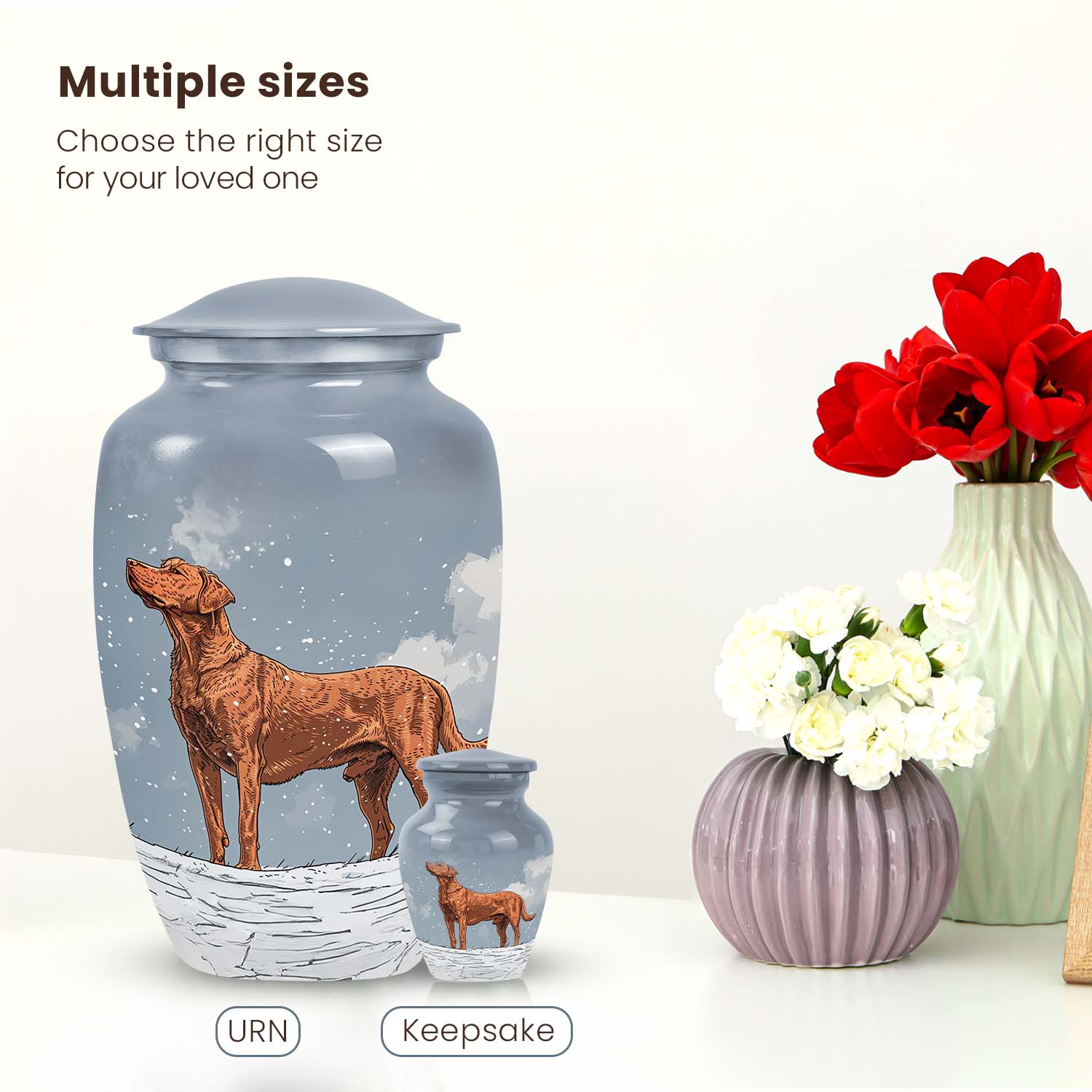 Each urn serves as a symbol of love and remembrance — a comforting reminder that your pet’s spirit still walks beside you, just beyond the Rainbow Bridge. Whether for a black lab urn, chihuahua urn, or another beloved friend, this keepsake provides both peace and beauty.