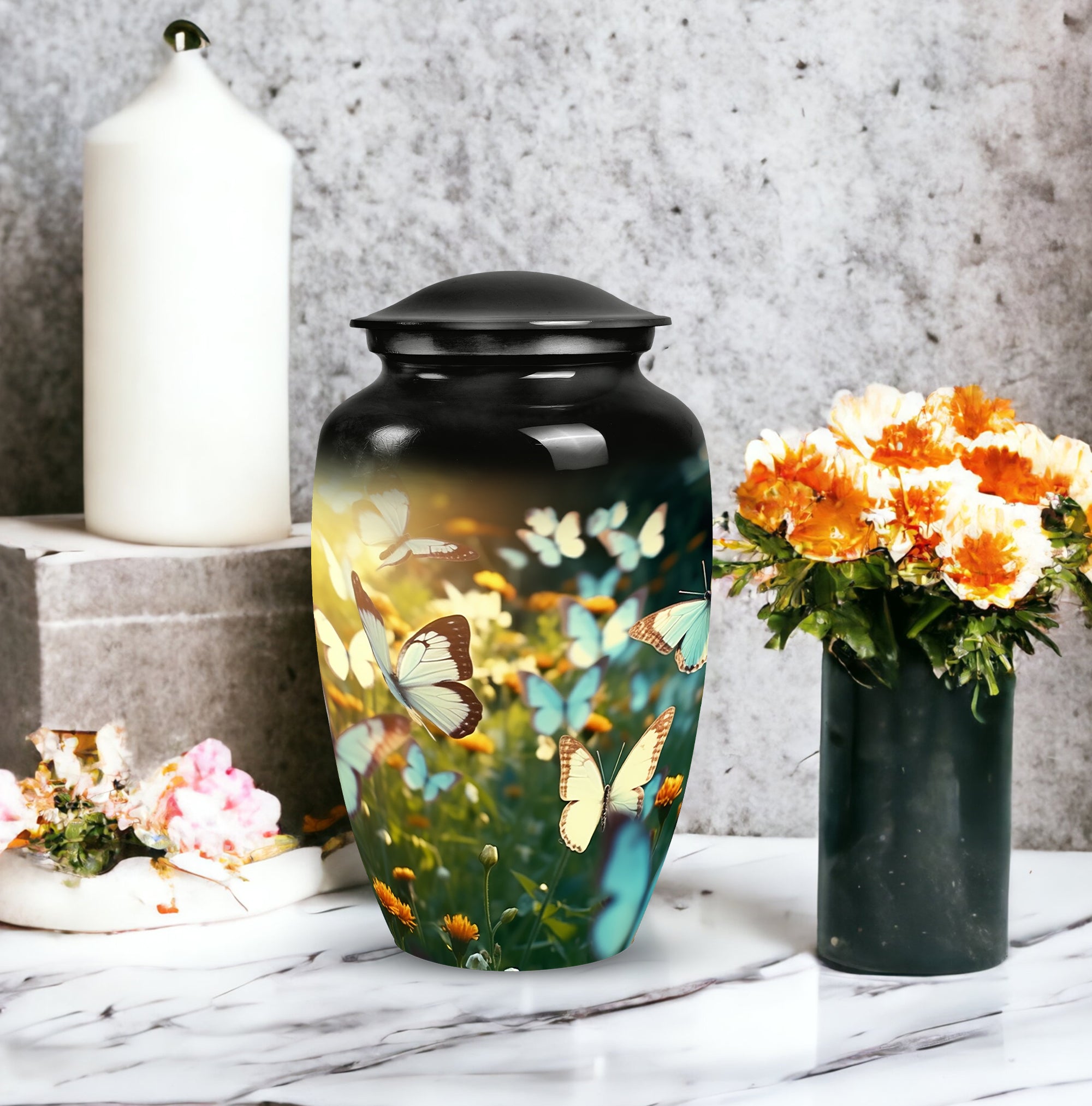 Perfect as a blue butterfly urn, it embodies serenity while providing a secure, lasting resting place for your loved one.