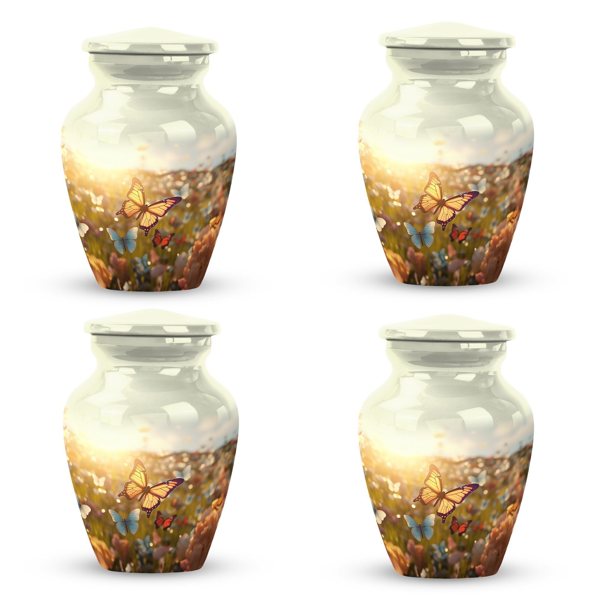 Preserve your cherished memories with our Butterflies Memorial Urn, a quintessential symbol of rebirth and new beginning. Crafted from robust aluminum, it is sturdy and designed to stand the test of time. The urn is 10 inches in height, weighs 3.3 pounds, and has a large capacity of 200 cubic inches, aptly sized for adult human remains. It comes with a divine velvet pouch that offers an elegant and respectful means to contain the ashes. This 3-inch cremation urn provides the opportunity to personalize with engraved names, permitting a unique and meaningful memorial. With our product, honor your loved one with dignity and grace, making it the quintessential urn for ashes. Its universal design is suitable for any memorial ceremony and seamlessly aligns with different decors. Moreover, our urn is suitable as an urn for ashes of dad and other loved ones. A beautiful and enduring choice for those seeking personalized urns, decorative urns for ashes, or urns for human remains.