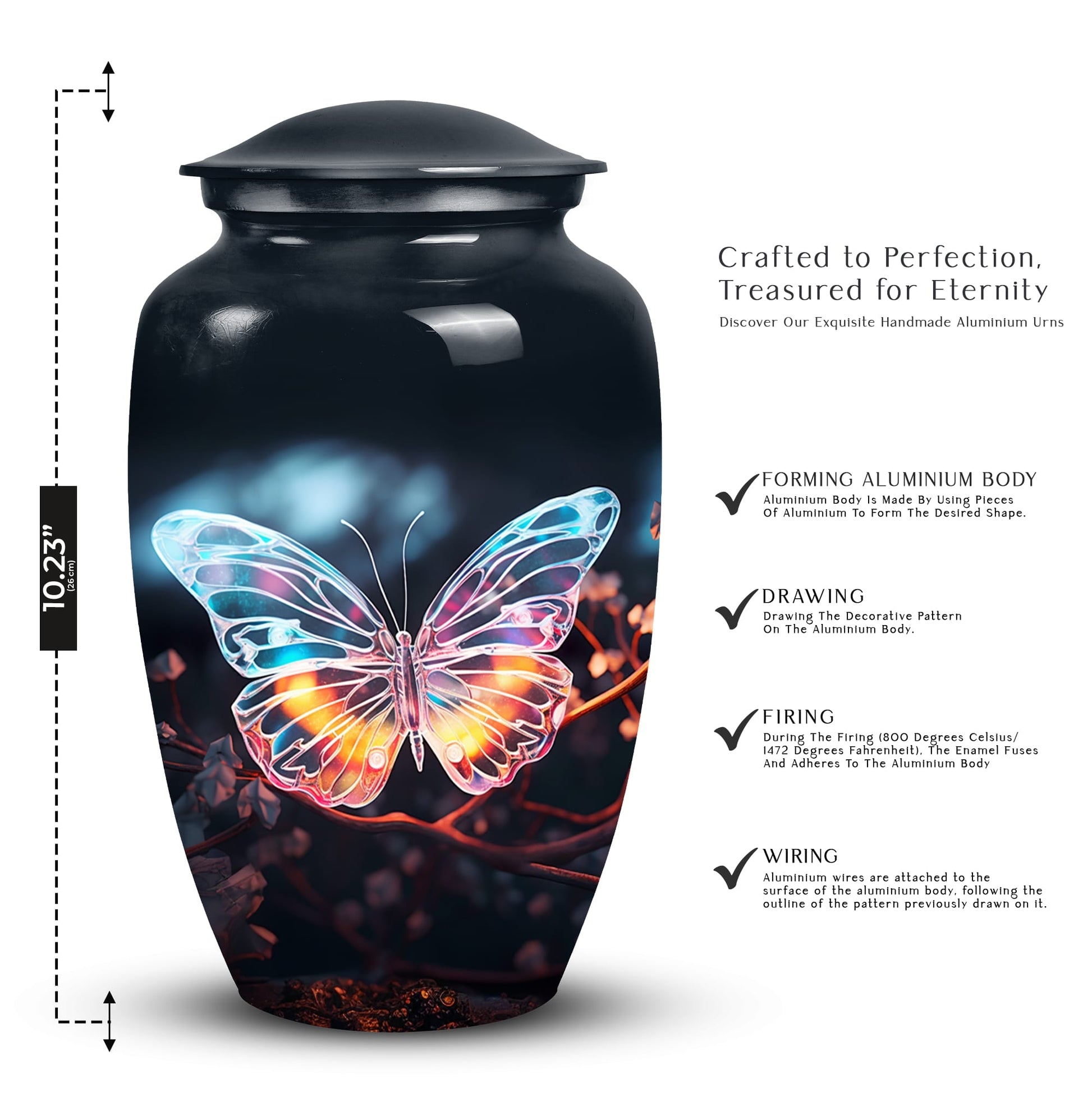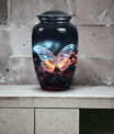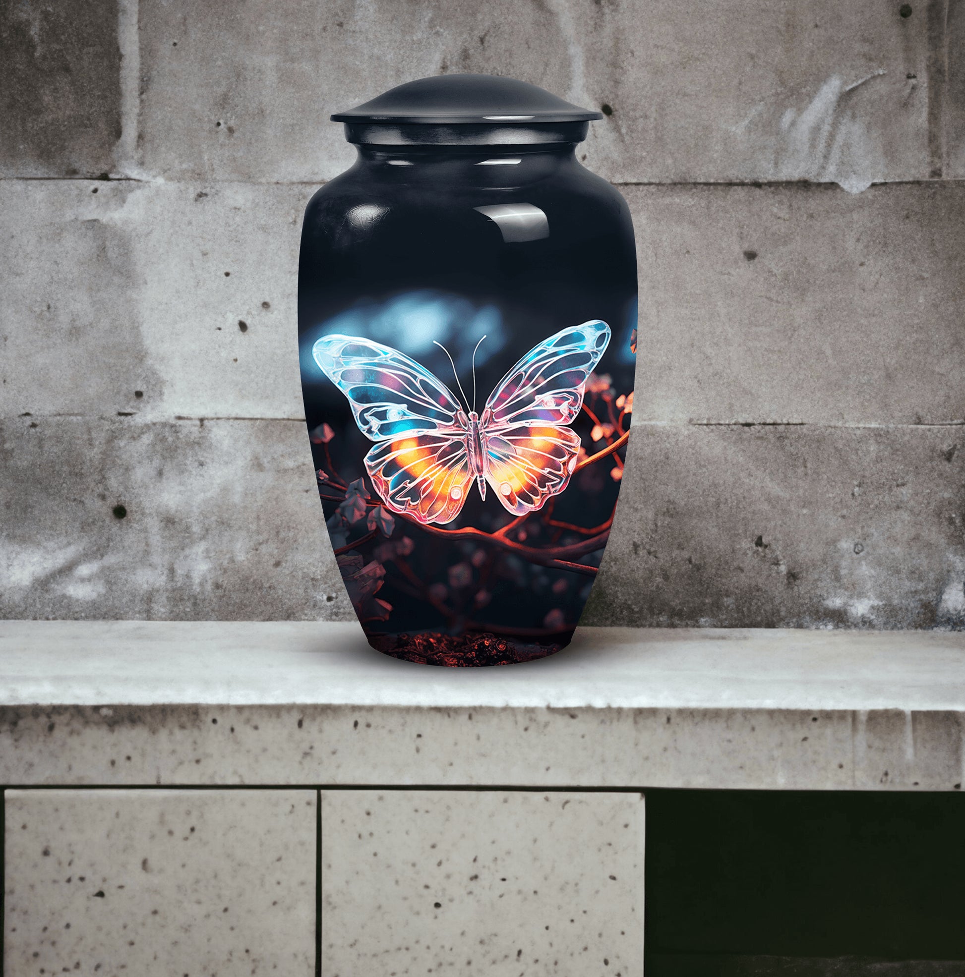The Mendota Butterfly Burial Urns are elegant and meaningful resting places for your cherished loved ones. These unique Urns are perfect for those seeking a distinctive and tangible way to commemorate the life of a dear one. Fashioned with a medium-sized design, they offer a refined space to securely hold the cremated remains. Designed for in-ground burials, they provide an intimate connection with the earth. The stunning depiction of a butterfly signifies a beautiful journey through life and into the afterlife. Portable and secure, these Urns present an opportunity to hold a little part of someone dear in a peculiar and significant way. Highly searched and popular in the realm of memorial ceremony supplies, these Butterfly Burial Urns stand for respect, hope, and adoration. The utmost care is taken in crafting each Urn, making it special and exclusive. Choose the Mendota Butterfly Burial Urns for an exquisite blend of grace, security, and symbolism.