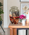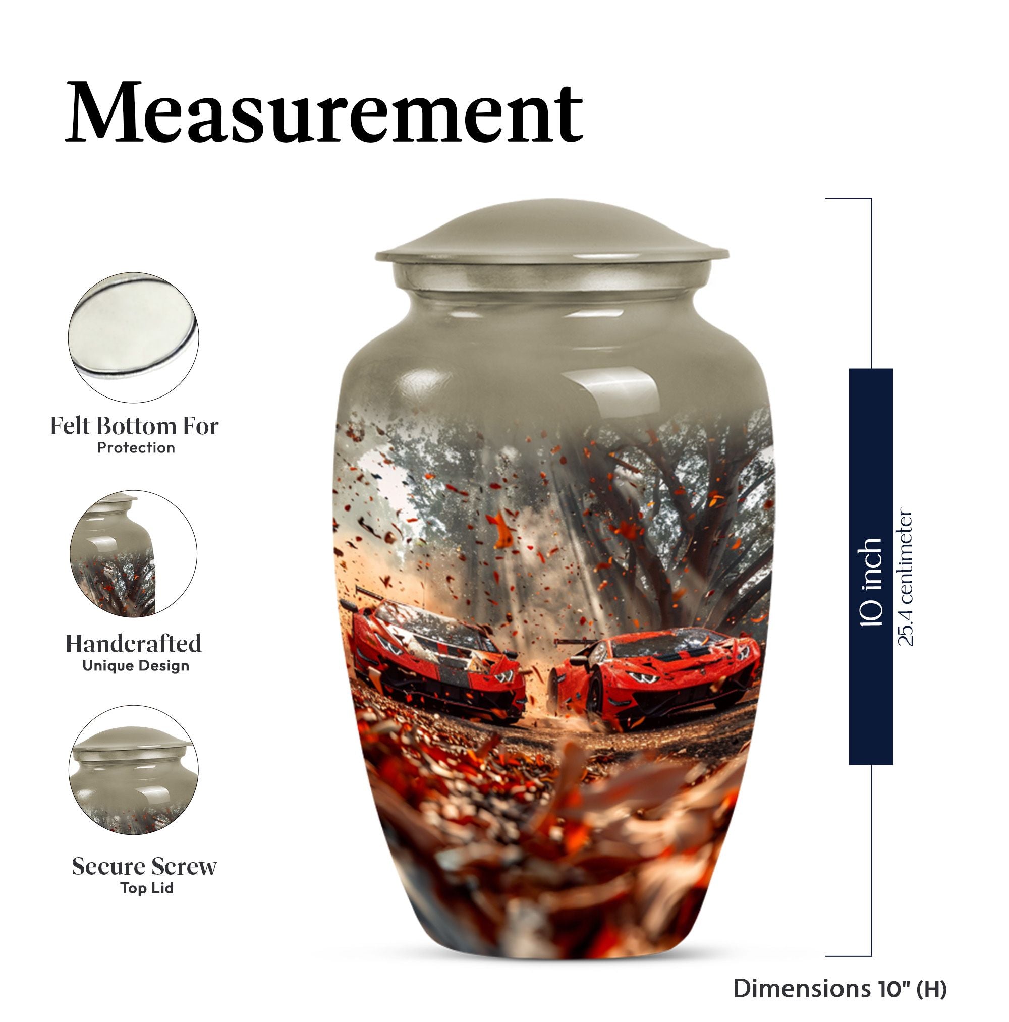 Cherish the memory of your departed loved ones with our 10-inch aluminium classic urn, a desirable choice for funeral urns for burial. Adorned with a tasteful butterfly theme, this cremation urn showcases a perfect blend of durability and aesthetic appeal. Weighing 3.3 pounds with dimensions of 10 inches in height, this large urn has the spacious capacity to hold 200 cubic inches of cremation ashes. The purchase includes a graceful velvet pouch for secure containment of ashes. Personalized customization is available, offering you the choice to engrave names on the urn, enhancing its sentimental worth. Targeted keywords for this product are car Urn, cremation urn, Cremation urn for dad, urn human adult urns, and burial urns for cremation ashes. Note: Design not included in product features. Opt for our urn to honor your dear ones and keep their essence alive.