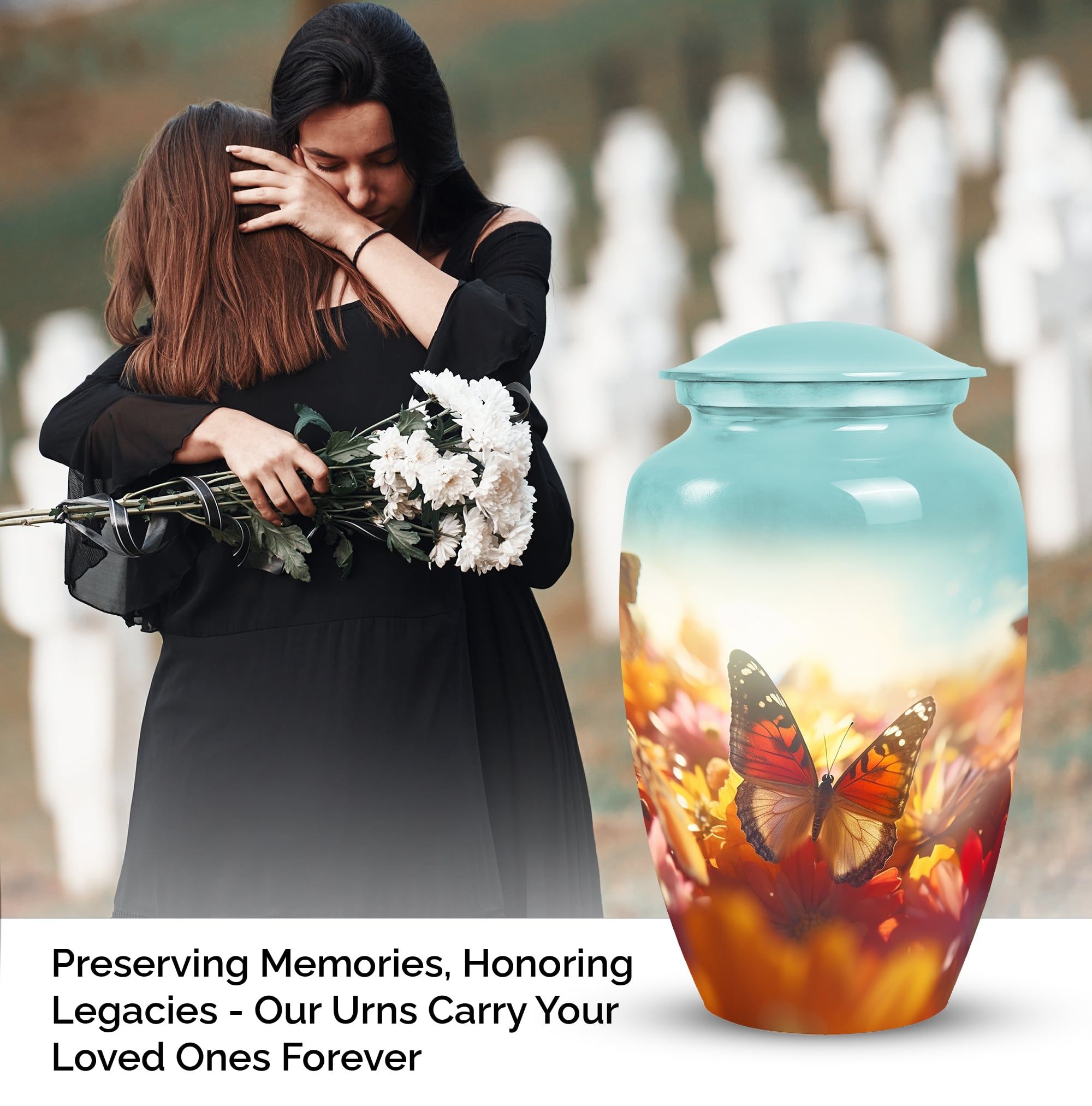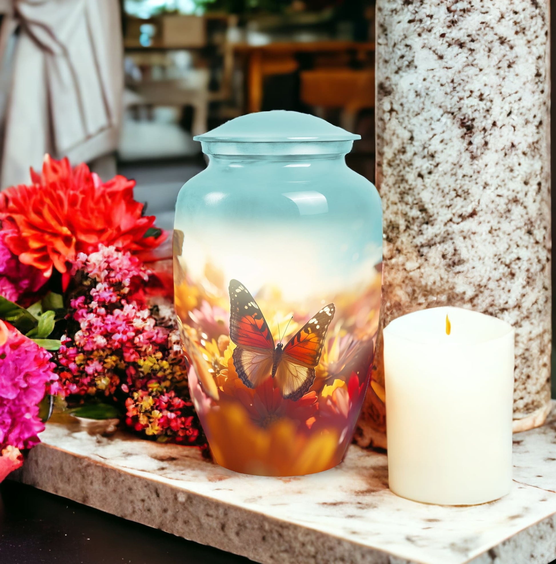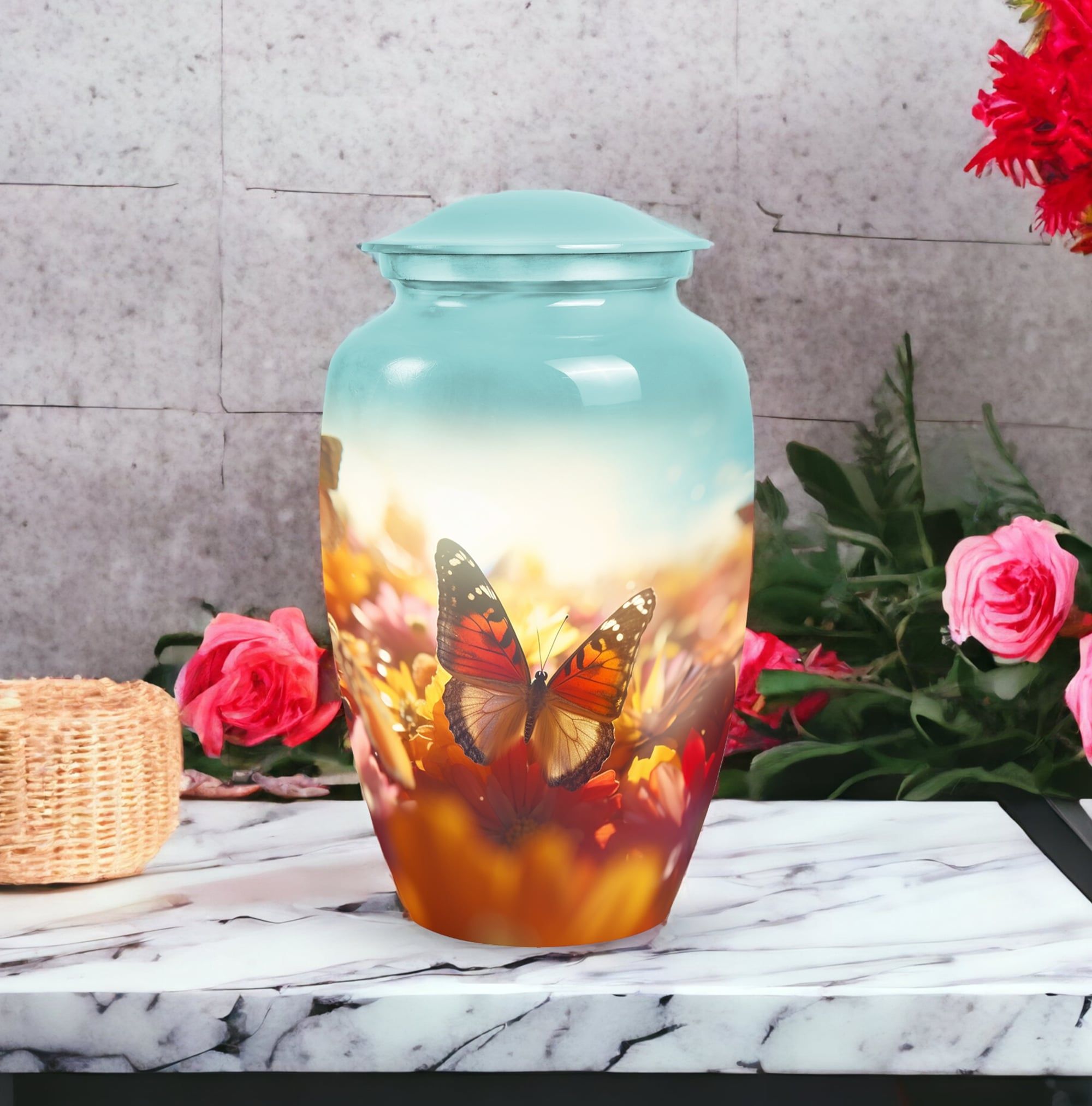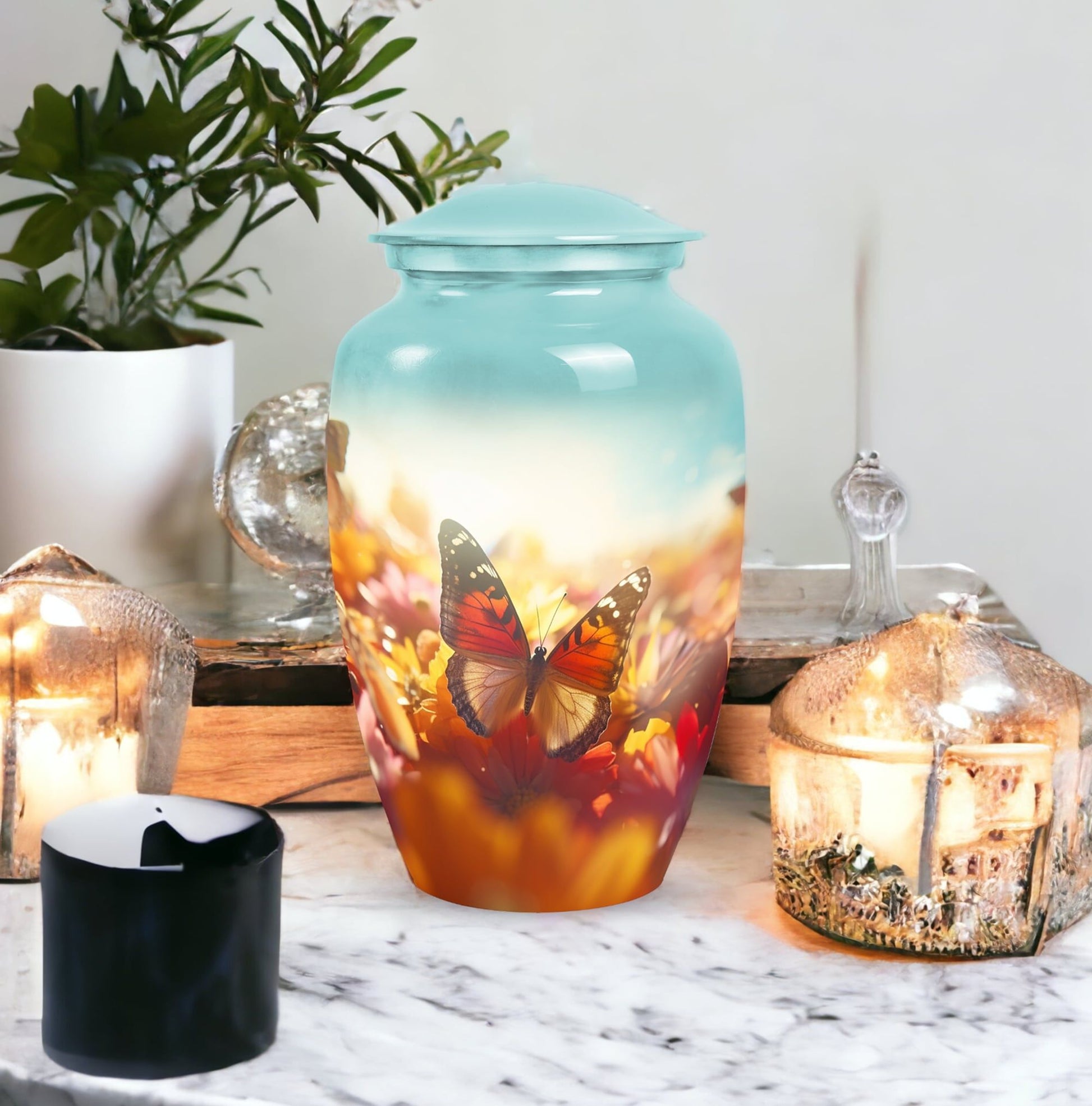 The Vibrant Butterfly Urns for Adult Male Ashes – Gloomy Peaceful Memorial Urn represents serenity, transformation, and eternal love. Its subtle yet vibrant butterfly motif creates a comforting symbol of remembrance, offering families a beautiful way to honor their loved one.