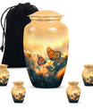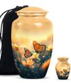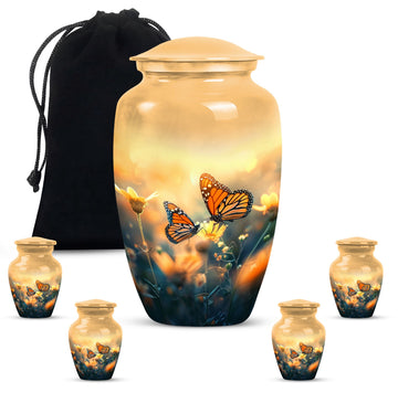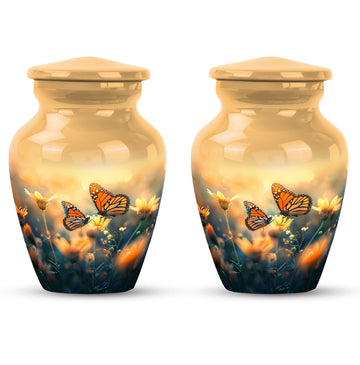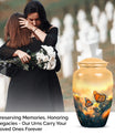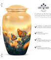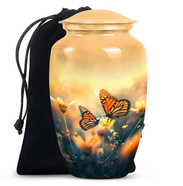 The Orange Monarch Butterfly Memorial Urn is a radiant tribute, blending vibrant orange and yellow hues with the timeless symbolism of butterflies. Crafted with care, this urn embodies renewal, peace, and remembrance, making it a cherished choice for families seeking a meaningful monarch butterfly urn or elegant butterfly urn.