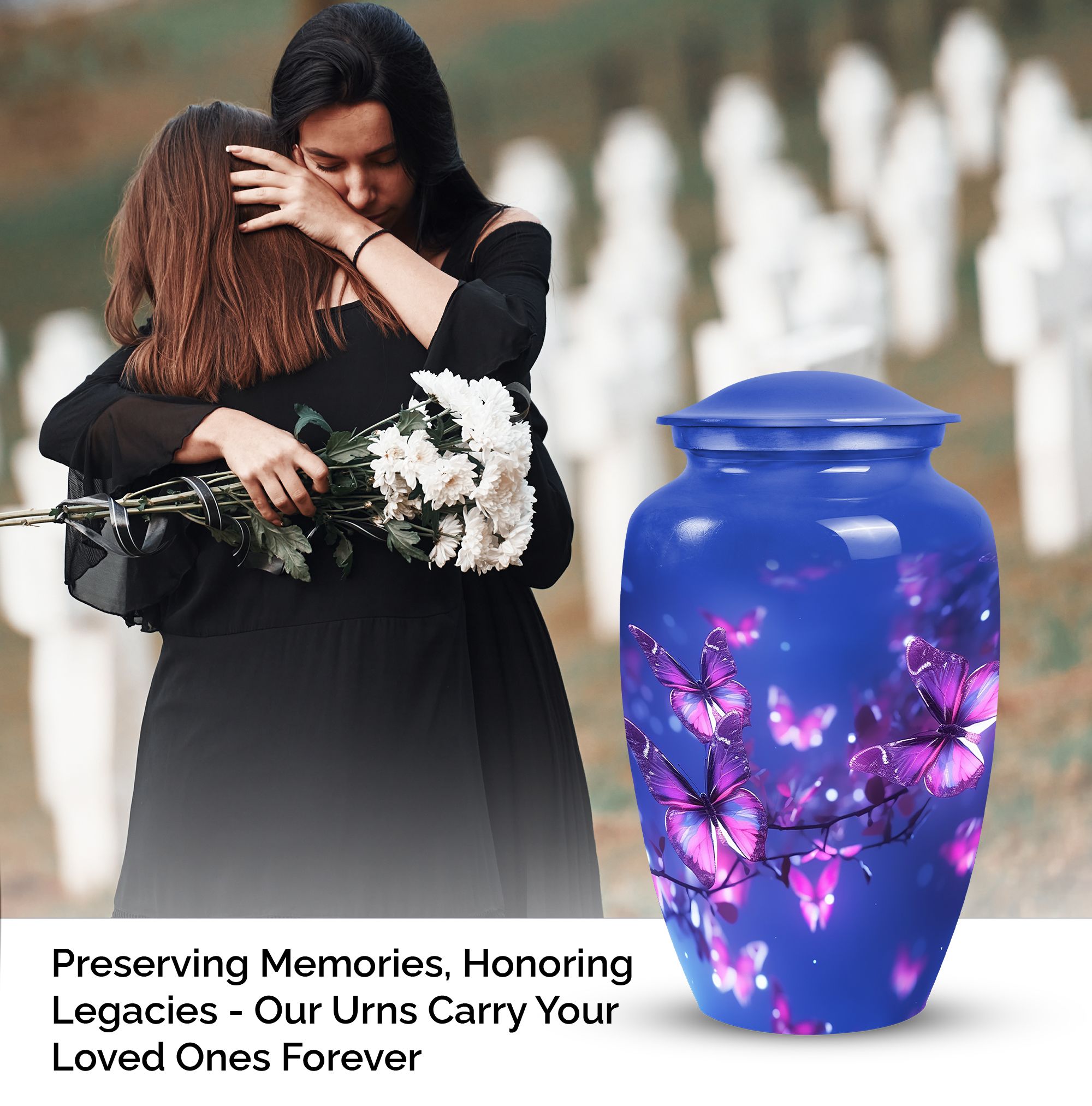 Introducing our eloquently designed Purple Urns for Human Ashes, a reverential choice ideal for celebrating an adult female's life. Impeccably crafted, these urns bring tranquility and serenity in remembrance of loved ones. The exquisite design is adorned with a delicate butterfly, captivating the essence of freedom and transformation, making it an ideal urn for those moms who loved nature and flair. Committed to preserving your precious memories, these cremation urns are a profound way to celebrate a life lived and loved. The urn's unique purple color symbolizes nobility, luxury and ambition, reflecting the bold personality of your loved one. For all those in search of cremation urns for burial, these urns rise beyond just necessity; they encapsulate the spirit of the departed soul, showcasing their colorful journey on earth. Remarkably available now, these urns could be a dignified choice for safeguarding the ashes of your beloved adult woman.