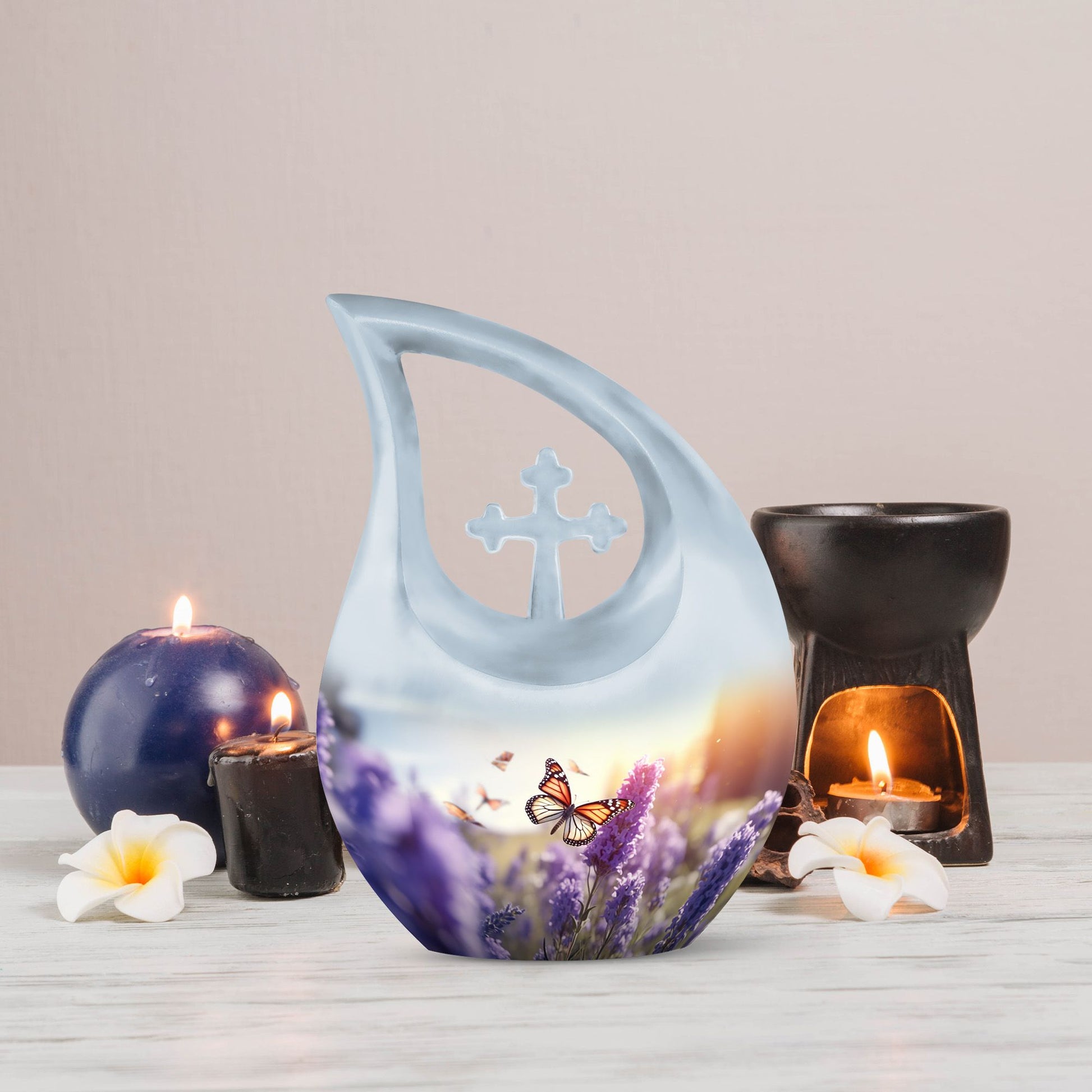 The Flying Butterfly Urn for Cremation Ashes – Purple Floral Memorial Urns for Women offers a soft, uplifting tribute filled with grace and serenity. The butterfly symbolizes renewal and everlasting love, making this a deeply meaningful choice for families seeking small urns for human ashes keepsake or a feminine memorial that brings comfort and peace.